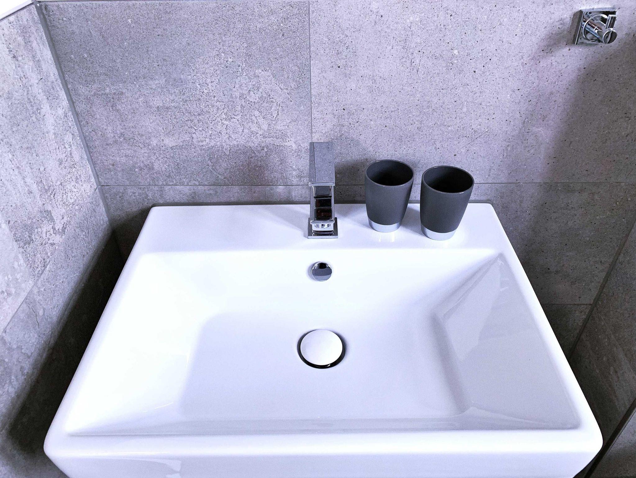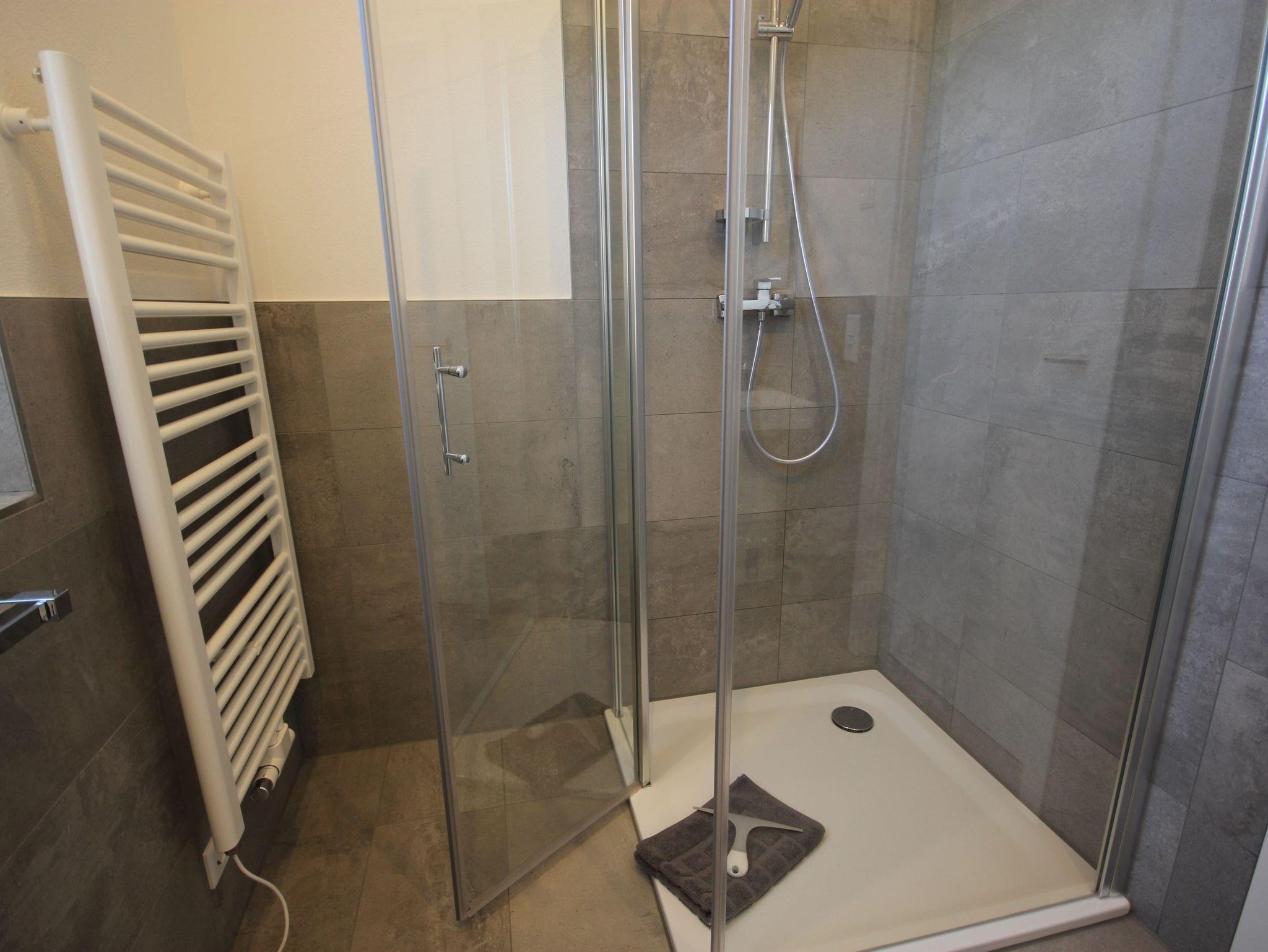 Das Bad, mit der ebenerdiger Dusche sowie Haarföhn, runden die Einrichtung ab.