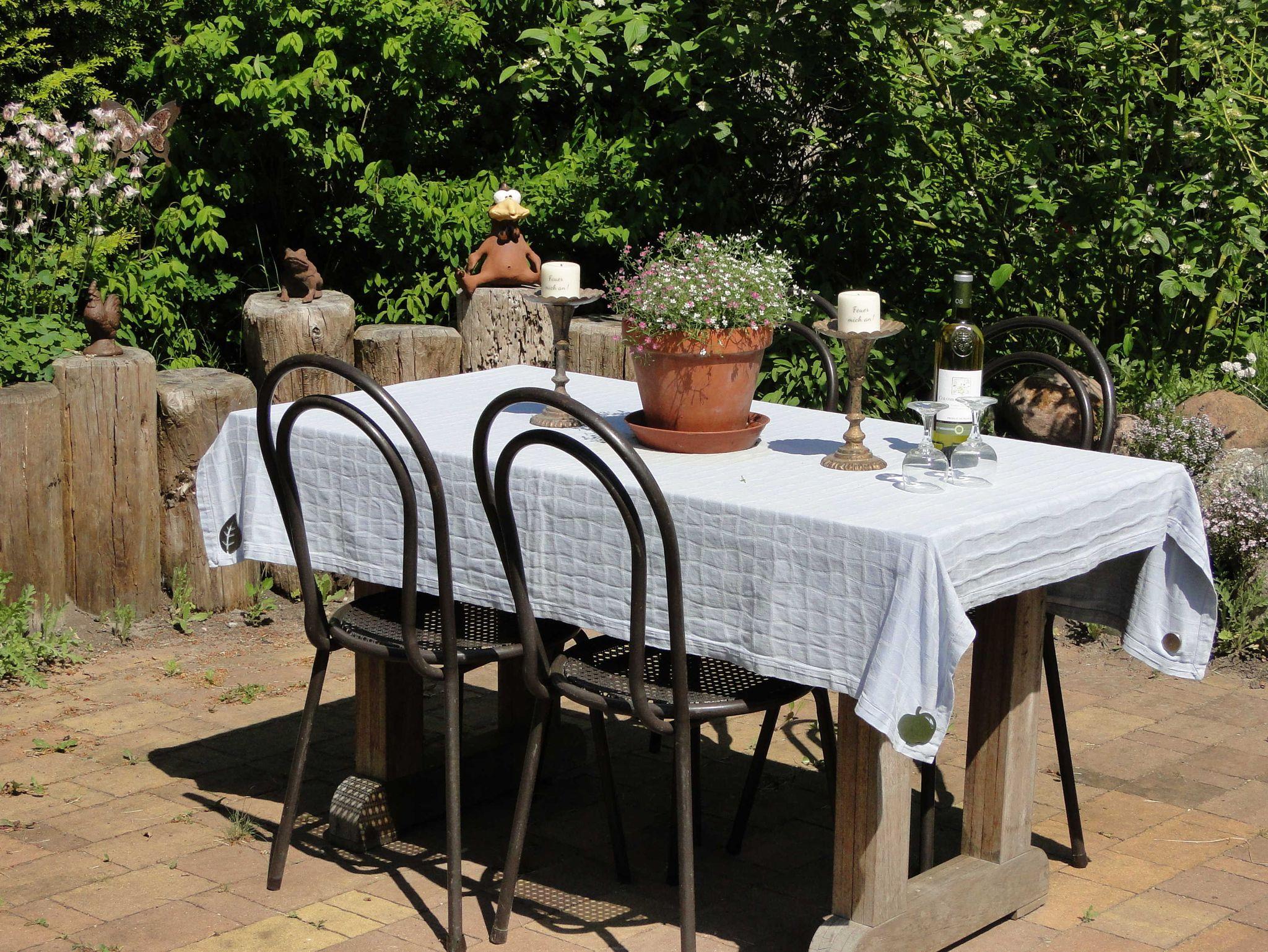 individuell und mit Liebe zum Detail eingerichtete Ferienwohnung im Erdgeschoss und separatem Eingang. Der gemütlich eingerichtete Wohnbereich mit Zugang zur Süderseitgen Terrasse, lädt zum erholen und entspannen ein. Gern können Sie auch im Garten (ca. 200 qm) sich einen gemütlichen und versteckten Platz suchen. Der offene Wohnbereich ist ausgestattet mit einer Couch und einem Kaminofen ( ein Starterpaket steht bereit), daran schließt sich die offene komplett ausgestattete Küchenzeile mit ausreichend Geschirr und umfangreicher Ausstattung an.Das Schlafzimmer ist ausgestattet mit Doppelbett (1,40 x 2,00 m) und das Kinderzimmer mit 1 Einzelbett (0,90 x 1,90 m). Im Bad befindet sich eine Dusche/WC.Die Wohnung wir mit Bettwäsche und Handtücher übergeben. Der Parkplatz befindet sich auf dem Grundstück.Alle Wohnungen sind Nichtraucherwohnungen. Haustiere sind nicht erlaubt.
