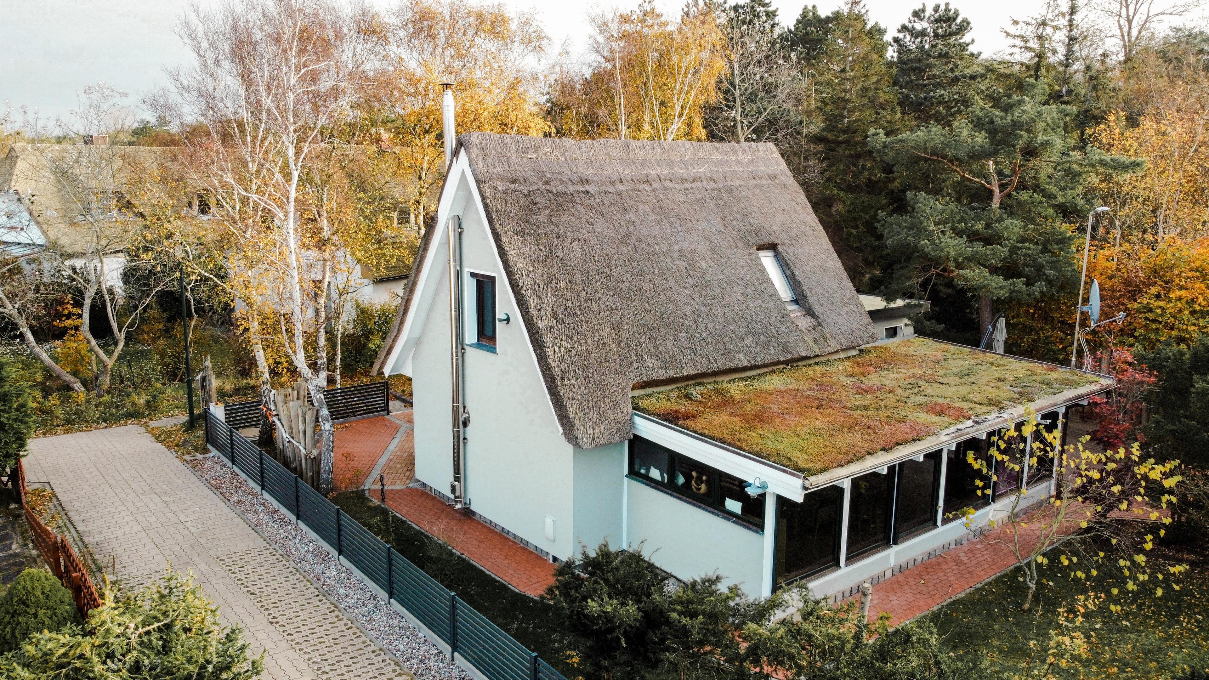 Das Haus mit etwa 130qm Wohnfläche steht auf einem 750qm großen Grundstück. Der kleine Garten ist zum Süden ausgerichtet und mit heimischen Anpflanzungen romantisch eingefriedet. Auch auf der großen Bambusholz-Terrasse genießt man viel Ruhe vom Alltagsgeschehen.