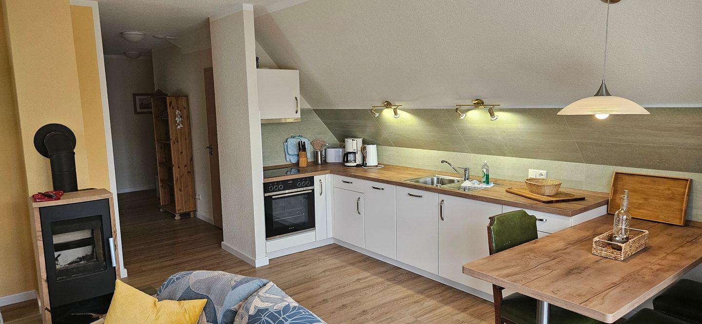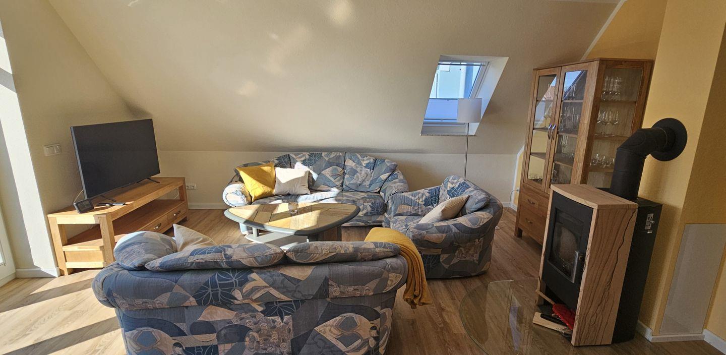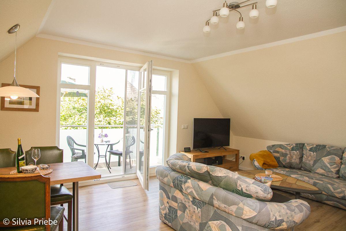 Moderne Ferienwohnung Haus Thea App.03 in Wustrow, 500m zum Strand, mit Balkon, Kamin und Fußbodenheizung für entspannte Urlaubstage.