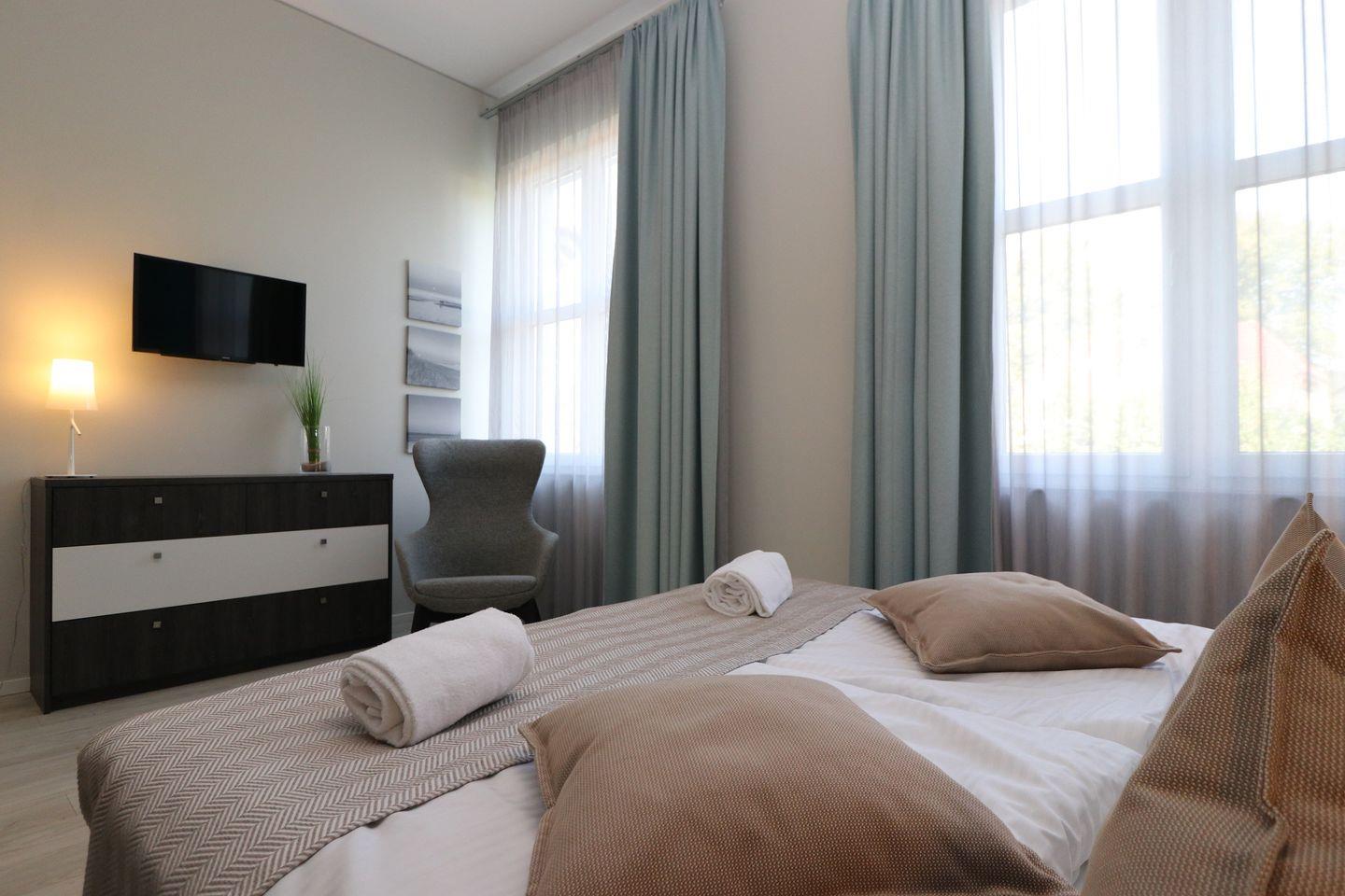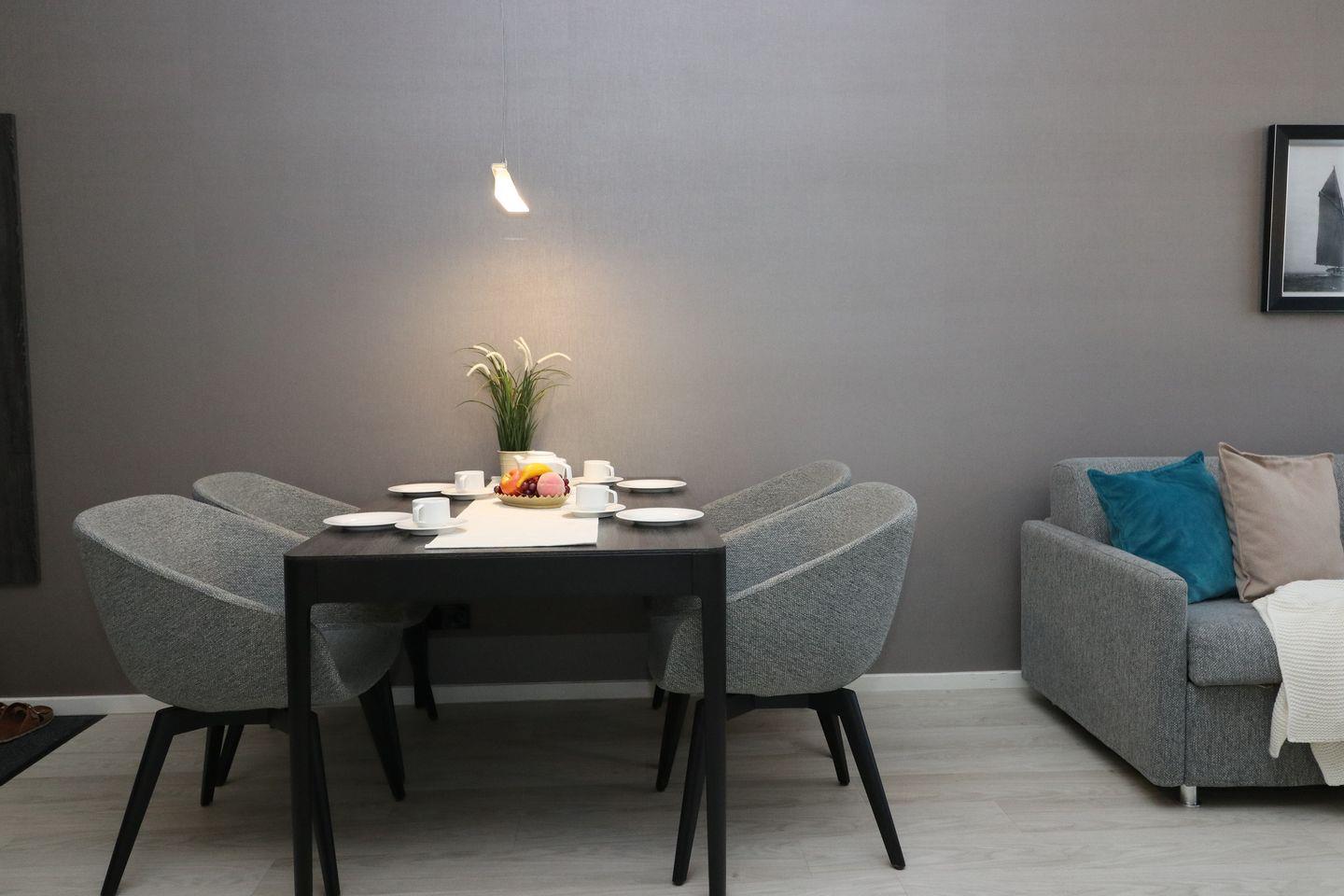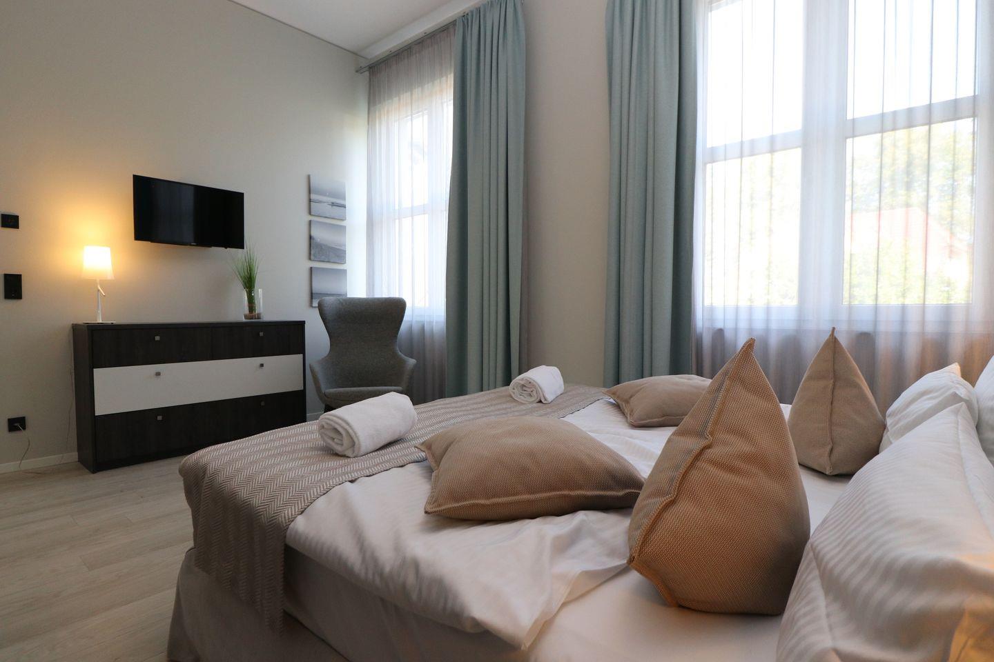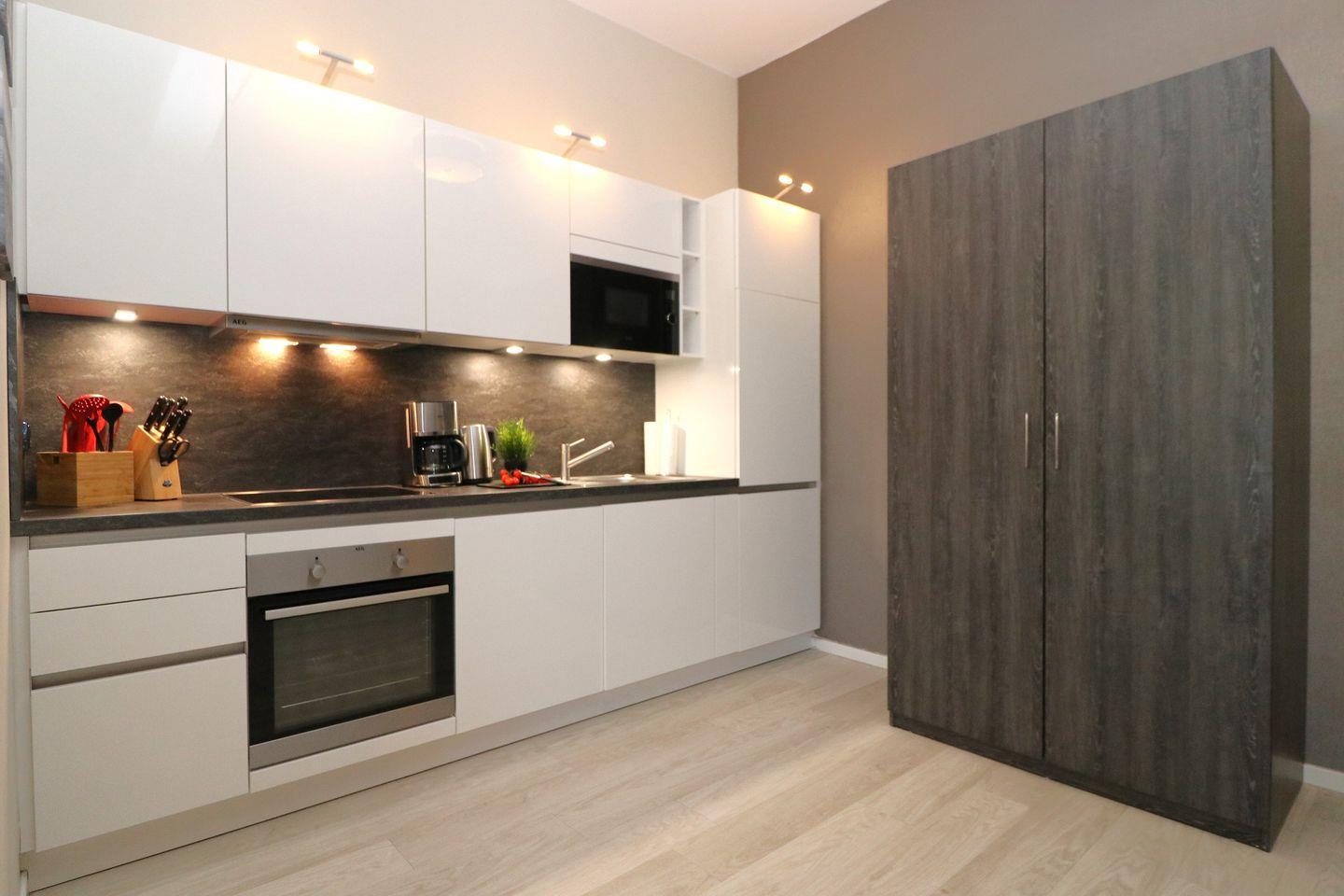 Dort begrüßt Sie als erstes die offene NOLTE-Einbauküche mit Einbau-Elektrogeräte, wie einen Induktionsherd, einen Backofen, einen Geschirrspüler, einen Kühlschrank mit Gefrierkombination und eine Mikrowelle. Mit zahlreichem Koch-Zubehör ist die Küche perfekt zum zaubern kulinarischer Genüsse ausgestattet. Der Wohnbereich ist mit einem Couchtisch, zwei bequemen Sesseln und einem gemütlichen Sofa ausgestattet, welches bei Bedarf auch zur Aufbettung für 2 Personen dient. Zur medialen Unterhaltung finden Sie hier einen Flachbild-TV und kostenfreies WLAN. Gern können zwei weitere Gäste auf der Schlafcouch ( 180 cm x 200 cm) übernachten. Das helle Schlafzimmer erwartet Sie mit einem bequemen Boxspringbett. Auch hier befindet sich ein Flachbild- TV (32 Zoll), sowie Verdunklungsgardinen und ein Insektenschutz für eine angenehme Nachtruhe. Das Ensuite-Badezimmer überzeugt durch eine ebenerdige Dusche. Ein Kosmetikspiegel sowie ein Föhn müssen Sie in der Ausstattung des Bads ebenfalls nicht vermissen.