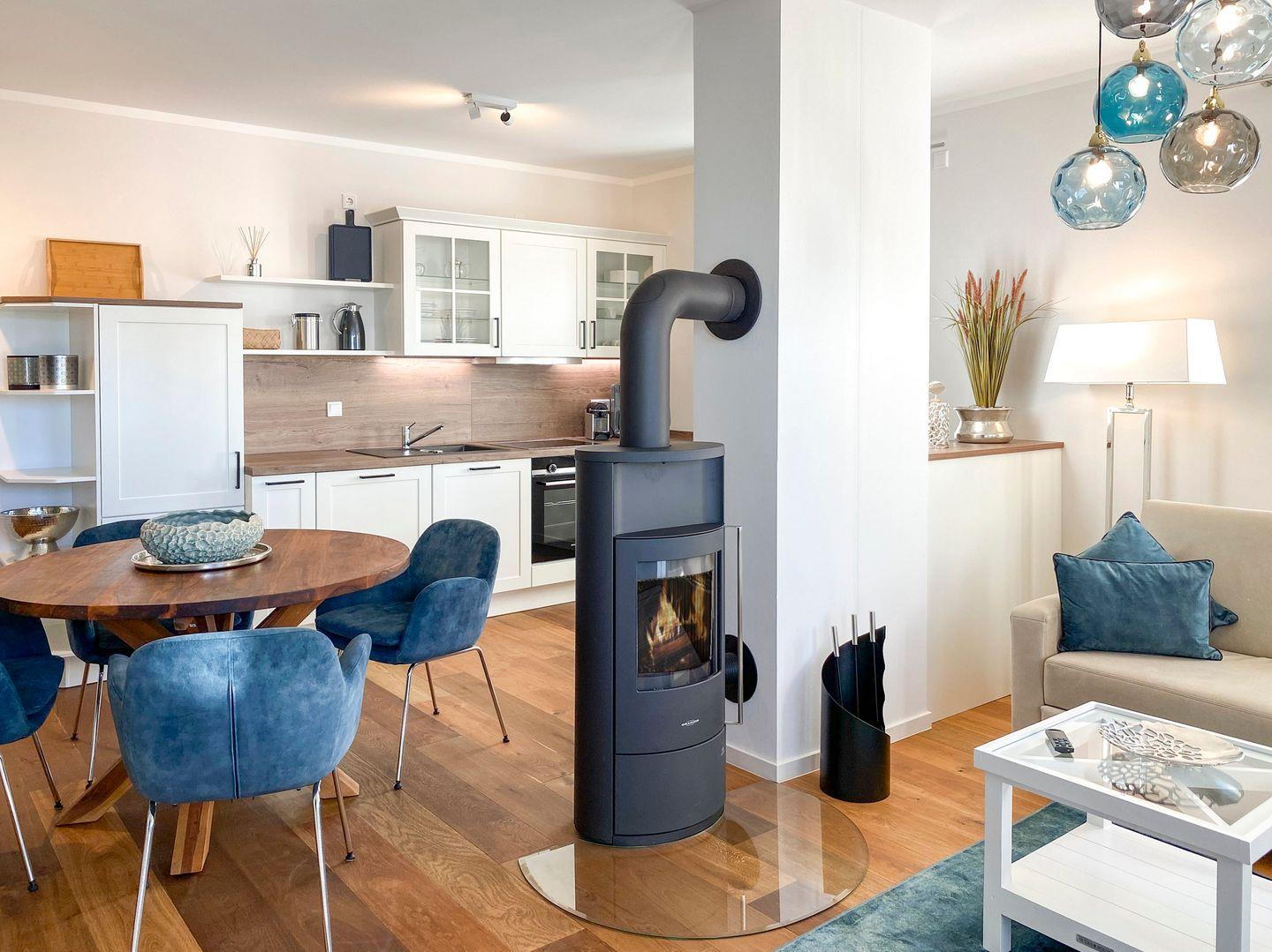 Modernes, strandnahes Appartement in Wustrow mit Balkon, Kaminofen und Fußbodenheizung für entspannte Ostseeferien.