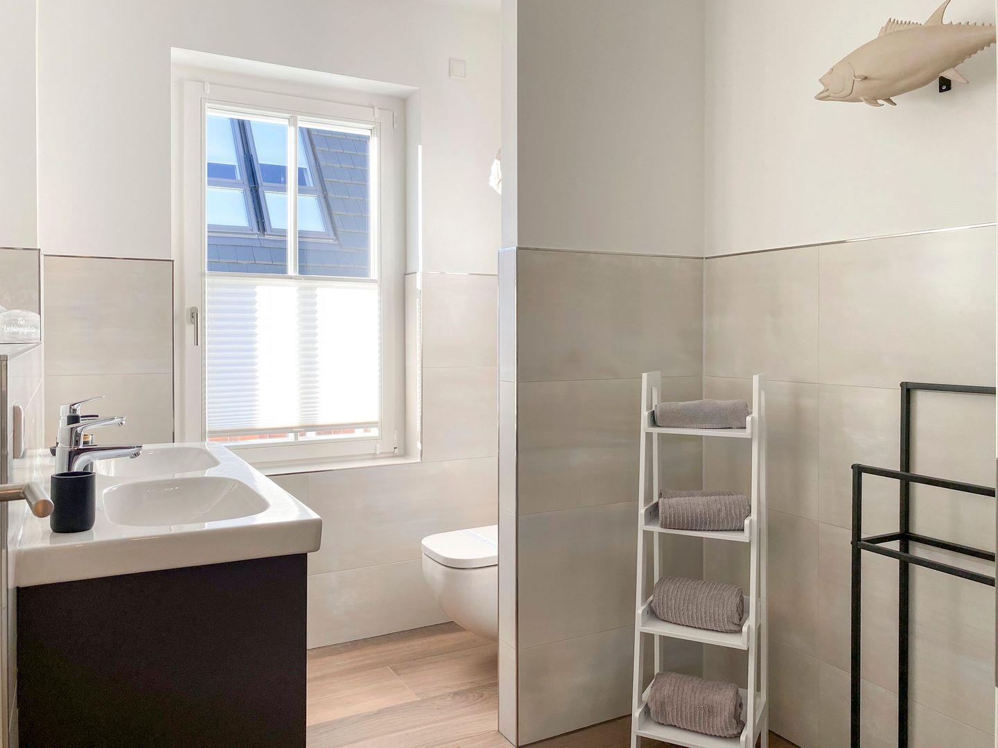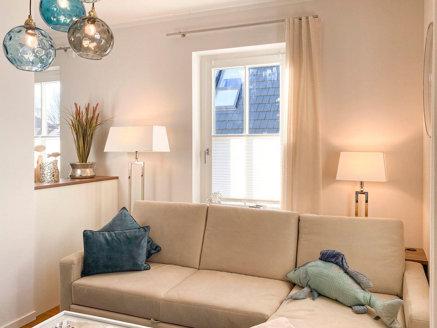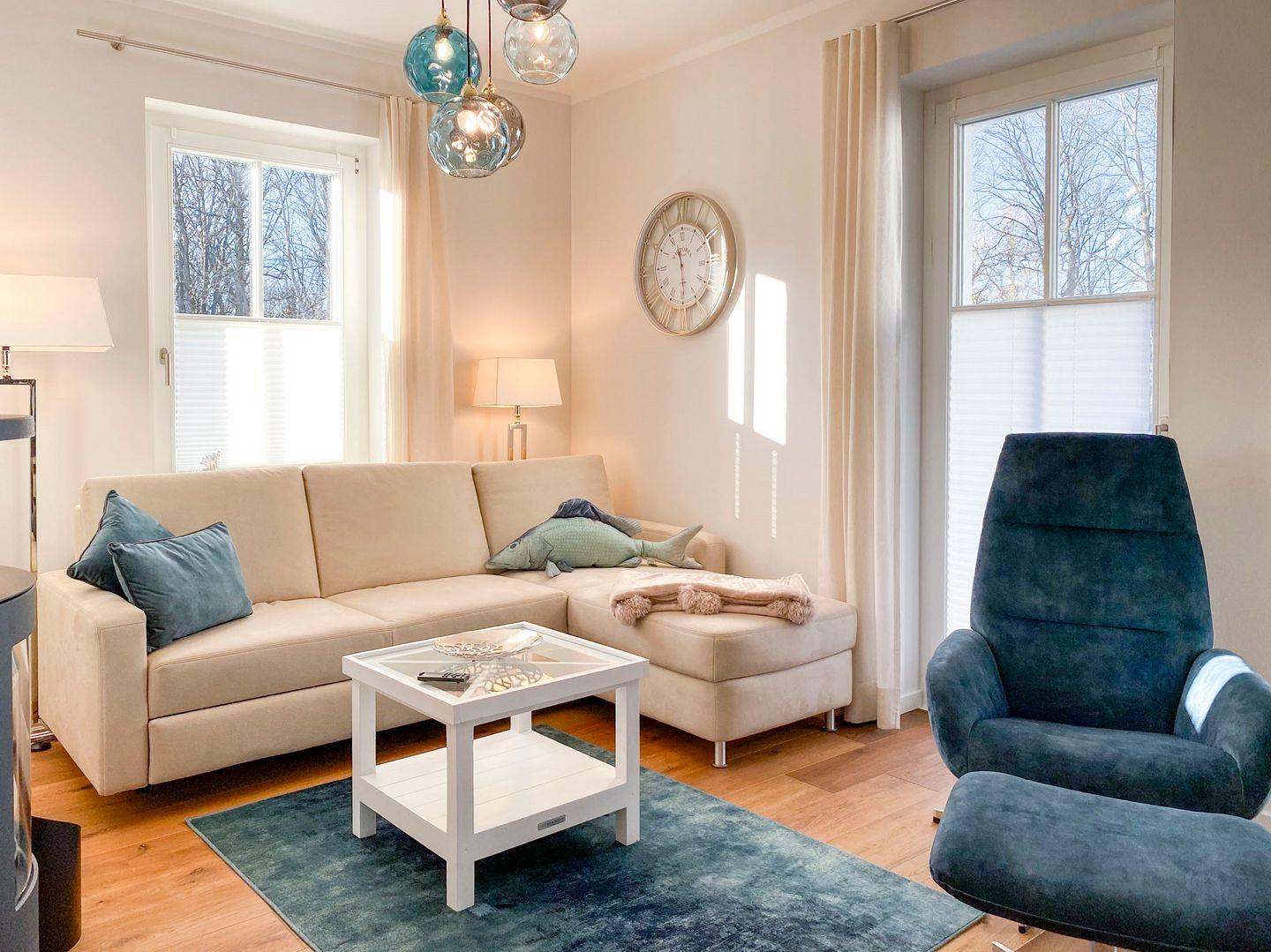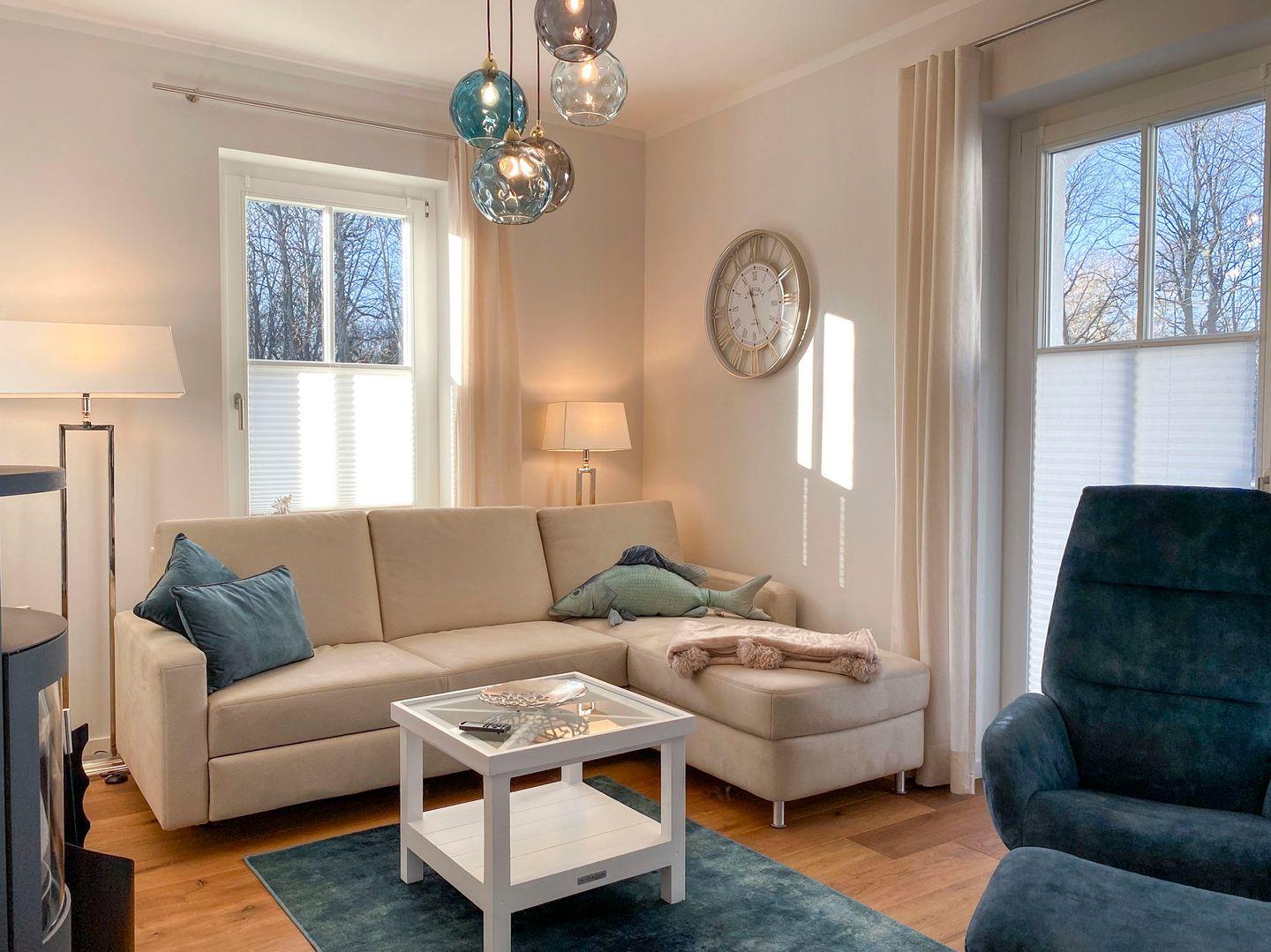 Das Appartement zeichnet sich durch seine moderne Ausstattung und eine helle, freundliche Atmosphäre aus. Im Schlafzimmer erwartet Sie eine angenehme Nachtruhe, sowie ein balkon nach Osten, während das Wohnzimmer über ein Balkon Richtung Westen verfügt. Dieses lädt mit einer Sofaecke, Sessel und einem modernen TV zum Entspannen ein. Der offene Wohnbereich geht fließend in eine hochwertige, offene Küche über, die keine Wünsche offenlässt. Ein separater Essbereich mit Esstisch und bequemen Sitzgelegenheiten bietet einen angenehmen Platz für gemeinsame Mahlzeiten. Dank der unmittelbaren Nähe zum feinsandigen Strand – nur etwa 100 Meter entfernt – bietet das Appartement beste Voraussetzungen für einen erholsamen Badeurlaub an der Ostsee.