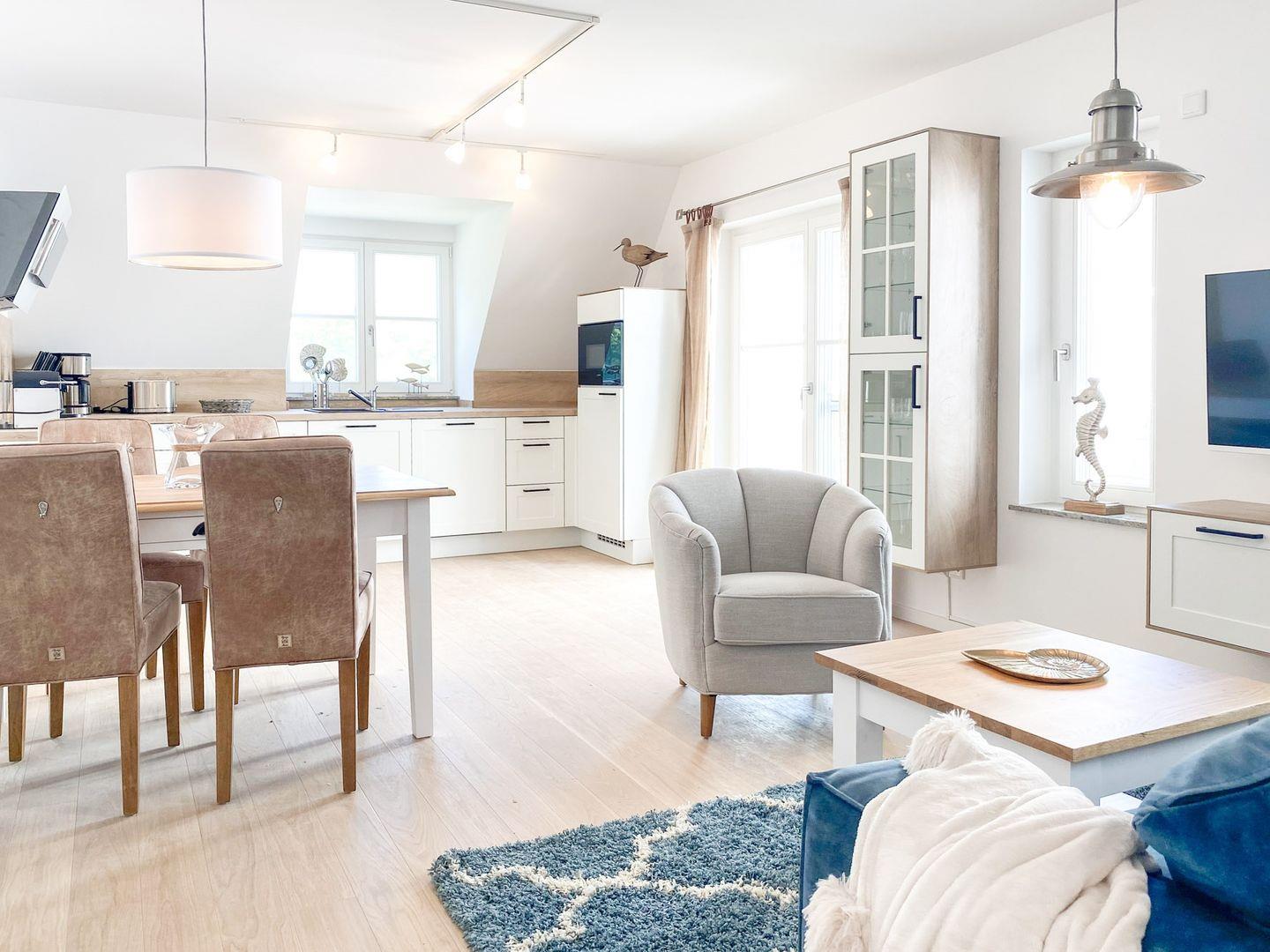 Ihr perfektes Urlaubszuhause! Diese exquisite Ferienwohnung im 1. Obergeschoss verzaubert mit 72 Quadratmetern an geräumigem Wohntraum und bietet bis zu 4 Personen ein gemütliches Refugium. Stellen Sie sich vor, wie Sie im liebevoll eingerichteten Wohnbereich entspannen, eingehüllt in das sanfte Licht, das durch die Fenster strömt. Hier lädt ein weiches Sofa zum Verweilen ein, während ein moderner Flachbild-TV für beste Unterhaltung sorgt. Im separaten Essbereich genießen Sie kulinarische Köstlichkeiten, zubereitet in der voll ausgestatteten Küche – ein Paradies für Hobbyköche mit allem, was das Herz begehrt: von Kochfeld bis zur Nespresso-Kaffeemaschine. Das Badezimmer ist ein Traum aus Entspannung – eine Wohlfühloase mit Badewanne und ebenerdiger Dusche, unterstrichen durch Fußbodenheizung und hochwertigen Annehmlichkeiten wie einem Haartrockner. Im Schlafzimmer wartet ein himmlischer Schlaf auf luxuriösen Boxspringbetten, umgeben von einer ästhetischen Atmosphäre und praktischem Stauraum. Die Wohnung bietet weit mehr als nur Komfort: Internet-WLAN für Ihre digitale Welt, ein Tiefgaragenparkplatz für Ihre Sicherheit und sogar ein Balkon mit Gartenmöbeln, um die frische Luft und die malerische Umgebung zu genießen. Und für Familien? Ein Kinderreisebett und Hochstuhl inklusive!