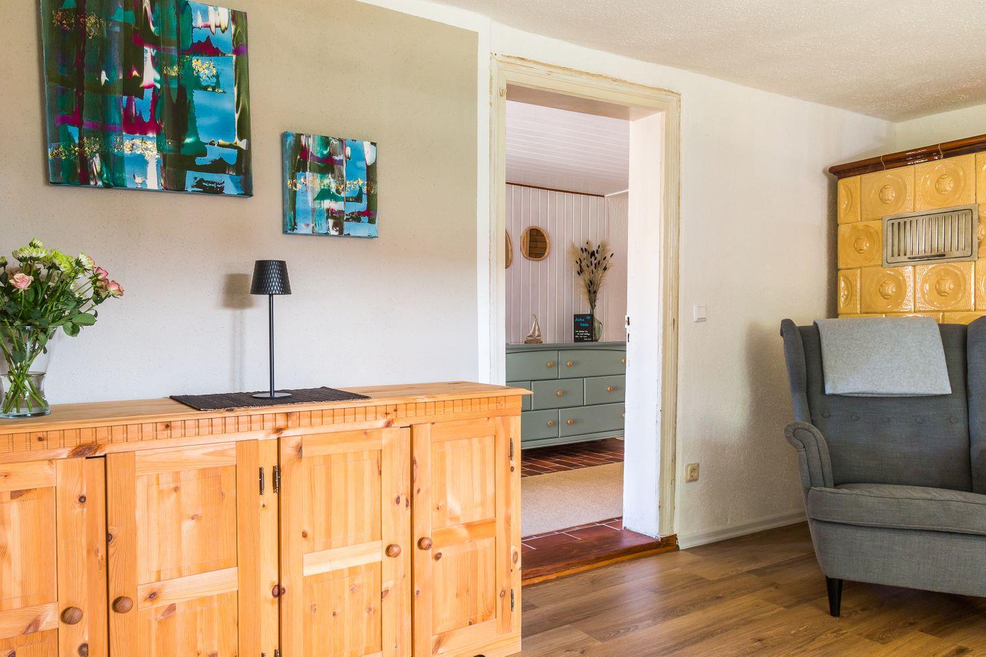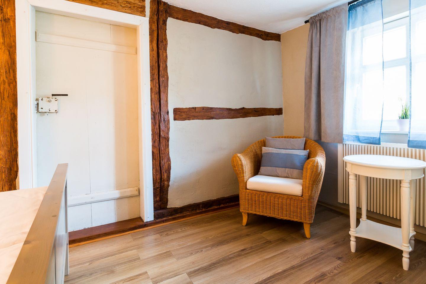 Die Wohnung hat einen separaten Eingang. Innen erwartet dich eine abgeschlossene, gut ausgestattete Küche, ein urgemütliches Wohnzimmer mit maritimen Details, ein einladendes Schlafzimmer und ein gepflegtes Bad. Alles ist liebevoll eingerichtet - mal ein Hauch Seemannskajüte, mal ein Tupfer Landhausidylle. Fischers Stübchen ist kein Ort für Perfektionisten, sondern für Menschen, die das Besondere lieben: echtes Fachwerk und schiefe Wände statt Gipskarton. Es ist diese Mischung aus Vergangenheit und maritimem Lebensgefühl, die deinen Urlaub hier so einzigartig macht.