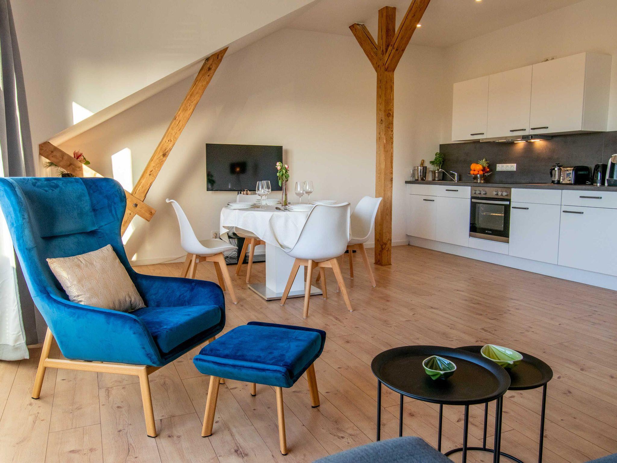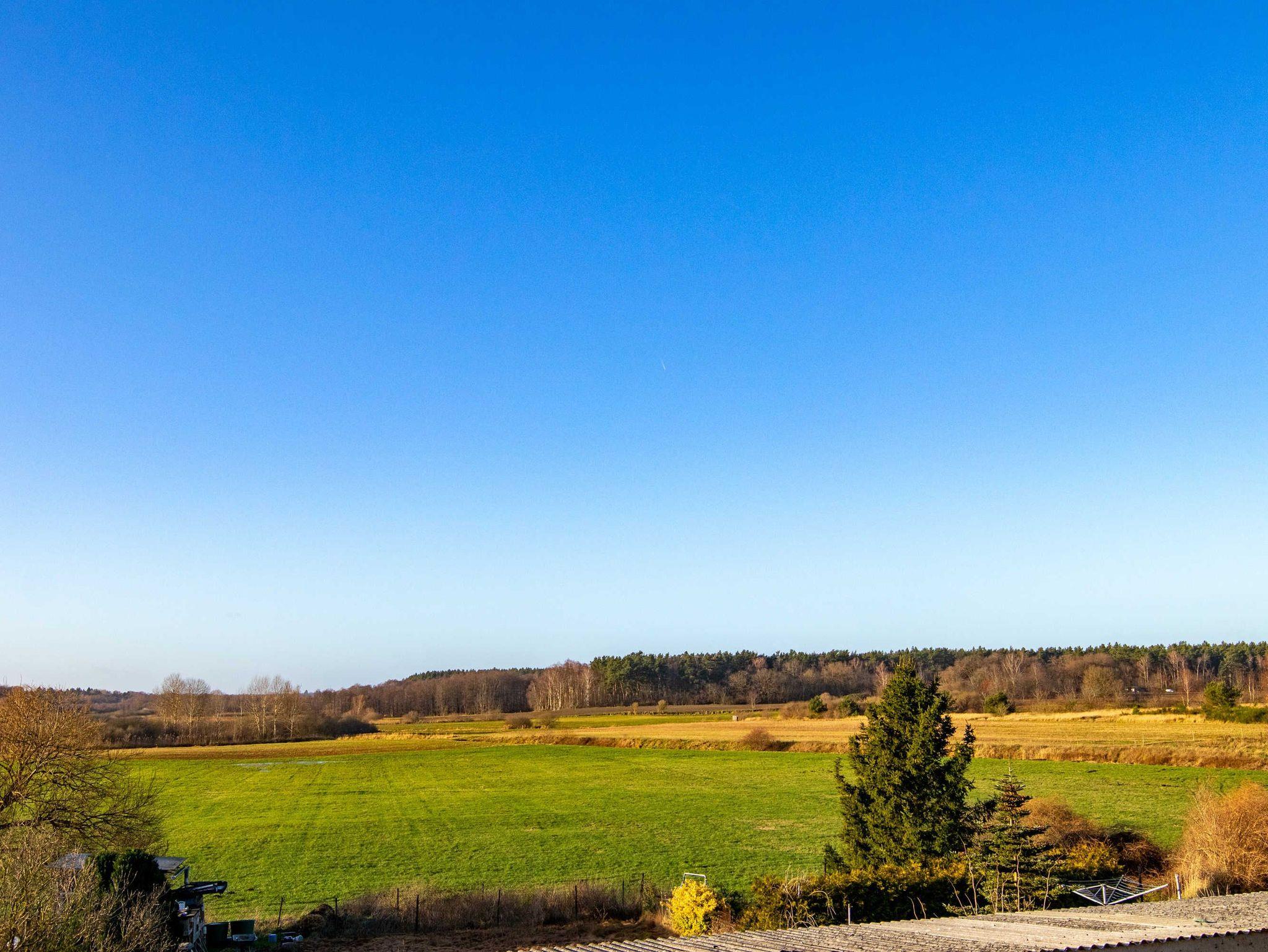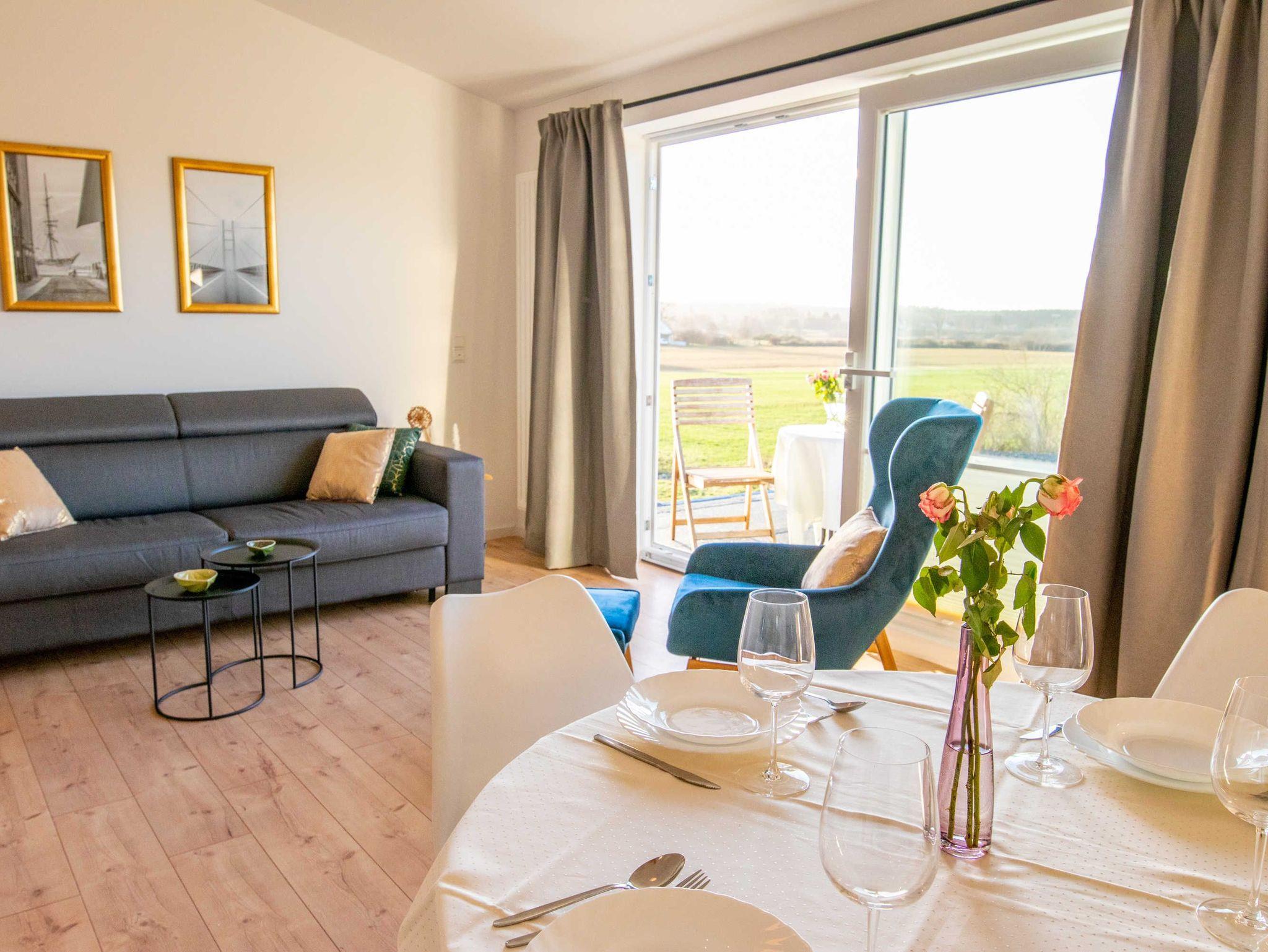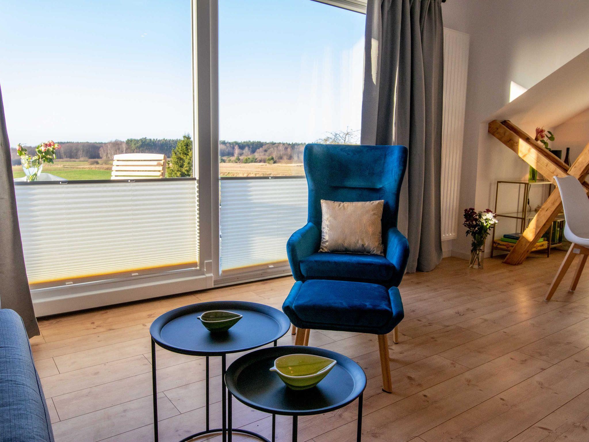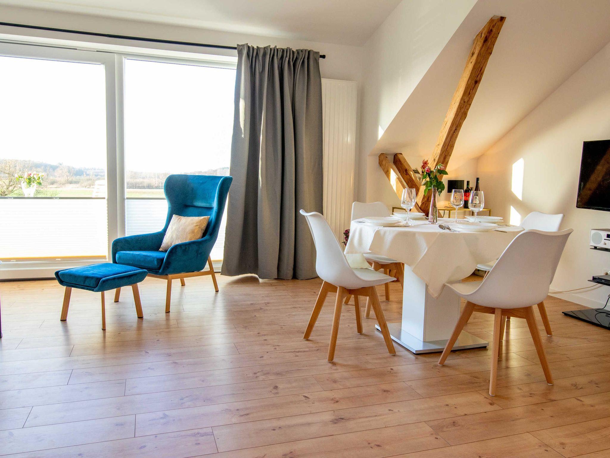 Das Landhaus Wiesenblick in Zarrendorf bietet eine stilvolle Ferienwohnung mit Panoramablick, Balkon und moderner Ausstattung.