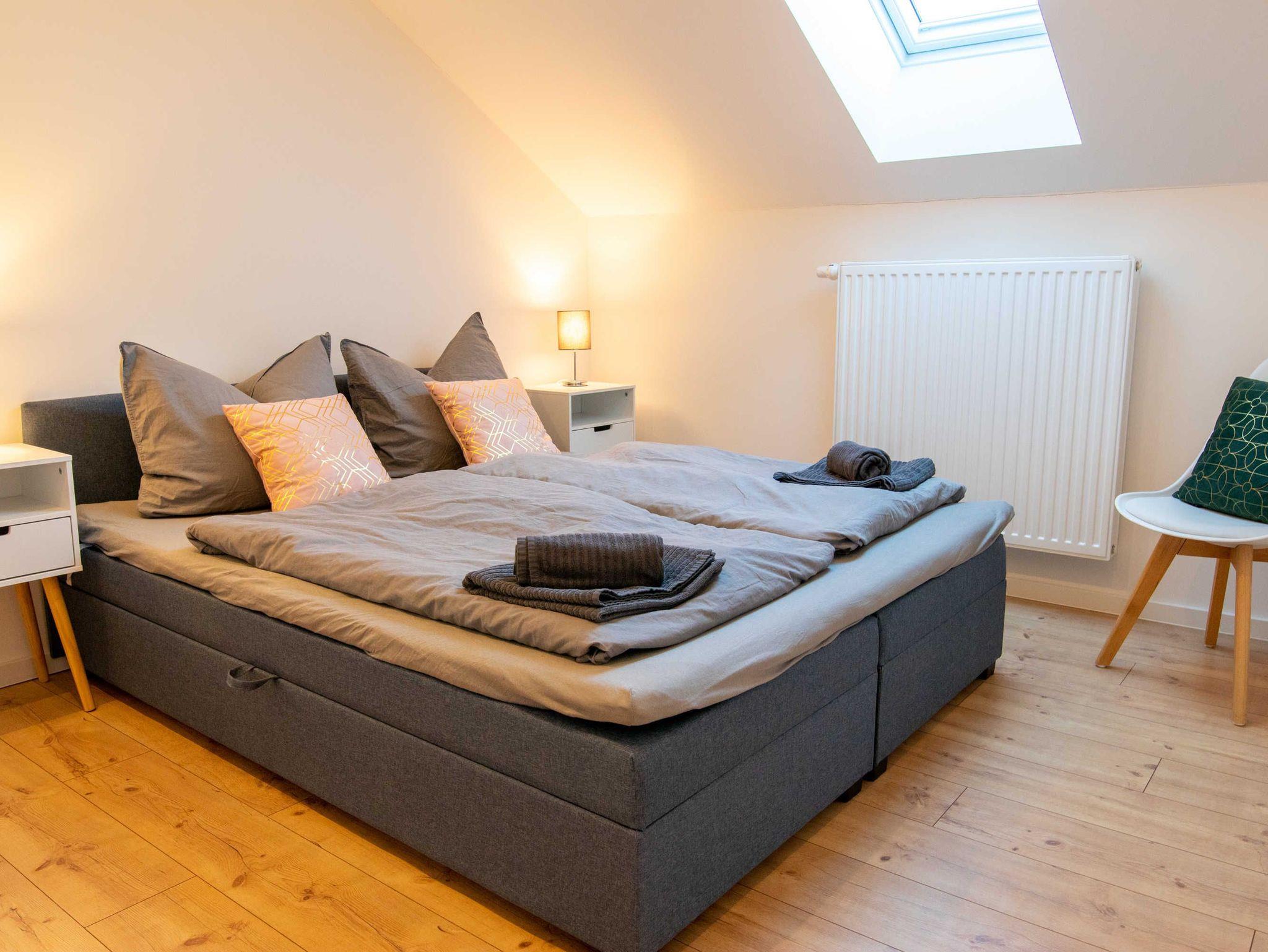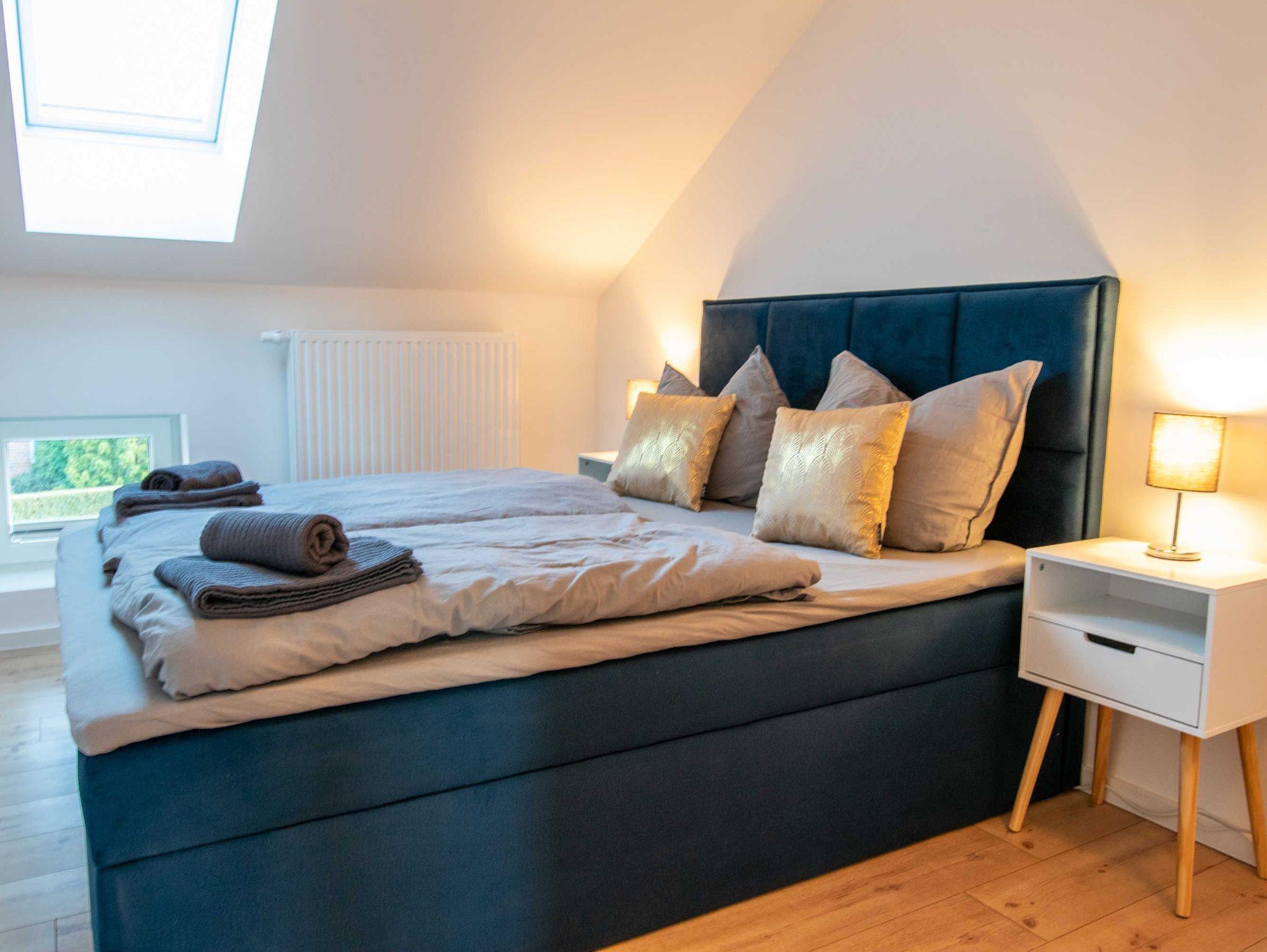 Die Ferienwohnung Panoramablick 1 im Landhaus Wiesenblick in Zarrendorf ist für bis zu 6 Personen geeignet und verfügt auf 75m² Fläche über 1 Wohnbereich mit offener Küche und Essbereich, sowie einer Schlafcouch die zu einem vollwertigen Bett (160x200) umgebaut werden kann. Die zwei separaten Schlafzimmer beinhalten jeweils ein Doppelbett (160x200) und eine Garderobe. Das Badezimmer ist abschließbar und mit einer ebenerdigen Dusche, Badewanne, Waschbecken und WC ausgestattet. Die Küche enthält neben einer Spüle, Geschirrspüler, Backofen, Cerankochfeld, Kühlschrank mit Gefrierfach, Wasserkocher, Toaster, Tassimo Kaffeemaschine auch Küchenhelfer, Besteck und Geschirr. Der Balkon kann zum Sonnen und Entspannen genutzt werden, auf der Terrasse im Erdgeschoss steht ein Grill bereit.