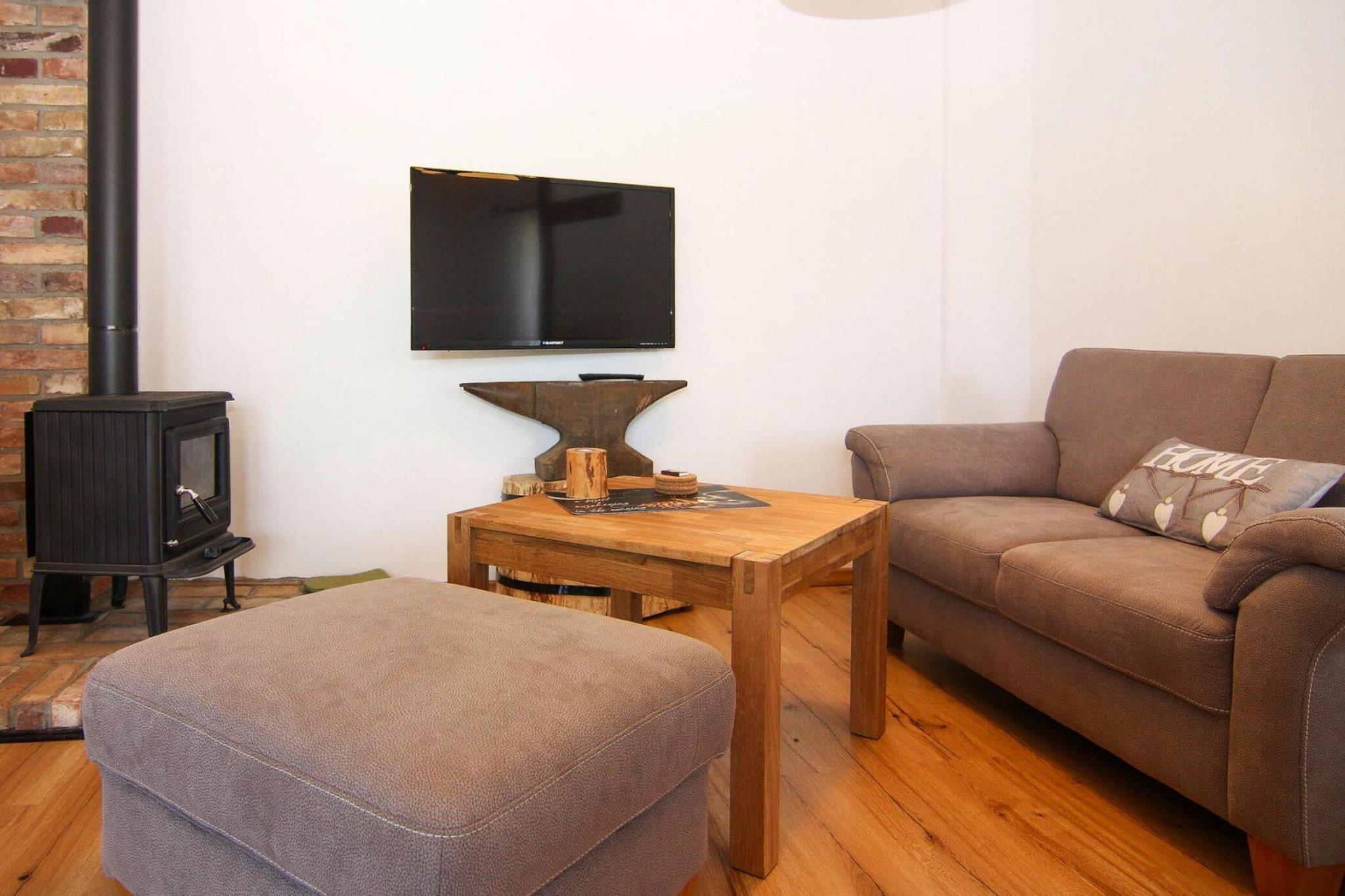 Schick und gemütlich eingerichtete Ferienwohnung im Erdgeschoss eines schönen Fachwerkhauses mit Ruderboot und Bootssteg zur gemeinschaftlichen Nutzung auf einem 3.000 qm großen Gemeinschaftsgrundstück und nur 30 m vom See entfernt. Nach einer ausgiebigen Erkundungstour durch die schöne Umgebung können Sie den Tag auf dem Grillplatz angemessen ausklingen lassen. Alternativ können Sie aber auch den festen Boden unter den Füßen mal hinter sich lassen und das Ruderboot für eine muntere Wasserfahrt nutzen. Highlights inklusive: Alle verbrauchsabhängigen Energiekosten Die Region süd-westlich des Achterwassers und des Peenestroms ist charakterisiert durch weite Wiesen, Felder, Moore und Wälder. Die kleime Gemeinde Zemitz, nicht weit von Greifswald entfernt, ist durch die Nähe zur Ostseeinsel Usedom ein optimaler Ausgangspunkt. Gute Einkaufsmöglichkeiten und alles für den täglichen Bedarf finden Sie in Wolgast (neun Kilometer). Aktivitäten in der Nähe: Erkunden Sie die ruhige Umgebung mit einer ausgiebigen Fahrradtour oder machen Sie erholsame Spaziergänge entlang der beliebten Wanderwege. Die Nähe zu dem Naturschutzgebiet Stettiner Haff sorgt für einige spannende Naturschauspiele und beeindruckt nicht nur die Naturliebhaber. Einen ebenso gelungenen Eindruck hinterlässt auch der Aussichtsberg Bauerberg oder die Feldsteinkirche in Wehrland. Die Nähe zu der Hansestadt Greifswald sorgt für eine vielseitige Wasser- und Freizeitlandschaft: Besuchen Sie doch mal die verschiedenen Stadthäfen und bestaunen Sie die vielen Wassersportler entlang ihrer Segelreviere. Diese Region, welche sich zwischen Usedom und Rügen befindet, sorgt für vielseitige Gestaltungsmöglichkeiten.