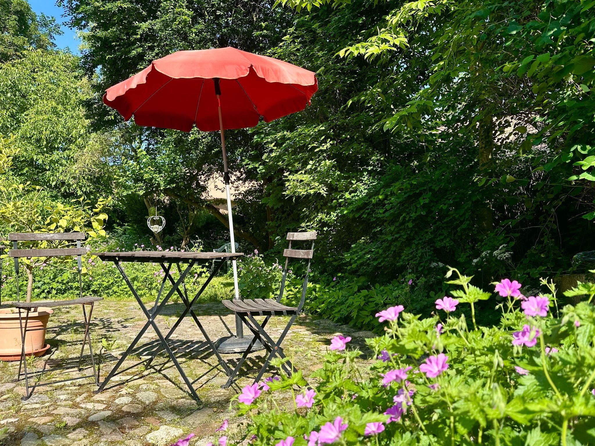 Im Vorgarten des Kutscherhauses befindet sich eine gemütliche Sitzecke, die perfekt für entspannte Grillabende unter freiem Himmel geeignet ist. Von hier aus können Sie die umliegende Natur beobachten und den abendlichen Klängen der Tierwelt lauschen.