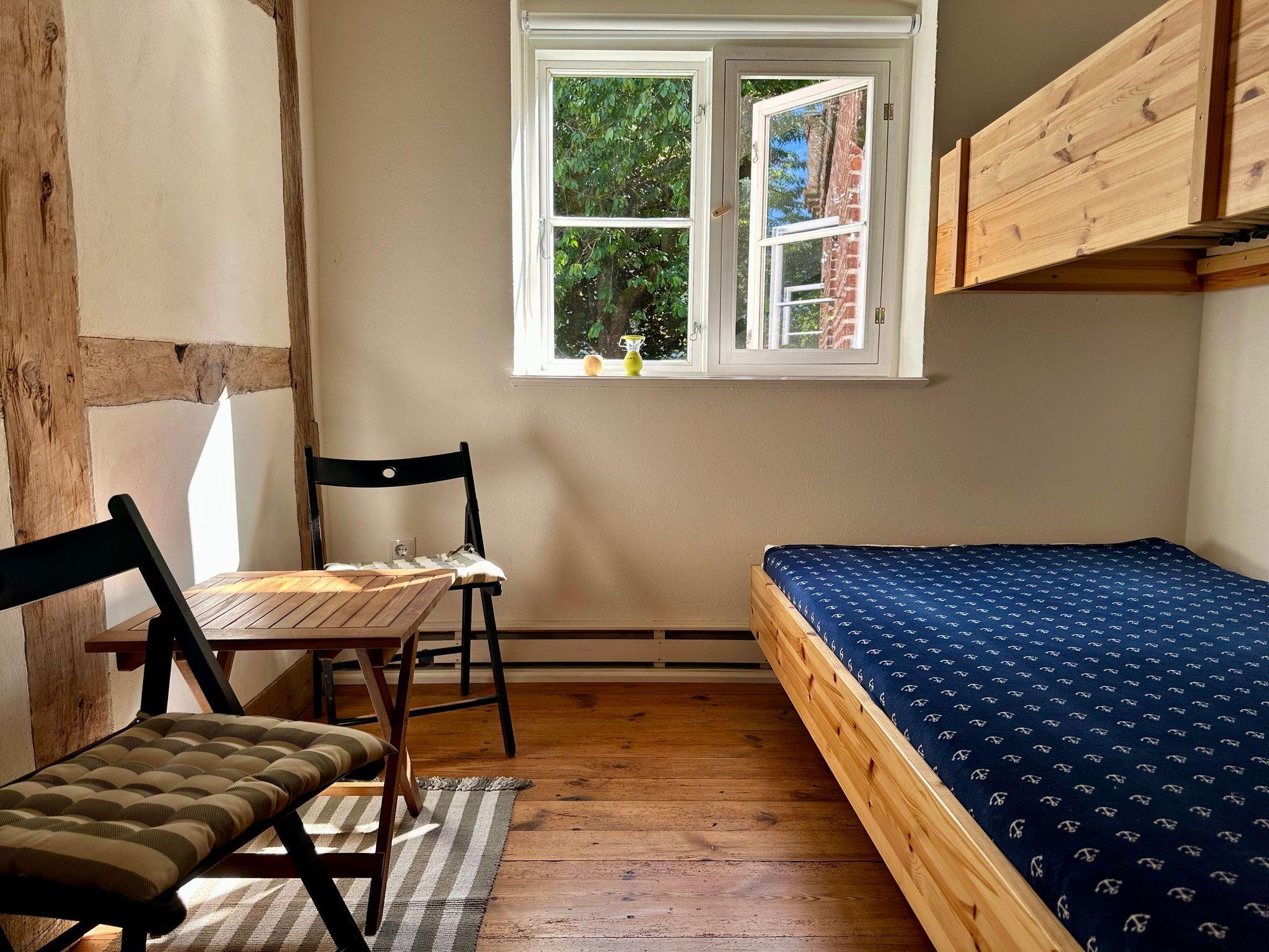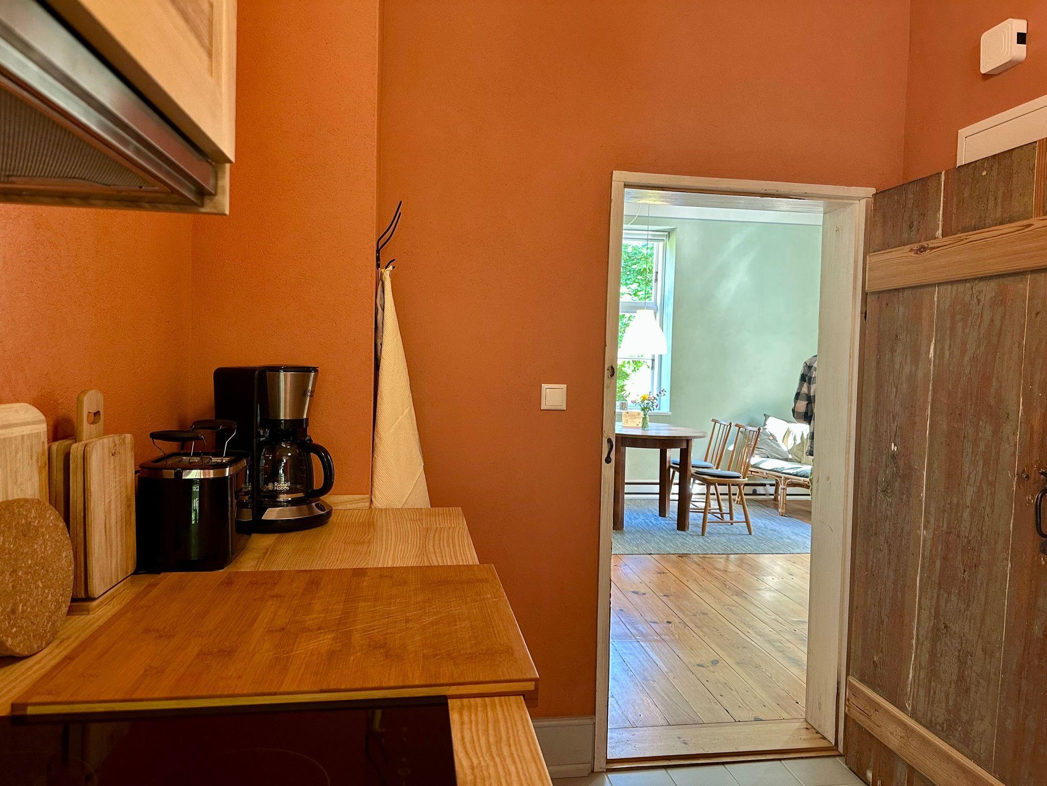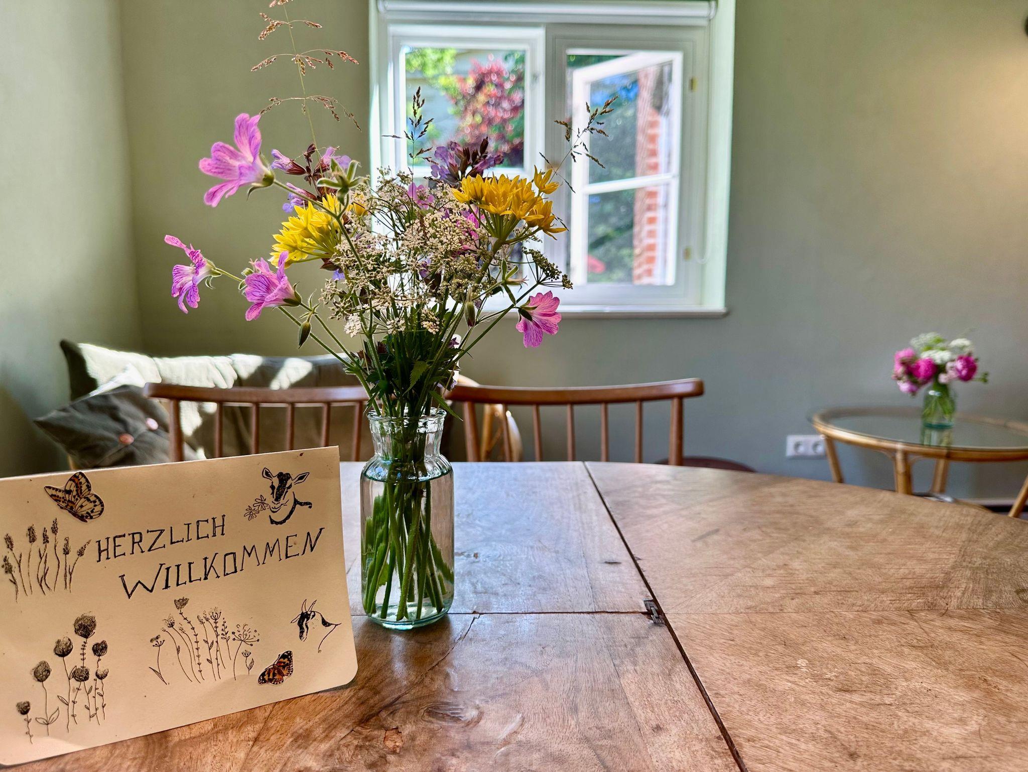 Die liebevoll eingerichtete Ferienwohnung im Erdgeschoss verbindet historischen Charme mit modernem Komfort. Natürliche Materialien und stilvolle Möbel sorgen für eine beruhigende Atmosphäre und laden zum Entspannen ein.