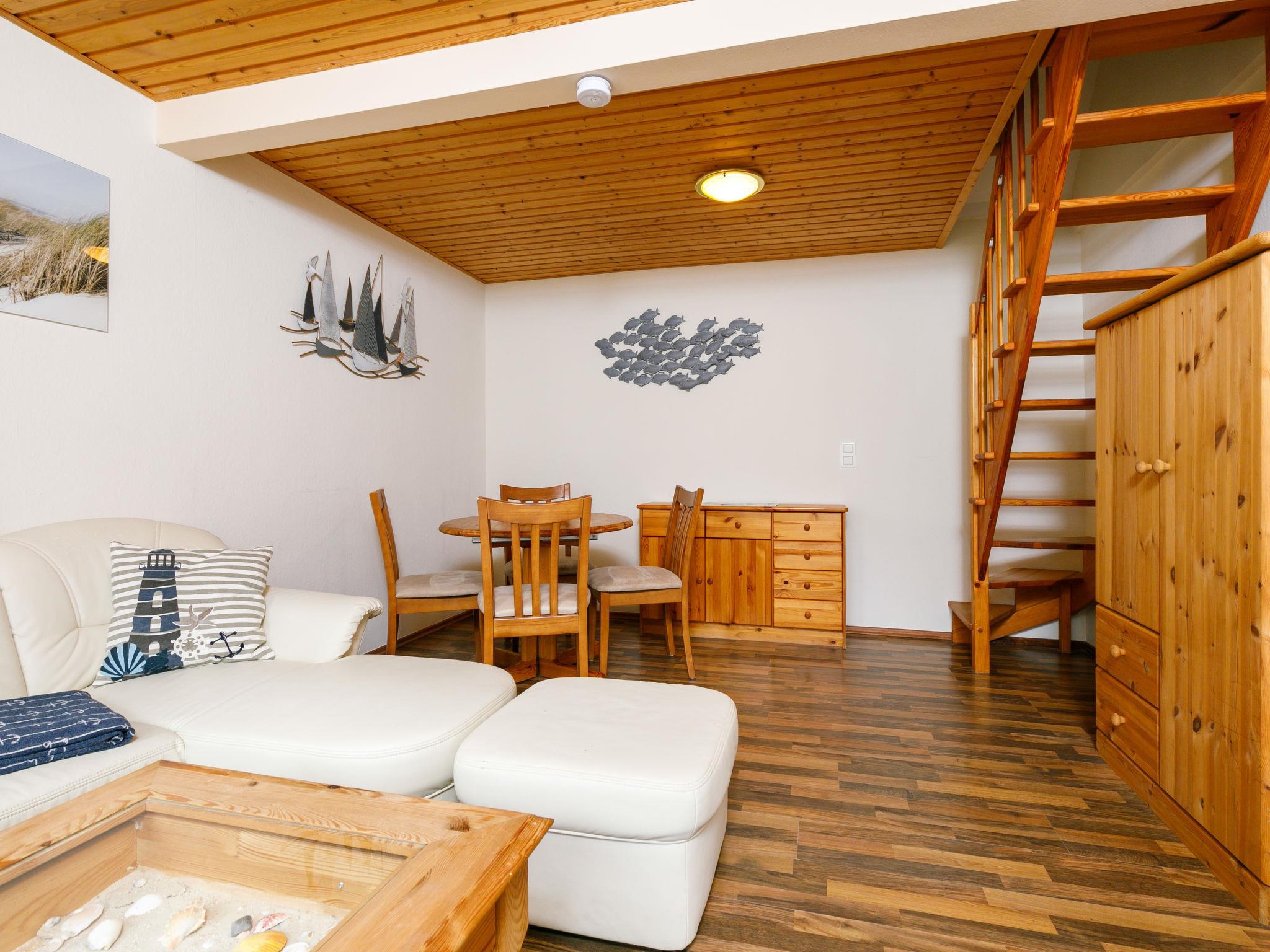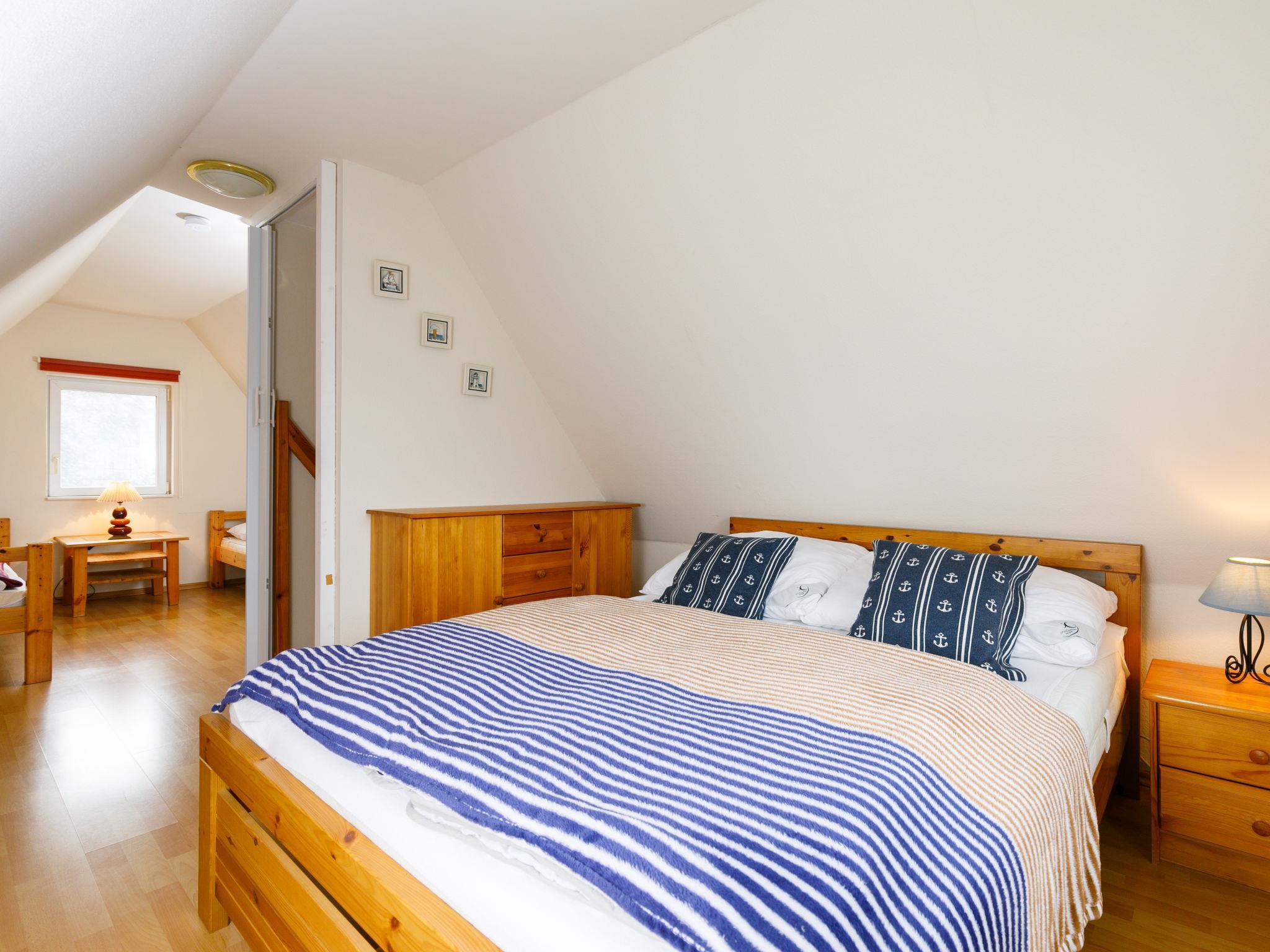 "Fischerbungalow", 2-Zimmer-Bungalow 40 m2 auf 2 Stockwerken, im Erdgeschoss. Gemütlich eingerichtet: Wohn-/Esszimmer mit Kabel-TV (Flachbildschirm), Radio. Ausgang zur Terrasse. Küche (2 Glaskeramikplatten, Toaster, Wasserkocher, elektrische Kaffeemaschine). Dusche/WC. E-Heizung. Dachgeschoss: (steile Treppe) 1 Zimmer mit 2 Betten und 1 Doppelbett. Terrasse. Terrassenmöbel. Parkplatz (1 Auto) beim Haus. Bitte beachten: Nichtraucher-Haus. Rauchmelder.
