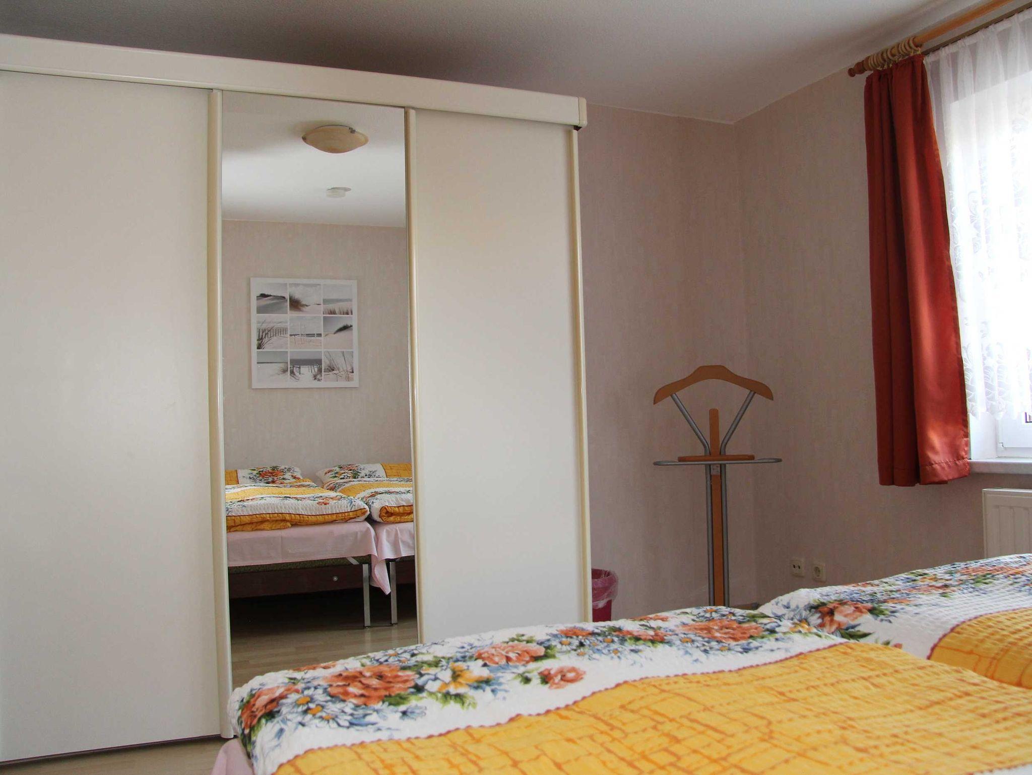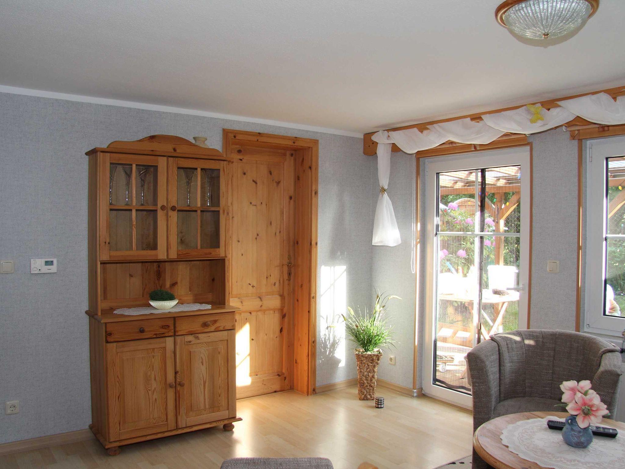 Die ca. 40 m² große Nichtraucher-Ferienwohnung im Erdgeschoss verfügt über einen großzügigen Wohnraum, ein separates Schlafzimmer mit einem Doppelbett sowie Badezimmer mit Dusche/WC. Die separate Küche ist offen zum Wohnzimmer. Zur Wohnung gehört eine eigene überdachte Terrasse mit Blick in den Garten. Die Wohnung ist mit Laminat und Insektenschutzgitter ausgestattet. Das Grundstück ist umzäunt. Ein PKW-Stellplatz steht kostenfrei zur Verfügung. Die Bettwäsche ist im Preis inbegriffen.