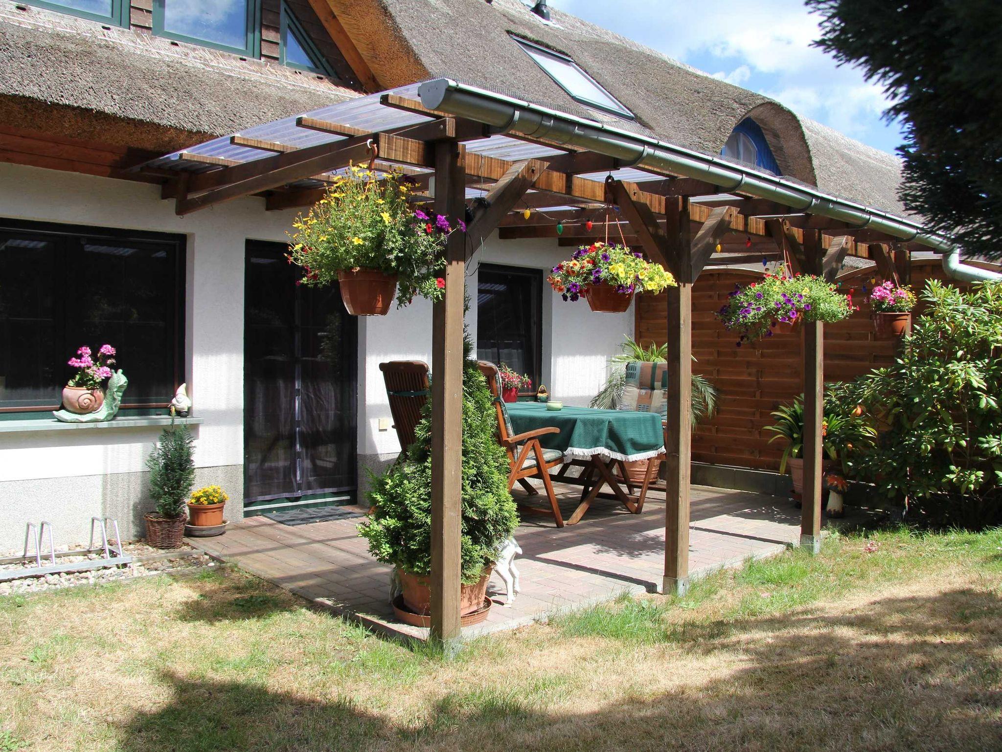 Komfortable Ferienwohnung unter traditionellem Rohrdach mit Terrasse nahe Ostseestrand und Achterwasser in Zempin.