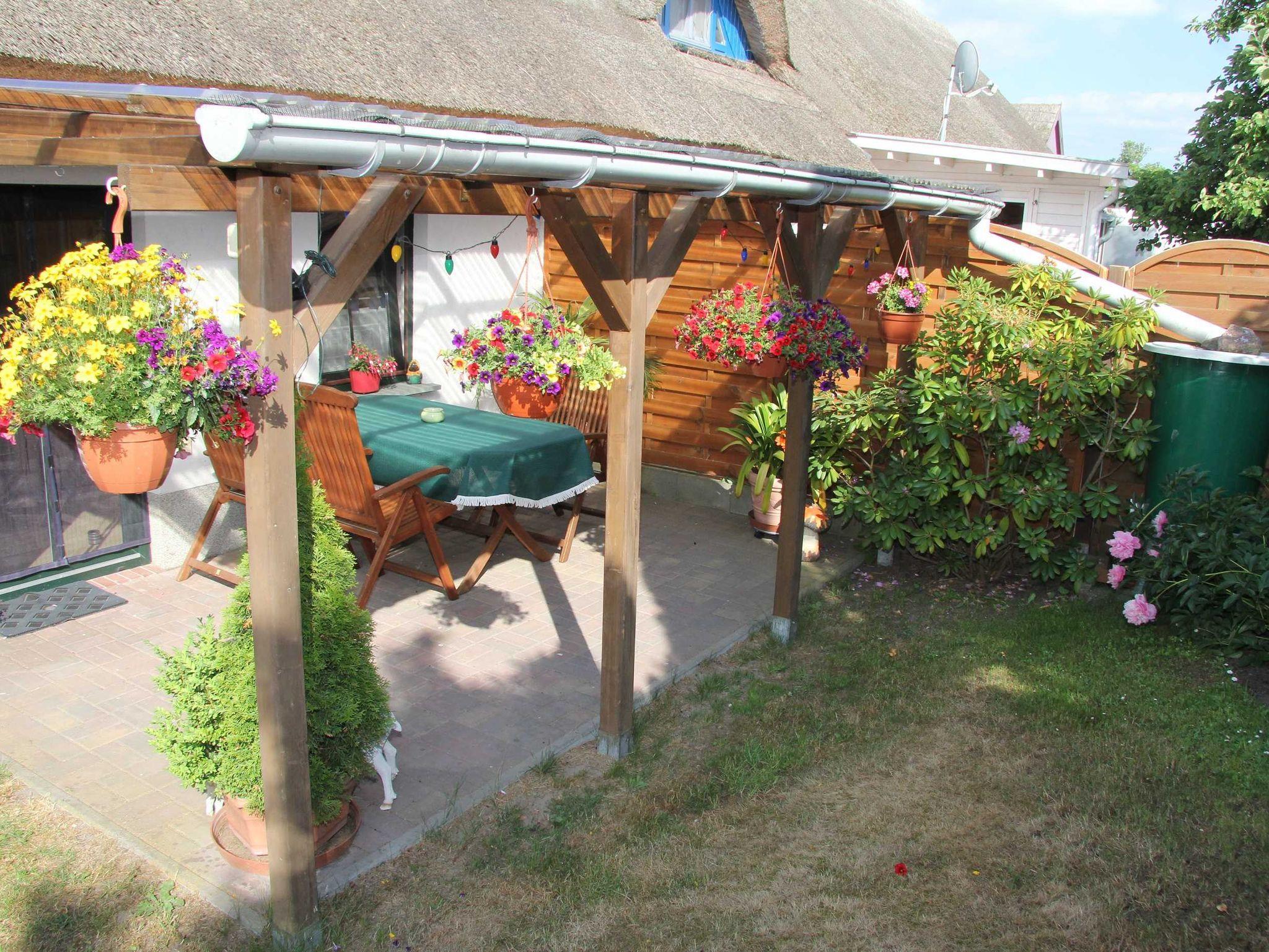 Die komfortable Ferienwohnung befindet sich in einem der wenigen erhaltenen Rohrdachhäusern im ursprünglichen Dorfkern Zempins. Wohnen Sie unter dem Rohrdach und genießen die sonnige, ruhige und entspannte Atmosphäre mit der Nähe zum Achterwasser auf der einen Seite sowie dem nur 1000m entfernten Ostseestrand auf der anderen Seite. Die im Süden gelegene überdachte Terrasse bietet einen Blick in den Garten.
