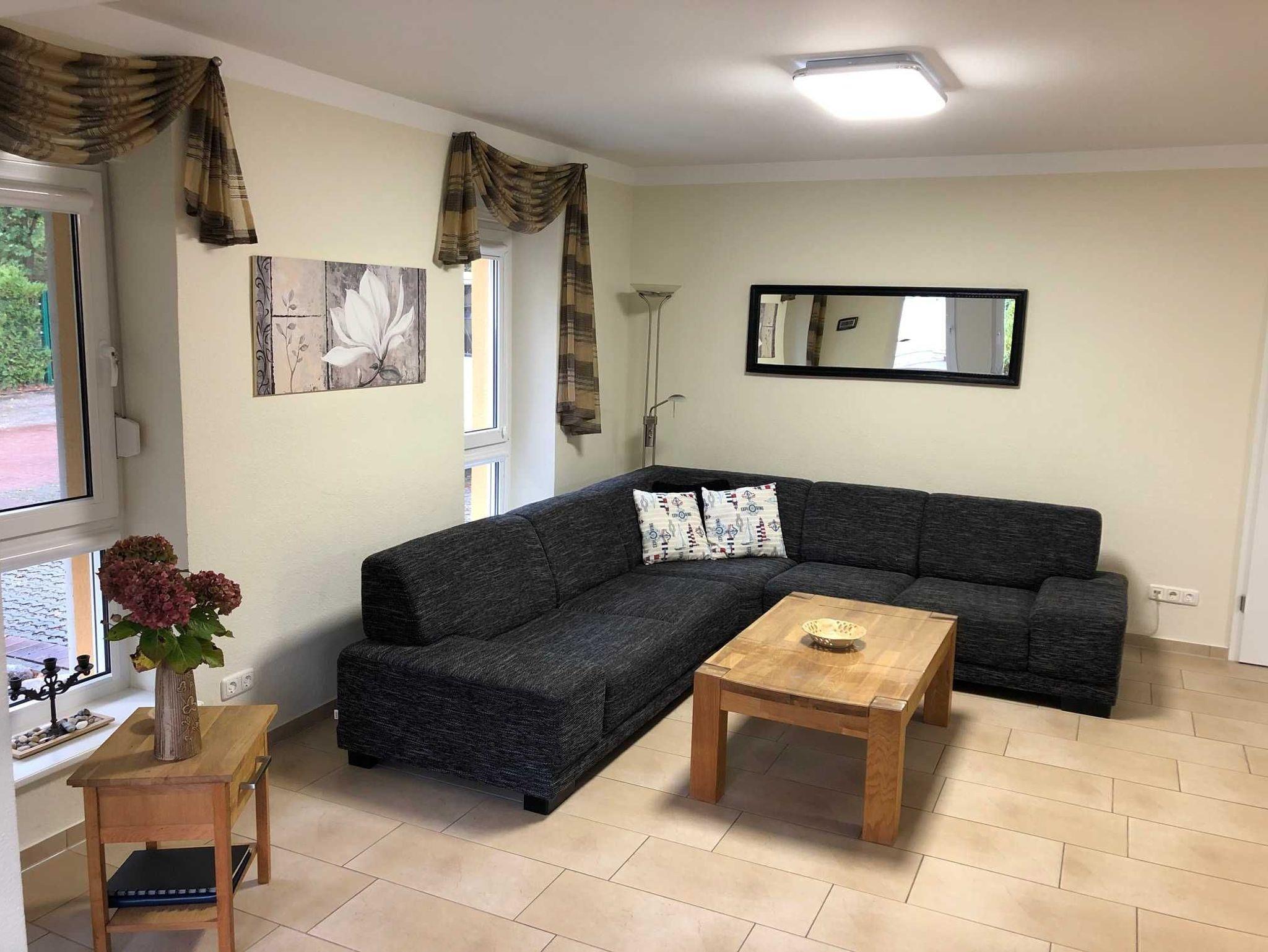 Gemütliche Ferienwohnung Seemalve in Zempin, nur 150 m vom Ostseestrand mit großer Terrasse und Garten.