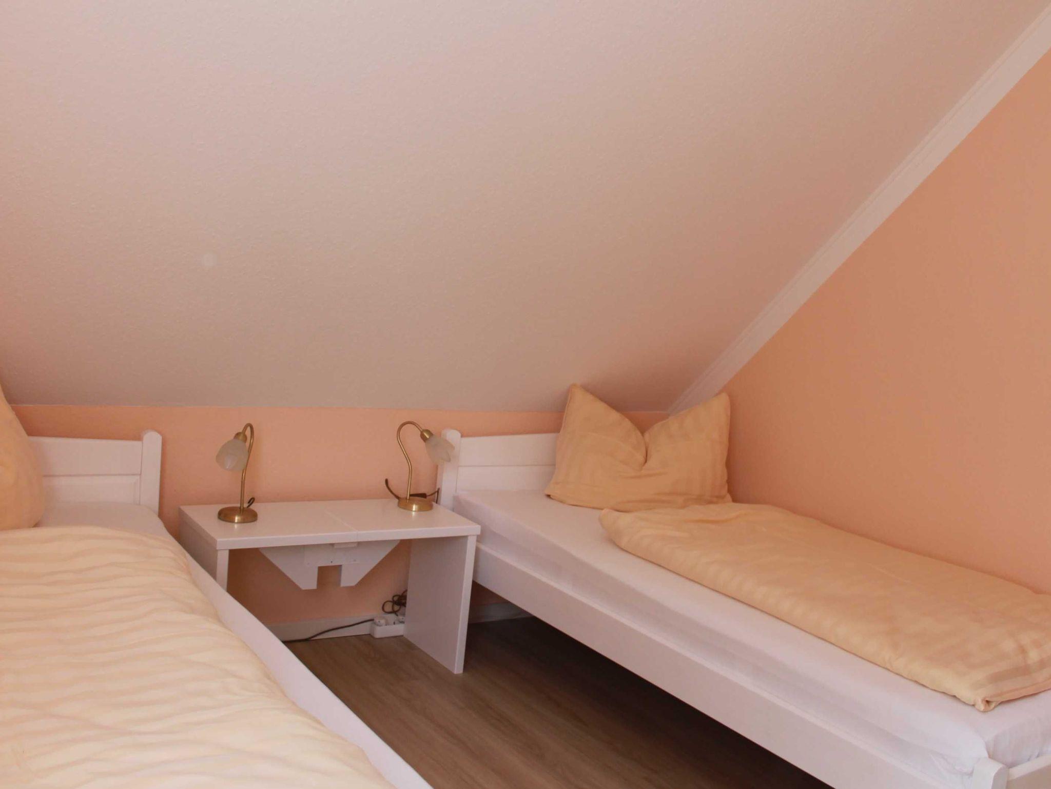 Im Obergeschoss stehen Ihnen zwei Schlafzimmer mit einem Doppelbett bzw. 2 Einzelbetten und ein Bad mit Dusche und WC zur Verfügung.
