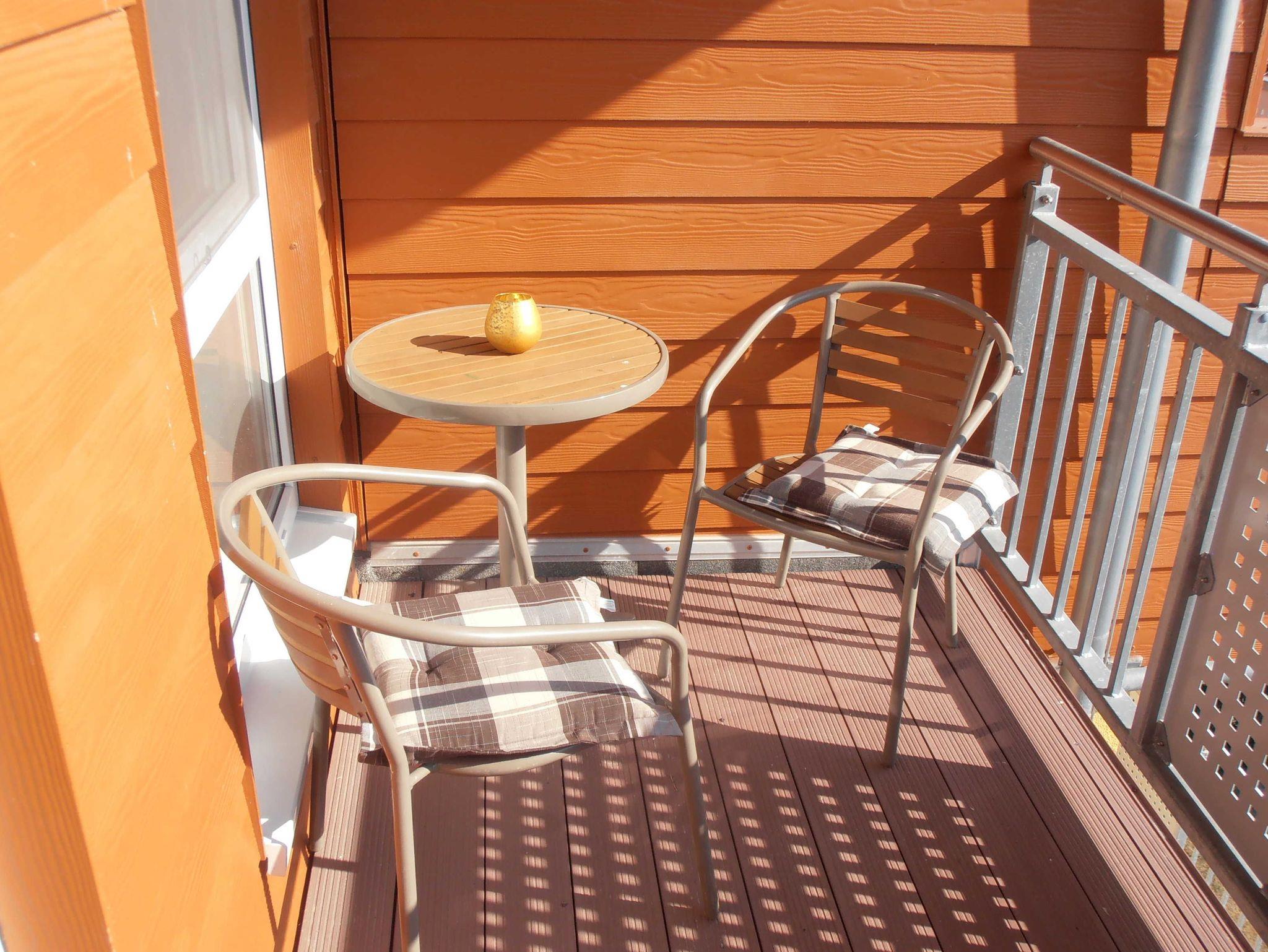 1 Balkon mit Gartenmöbeln & Strandkorb