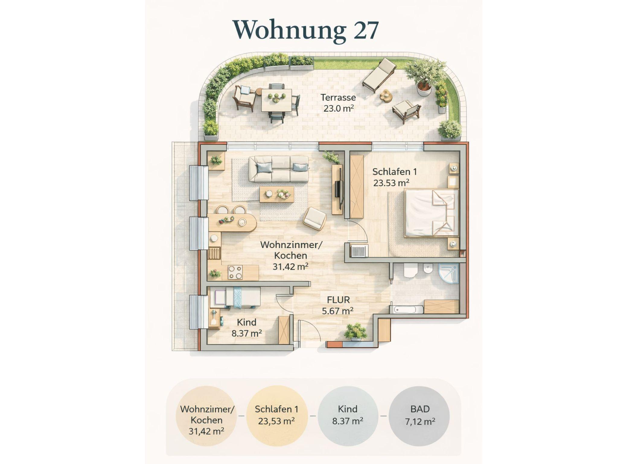 Modern eingerichtete Ferienwohnungen mit einer Größe von 51 m² - 80 m² laden mit ihrem gemütlichen Ambiente und den eigenen großen Balkons/ Eck-Balkonen zum Wohl fühlen ein. Hier kann man den Alltagsstress abschalten und sich in angenehmer Atmosphäre wohl fühlen.