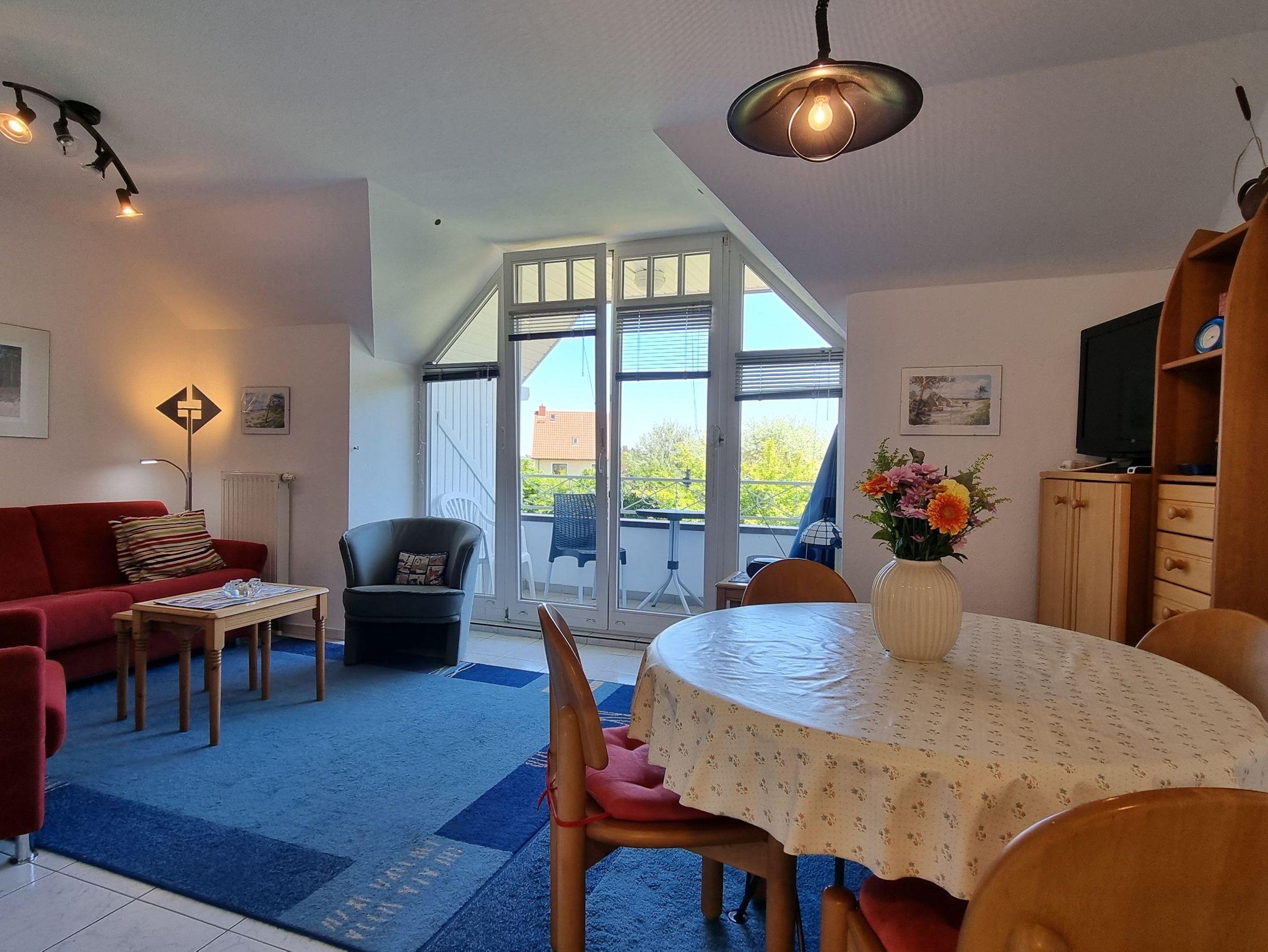 • Das Wohnzimmer verfügt ein Schlafsofa (Aufbettung für die 3. Person) und einen Essbereich für 4 Personen.
