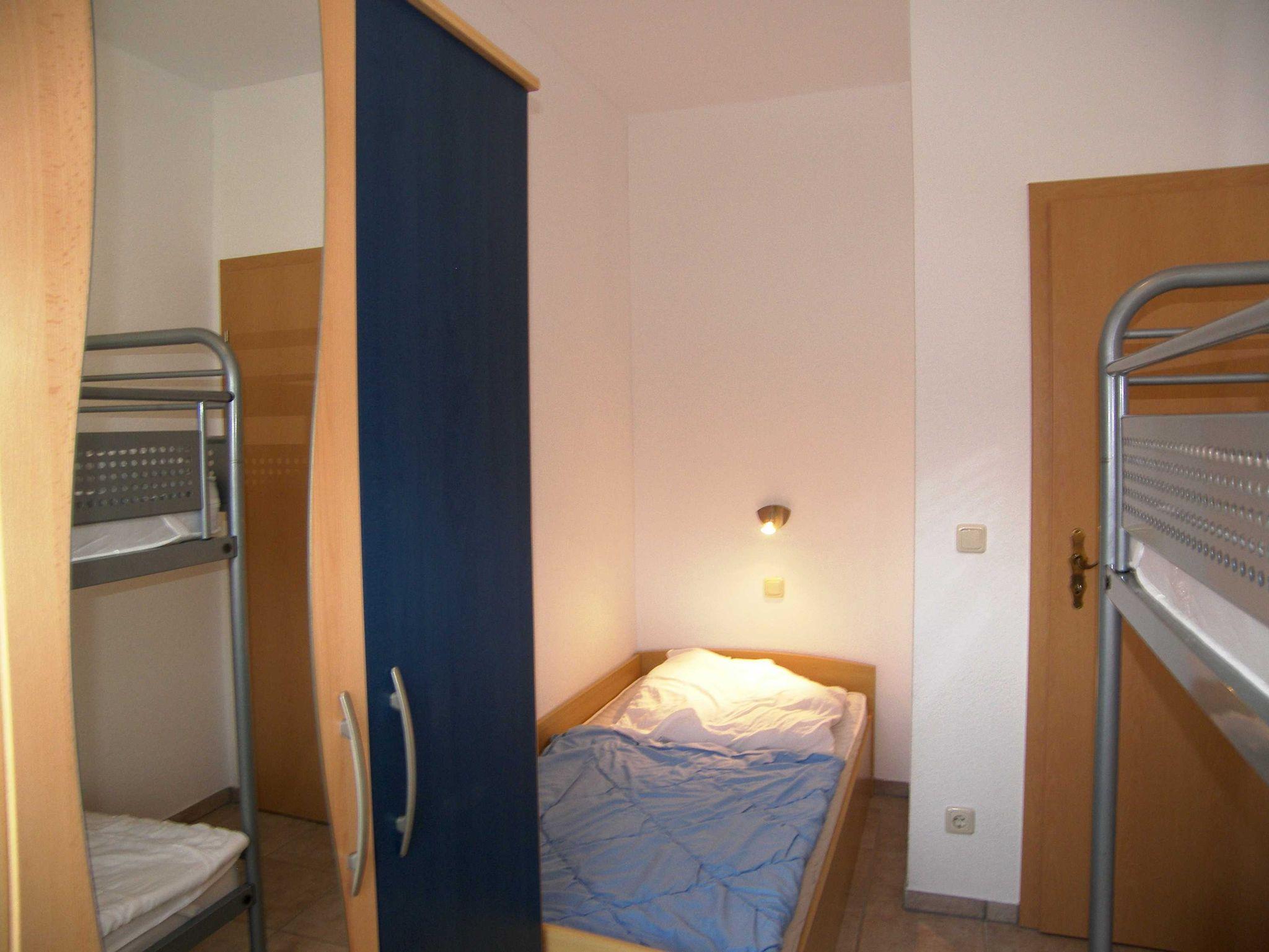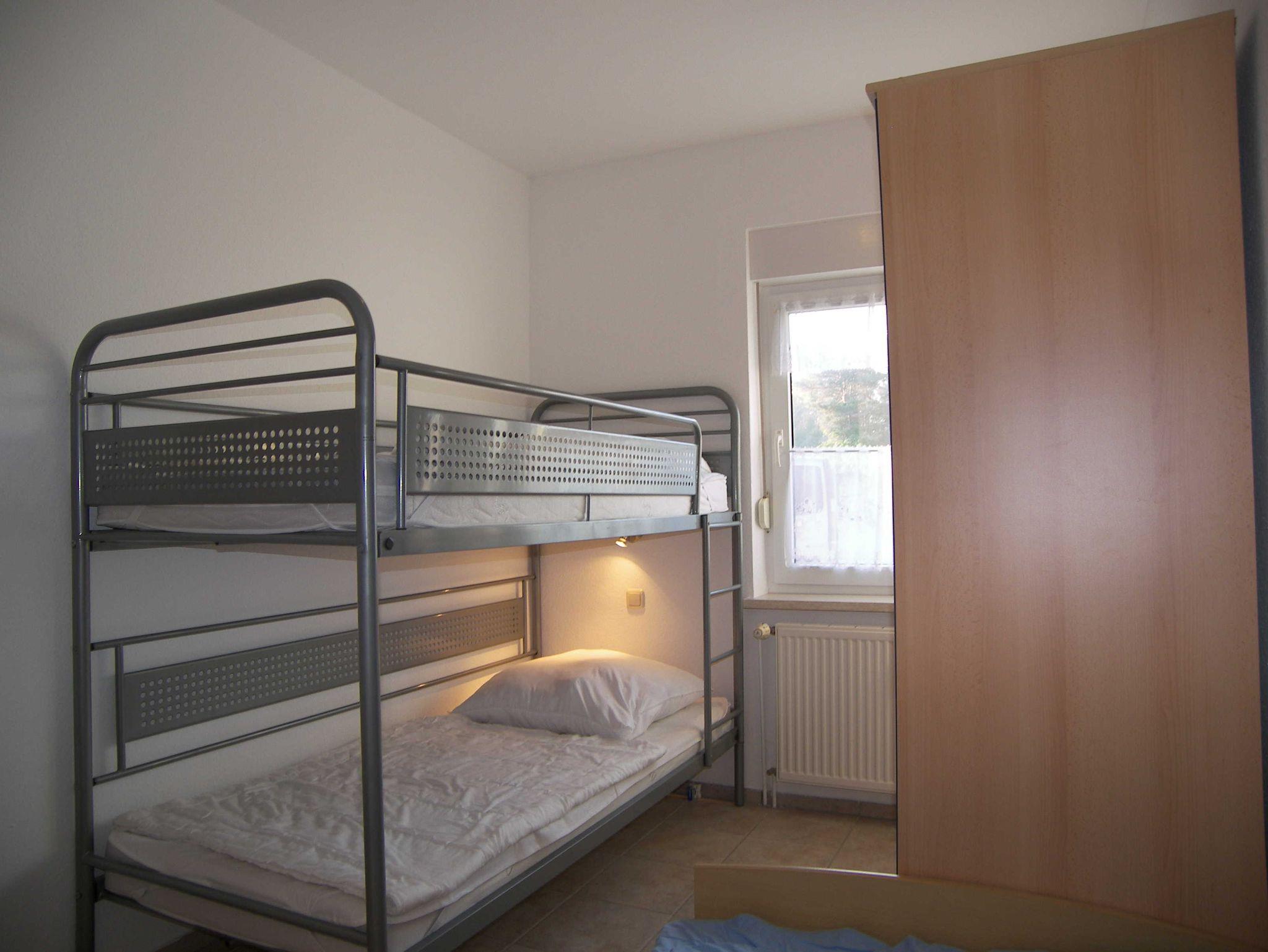 Die 50 qm große Ferienwohnung verfügt über einen separaten Eingang und eine eigene Terrasse. Der offene Wohnbereich ist mit einer gemütlichen Couch und einem Flat-TV, sowie mit einem Esstisch ausgestattet und schließt an die offene Küchenzeile an. Diese ist mit Backofen, Cerankochfeld, Spülmaschine, Kühlschrank, Wasserkocher, Toaster und Kaffeemaschine ausgestattet. Das größere Schlafzimmer ist mit einem Doppelbett und einem Kleiderschrank ausgestattet, das kleinere Schlafzimmer mit einem Einzelbett und einem Etagenbett. Das Badezimmer verfügt über Dusche/WC. Bettwäsche und Handtücher können gegen Gebühr dazugebucht werden.