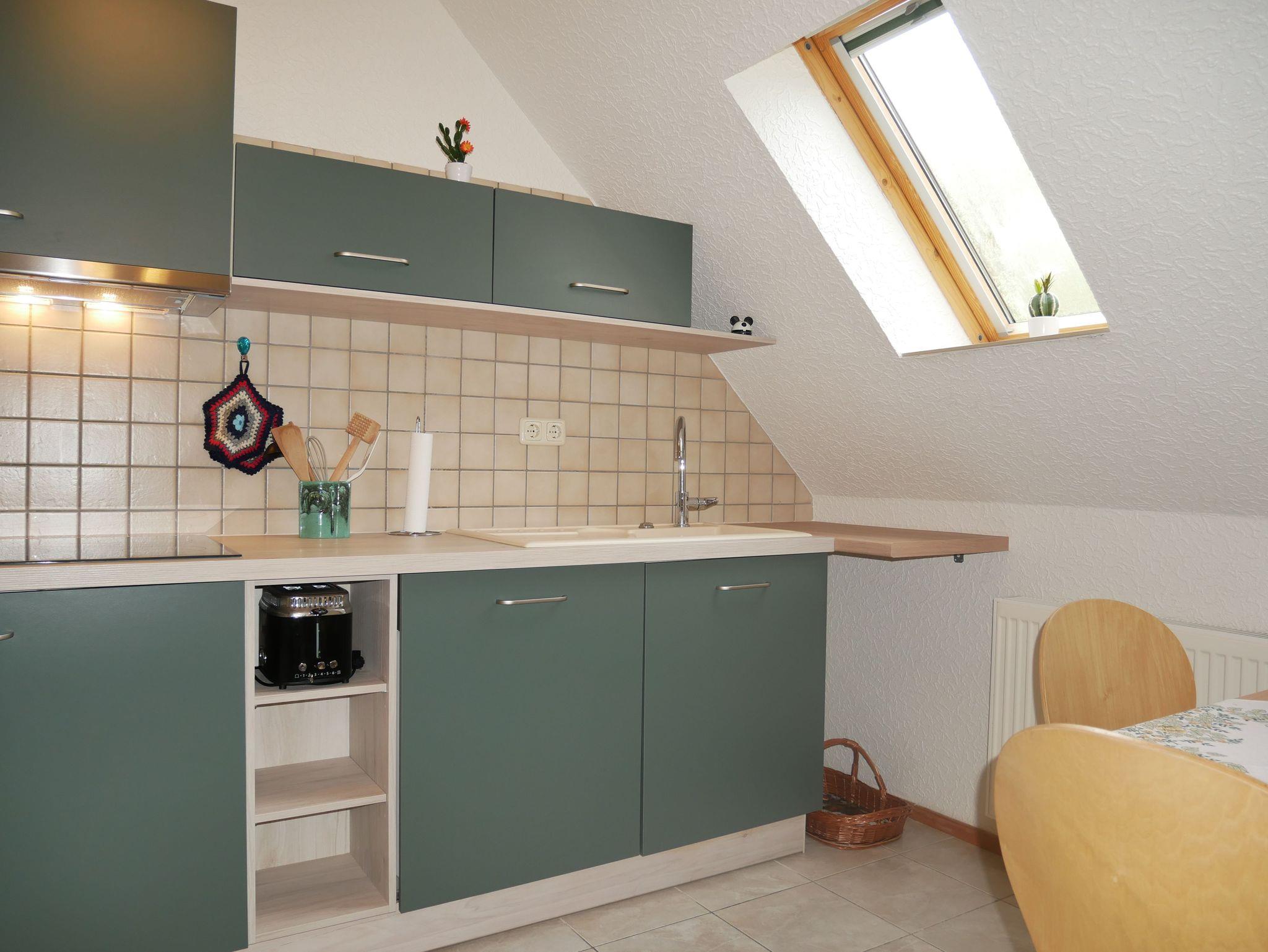 Diese liebevoll eingerichtete Ferienwohnung bietet auf ca. 35 qm alles, was Sie für einen erholsamen Aufenthalt benötigen. Über eine Treppe im Haus gelangen Sie bequem in das 1. Obergeschoss, wo Sie ein helles und freundliches Zuhause auf Zeit erwartet.