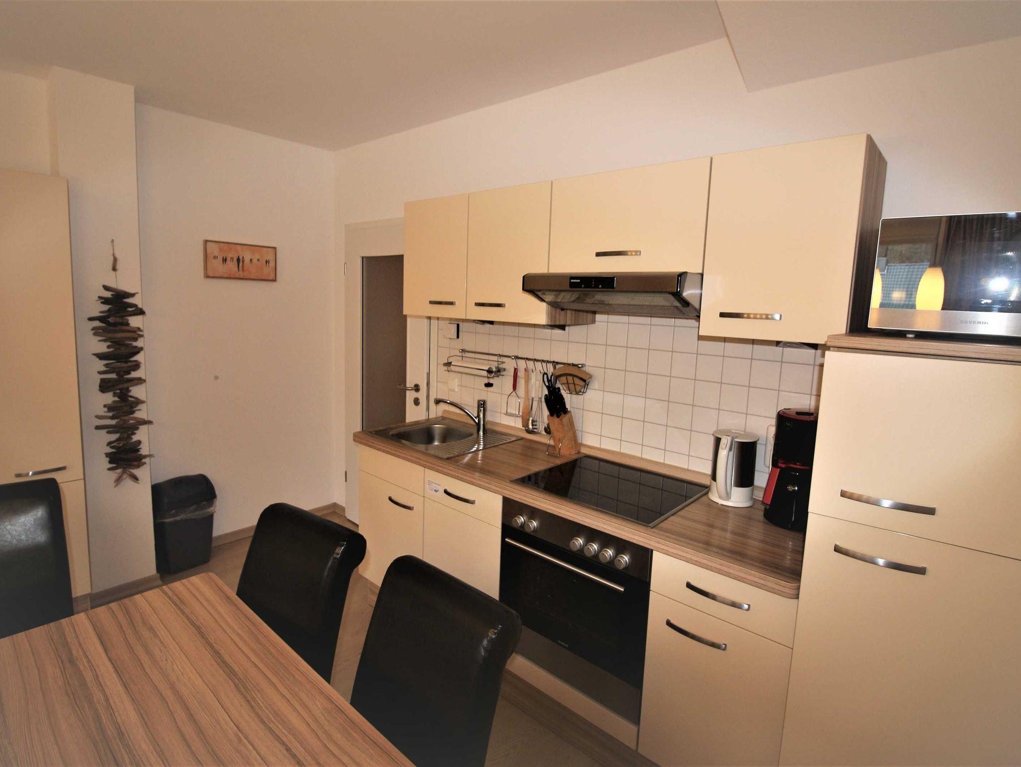Die Ferienwohnung „Strandläufer“ erstreckt sich über 2 Etagen, ist sehr geräumig und komfortabel eingerichtet. Im 1.OG befindet sich das Wohnzimmer mit Flachbild TV, hochwertigem 5.1. Surroundsystem inkl. DVD Player, CD und Radio, einem schönen Balkon mit Strandkorb sowie 4 Stühlen und Esstisch, ein Bad mit Dusche, WC und Fön. Im 1.OG steht Ihnen außerdem eine eigene hochwertige Infrarot Wärmesauna im Bad zur Verfügung. Die offene Einbauküche ist mit einem Ceranherd, Backofen, Kühlschrank, Tiefkühlfach, Gläser, Besteck und Geschirr ausgestattet. Und zusätzlich: Mikrowelle mit Grill, Krups Gourmetkaffeemühle, Krups Espressomaschine, Melitta Kaffeemaschine.