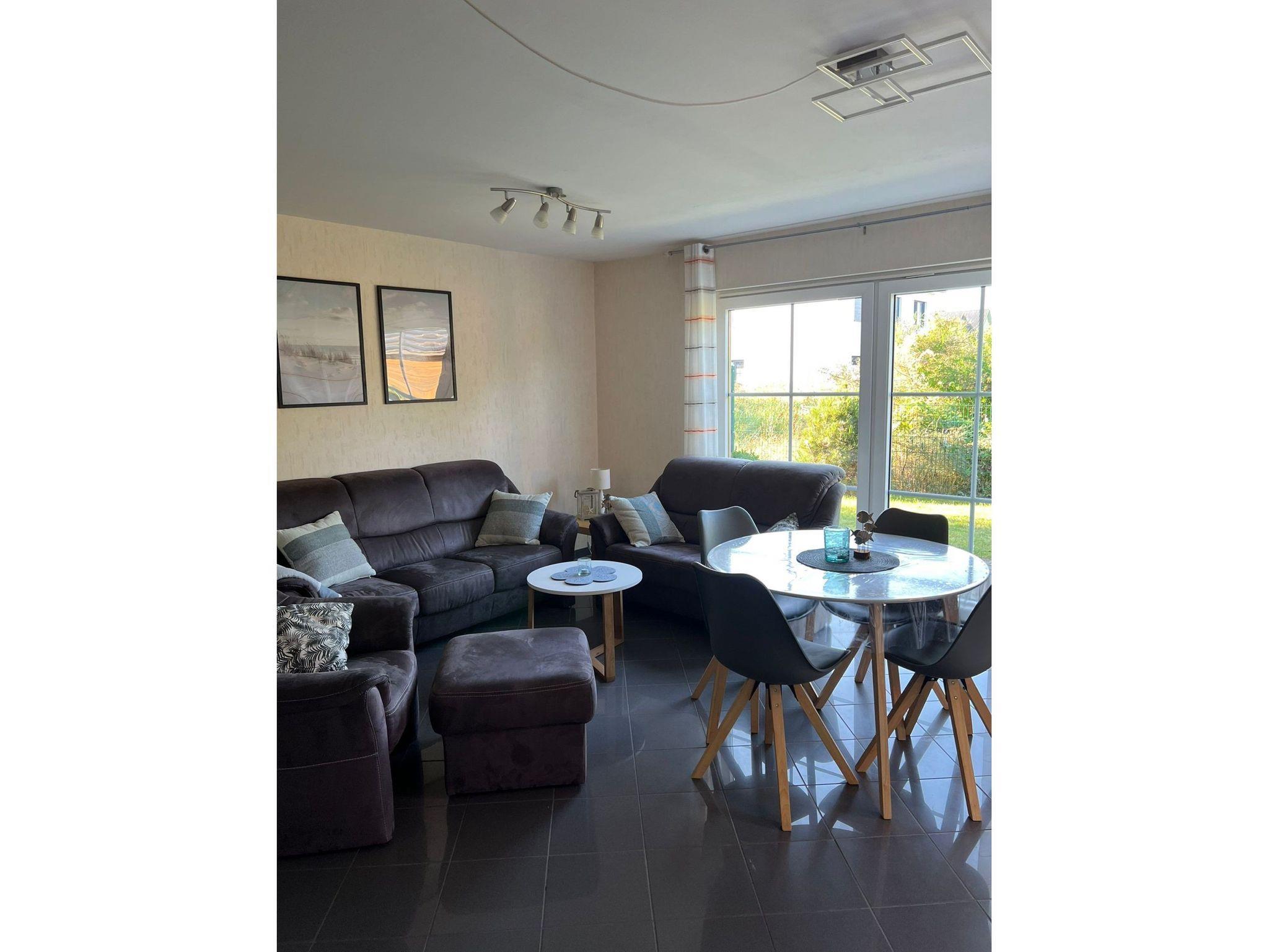 Die helle, großzügige und exklusiv eingerichtete 3-Raum?Erdgeschoss-Ferienwohnung ist (ca. 65 m²) groß und ist für 4 Personen geeignet, besteht aus einem Wohnraum, kompletter Einbauküche mit Cerankochfeld, Backofen, Mikrowelle und Geschirrspüler, Schlafzimmer (Doppelbett), Kinderzimmer, Bad mit Dusche (Bodengleich) und WC, Gäste-WC (zusätzlich) und einer Terrasse. Fliesenfußboden, sowie Fußbodenheizung im Wohnzimmer, Küche und Bad, Die zur Südseite gelegene gepflasterte Terrasse ist mit Gartenmöbeln, Sonnenschirm und Grill ausgestattet. Der Terrassenbereich ist aus der Küche sowie aus dem Wohnbereich begehbar. Die Erstausttatung Bettwäsche sowie 1 Geschirrtuch sind inklusive. Handtücher können entweder mitgebracht oder vor Ort gegen Gebühr ausgeliehen werden (bitte beim Schlüsselverwalter Herrn Käding vorbestellen). Den Gästen steht kostenfrei ein DSL-Internetzugang über W-LAN zur Nutzung zur Verfügung (keine zugesicherte Eigenschaft falls mal der Router ausfällt). Haustiere sind nicht erlaubt, Nichtraucherwohnung.
