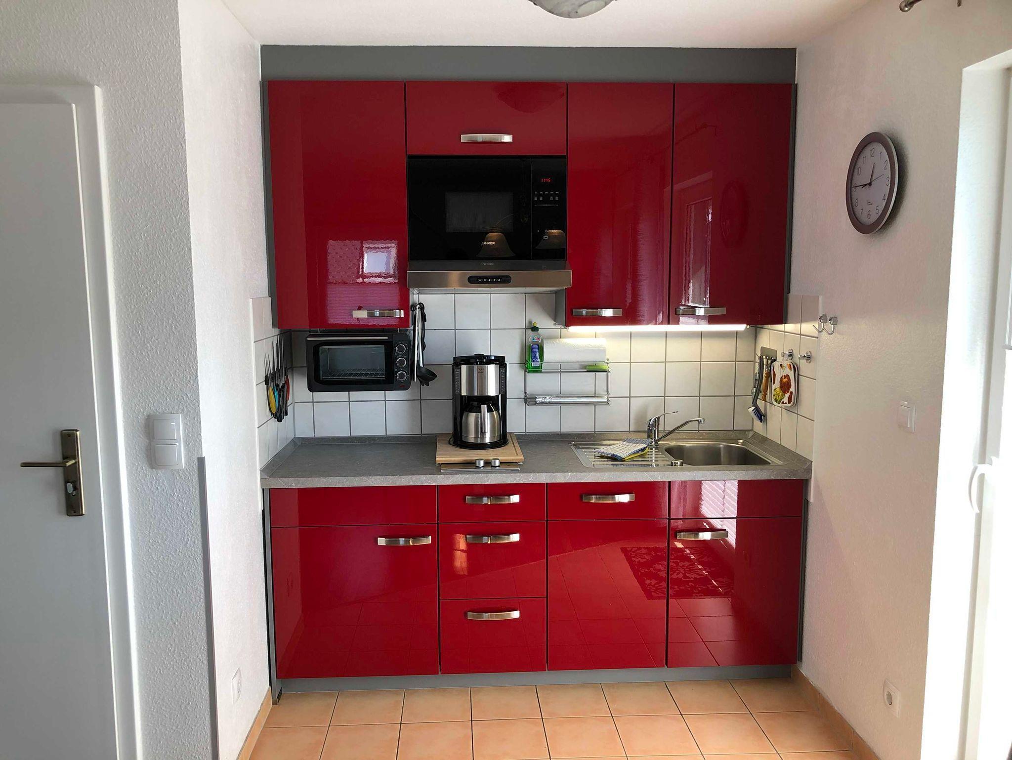 Cerankochfeld, Dunstabzugshaube, Eierkocher, Einbauküche, Gefrierfach, Geschirrspüler, Kaffeemaschine, Kochzeile, Kühlschrank, Mikrowelle, Staubsauger, Toaster, Wasserkocher
