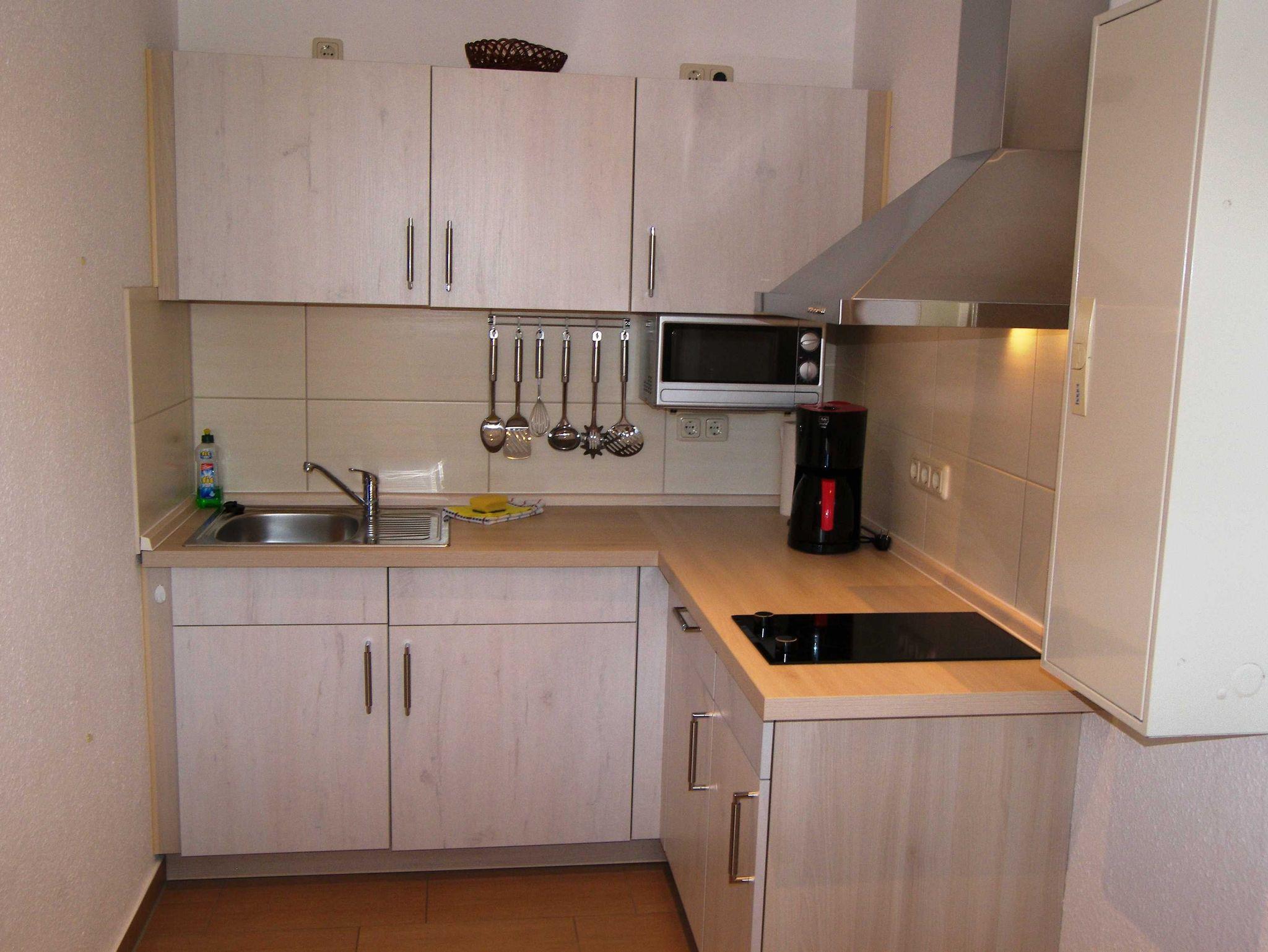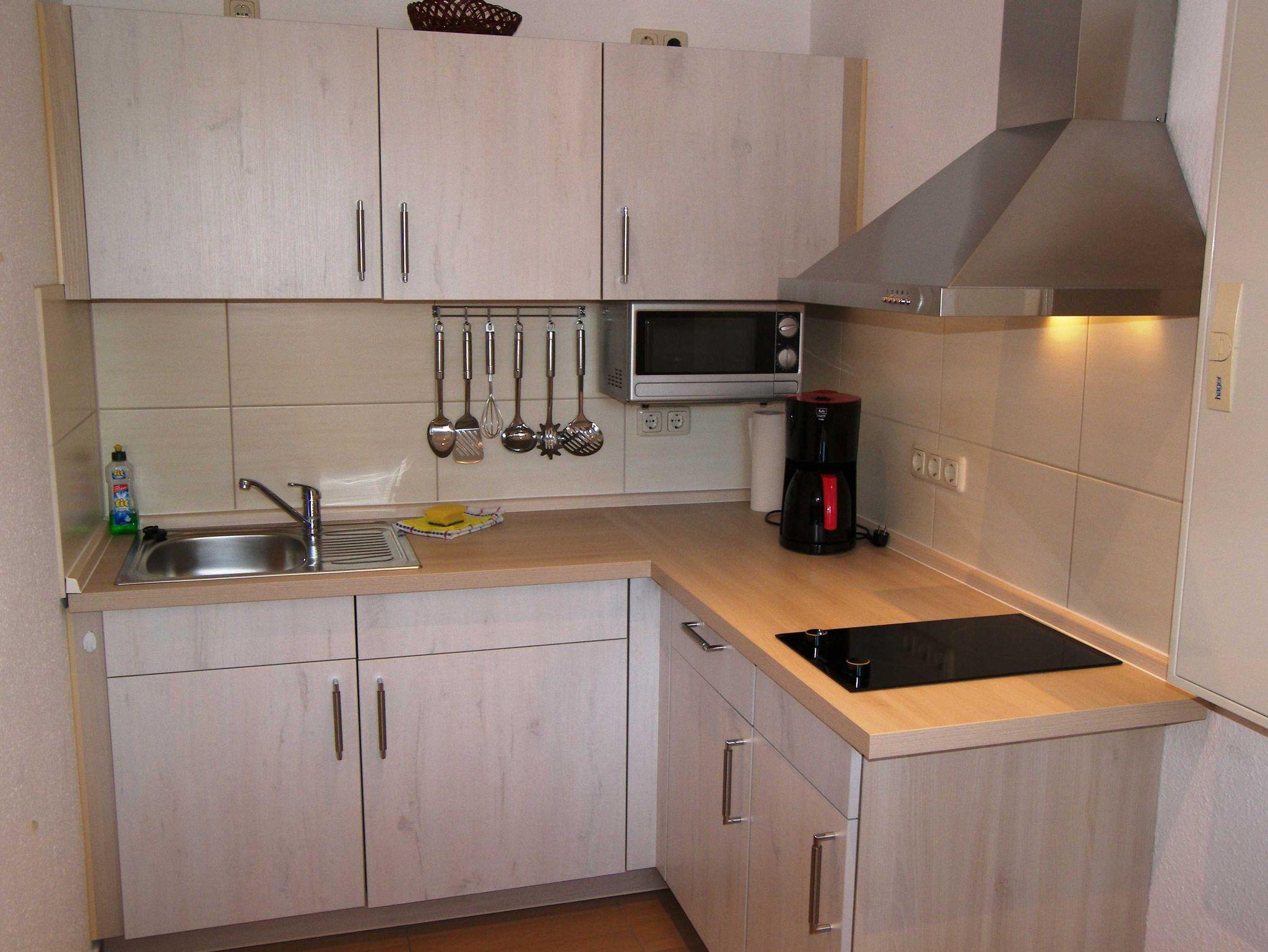 Die ebenerdige Ferienwohnung im Bungalow verfügt über ein Wohnzimmer, ein Schlafzimmer mit Doppelbett, eine kleine Pantryküche mit Kaffeemaschine, Wasserkocher, Toaster, Kühlschank und 2-Platten-Herd. Bad mit Dusche und WC.