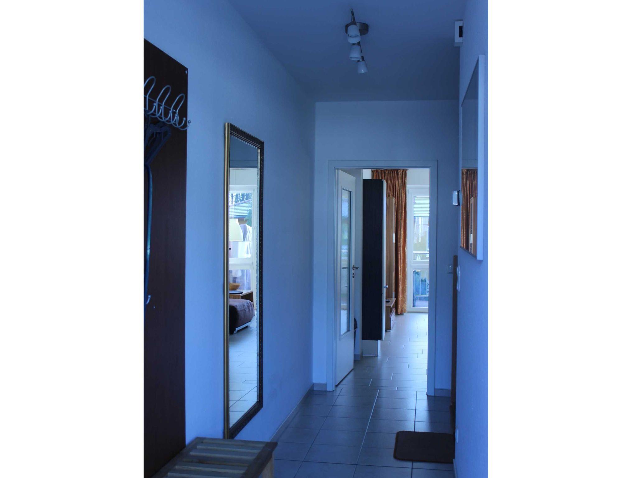 Die Wohnung ist zusätzlich ausgestattet mit einem Staubsauger, Wischer und Wischeimer, Besen, Handfeger und Schaufel sowie einem Wäscheständer und Wäscheklammern. Stranddecken befinden sich ebenso in der Abstellkammer. Stuhlauflagen für die Balkonmöbel sind dort auch zu finden. Ein Sonnenschirm kann bei Bedarf am Balkongeländer befestigt werden. Dieser soll aber stets bei Abreise wieder ordnungsgemäß abmontiert und verstaut werden.