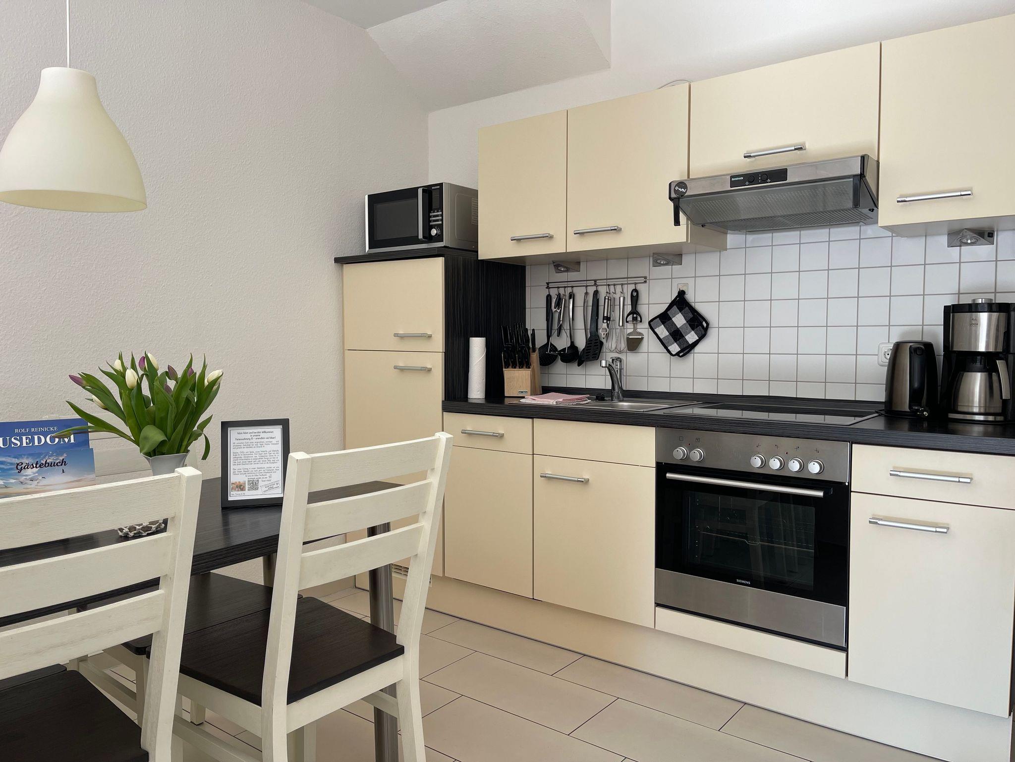 Die Küche ist ausgestattet mit einem Wischtusch und einem Küchenhandtuch, sowie ausreichend Geschirrspülmittel und Tabs für die Geschirrspülmaschine. Auch ein Herdreiniger ist vor Ort.