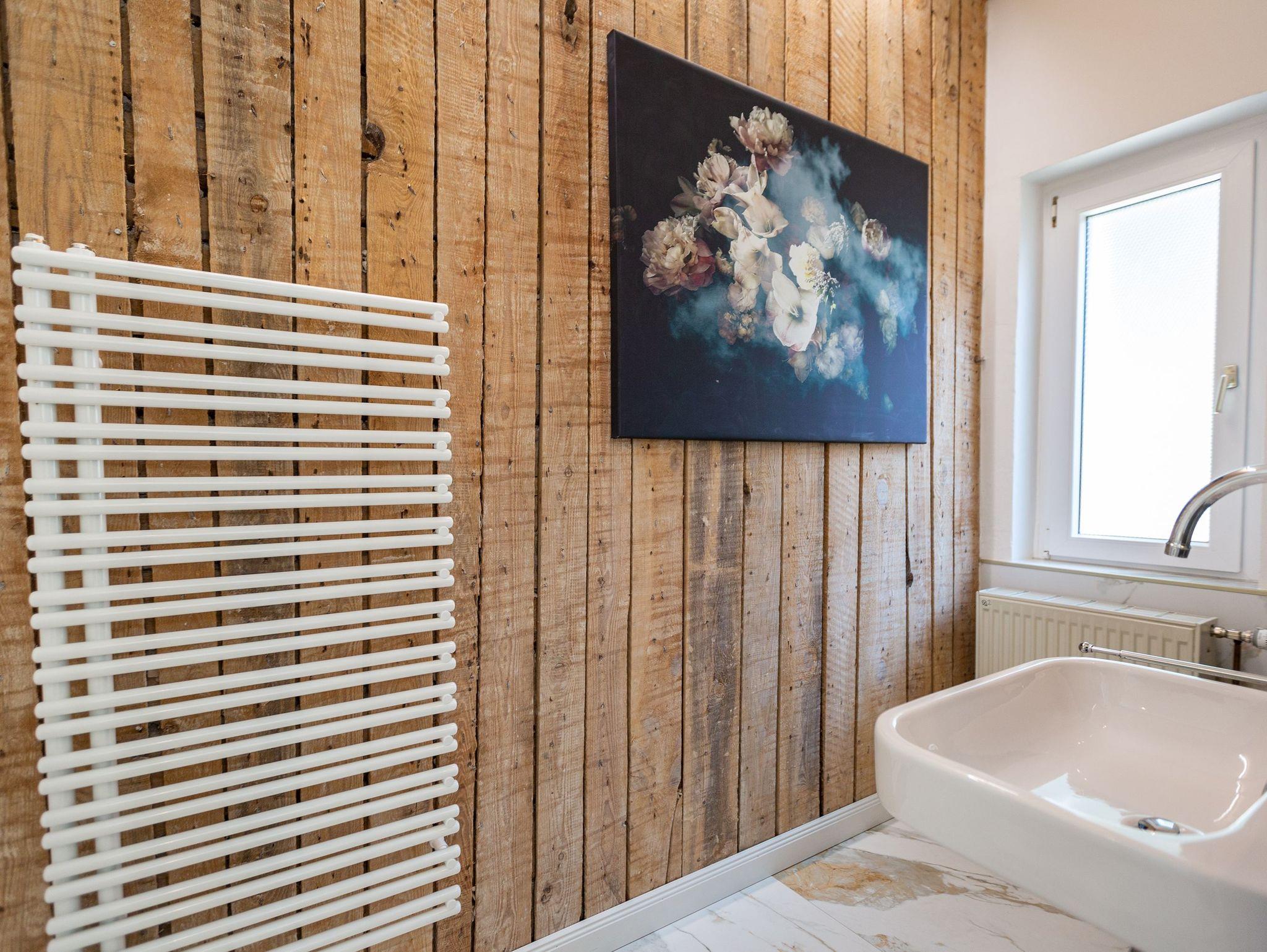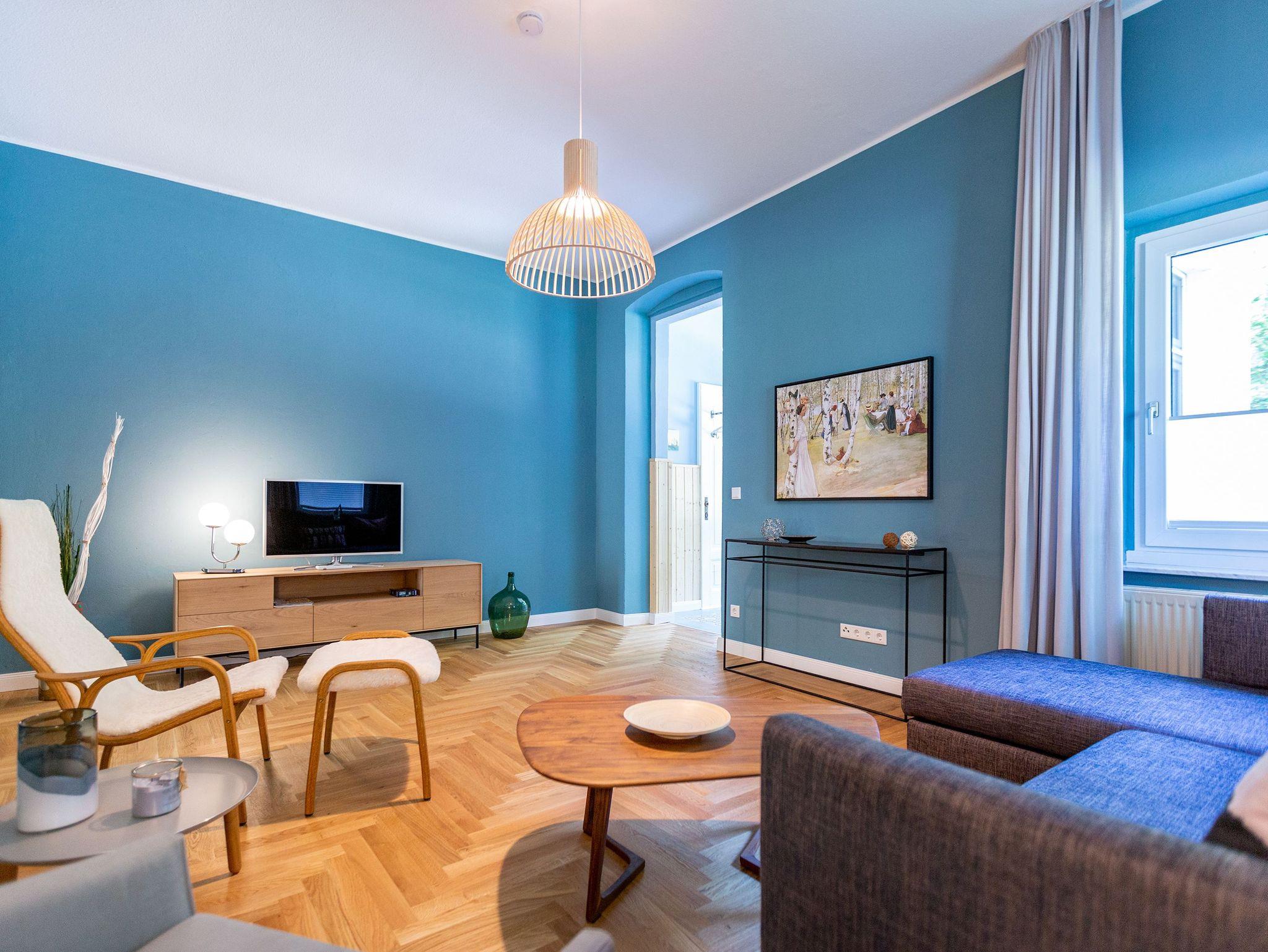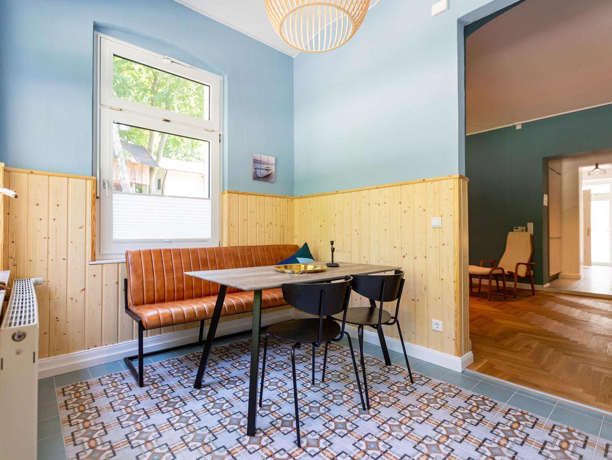 Die Ferienwohnung 2 im Erdgeschoss besticht durch ihre liebevolle Ausstattung und das durchdachte Raumkonzept. Sie umfasst einen offenen Wohnbereich mit einer komfortablen Schlafcouch, die als zusätzliche Schlafmöglichkeit dient, sowie einen Flat-TV. Die angrenzende Küchenzeile ist mit allem ausgestattet, was das Herz begehrt, von der Nesspressomaschine bis zum Backofen. Ein separater Essbereich in der Veranda bietet den perfekten Rahmen für gemeinsame Mahlzeiten oder unterhaltsame Spieleabende. Das Schlafzimmer lädt mit einem luxuriösen Boxspringdoppelbett (1,80m x 2,00m) zum Entspannen ein, während das stilvolle Badezimmer mit einer ebenerdigen Dusche, einem Waschbecken und WC ausgestattet ist. Zur Wohnung gehört zudem eine kleine, nach Norden ausgerichtete Terrasse mit Gartenmöbeln, ideal, um die frische Ostseeluft zu genießen.