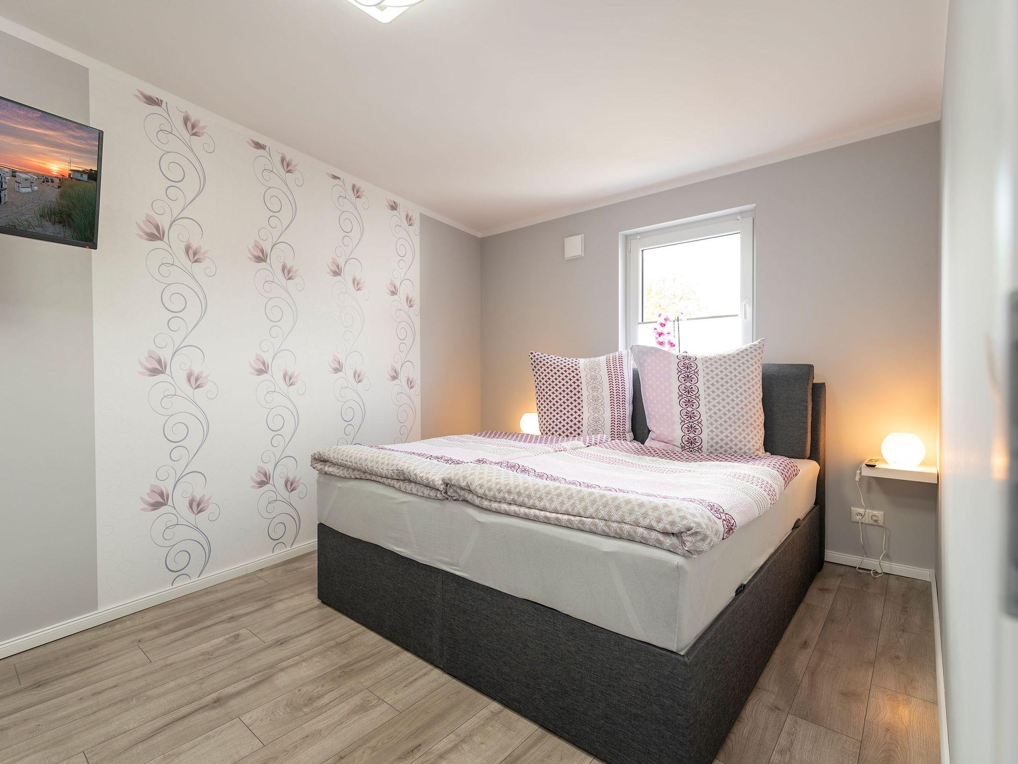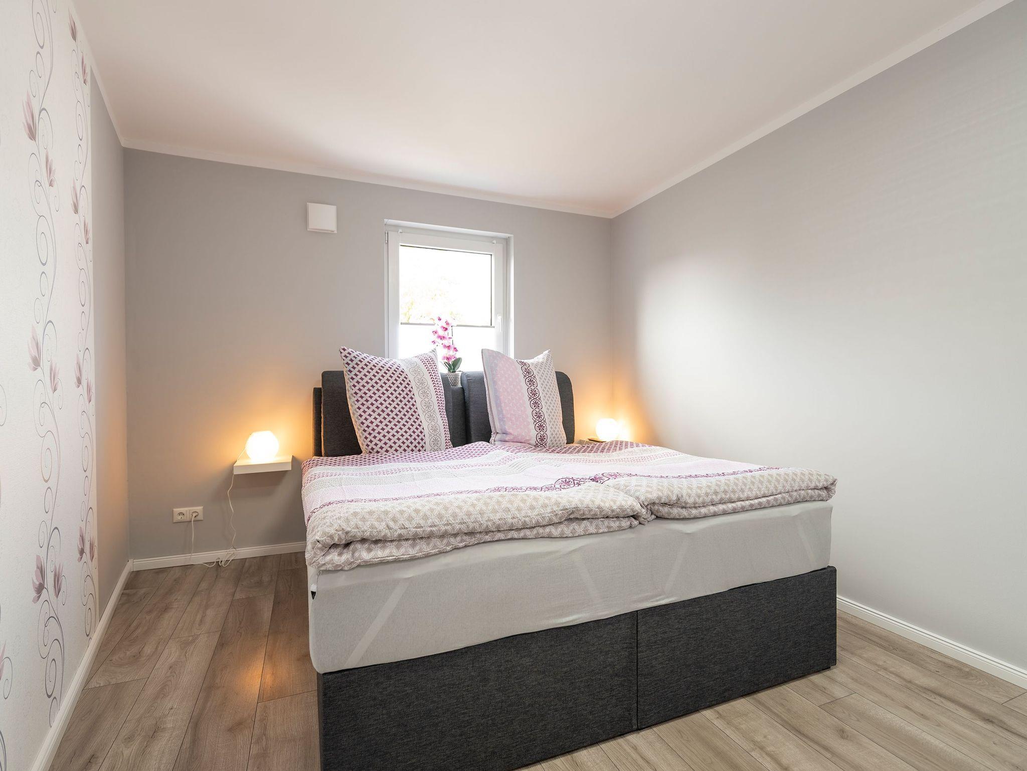 • Ein Schlafzimmer mit einem komfortablen Boxspringbett,