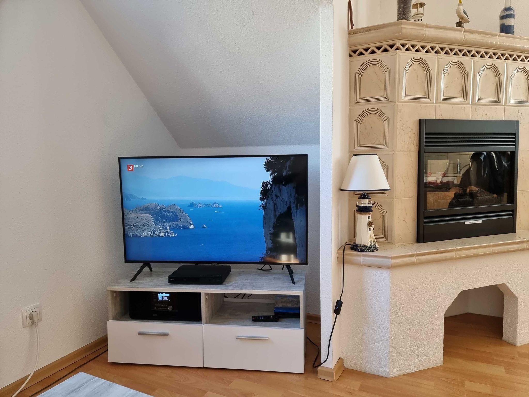WLAN, Elektrokamin, TV, Blu- ray Player, Balkonmöbel, sehr gut ausgestattete Küche mit Ceranherd, Mikrowelle, Geschirrspüler, Kühlschrank, Kaffeemaschine, Toaster, Wasserkocher, Gläser, Geschirr, Besteck, Fön