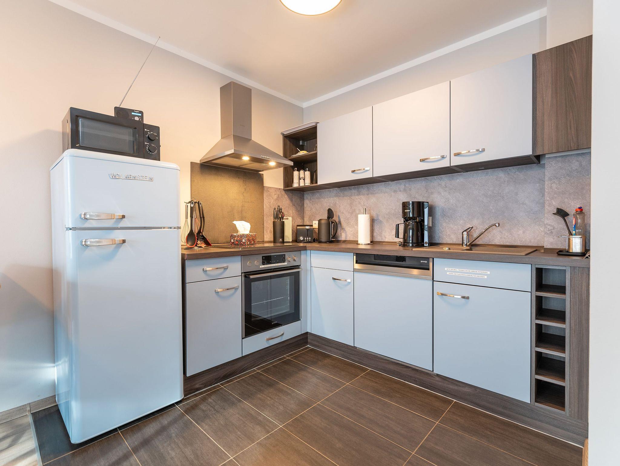 Zur Ausstattung gehören eine Münzwaschmaschine, die von März bis Oktober verfügbar ist, und ein praktischer Abstellraum für Fahrräder, um die idyllische Umgebung auf zwei Rädern zu erkunden. Jedes Appartement verfügt über einen eigenen PKW-Stellplatz, was die Suche nach einem Parkplatz erleichtert. Für kleinere Entdeckungstouren steht außerdem ein Bollerwagen bereit, der ideal für das Mitführen von Picknickutensilien oder Strandspielzeug ist.