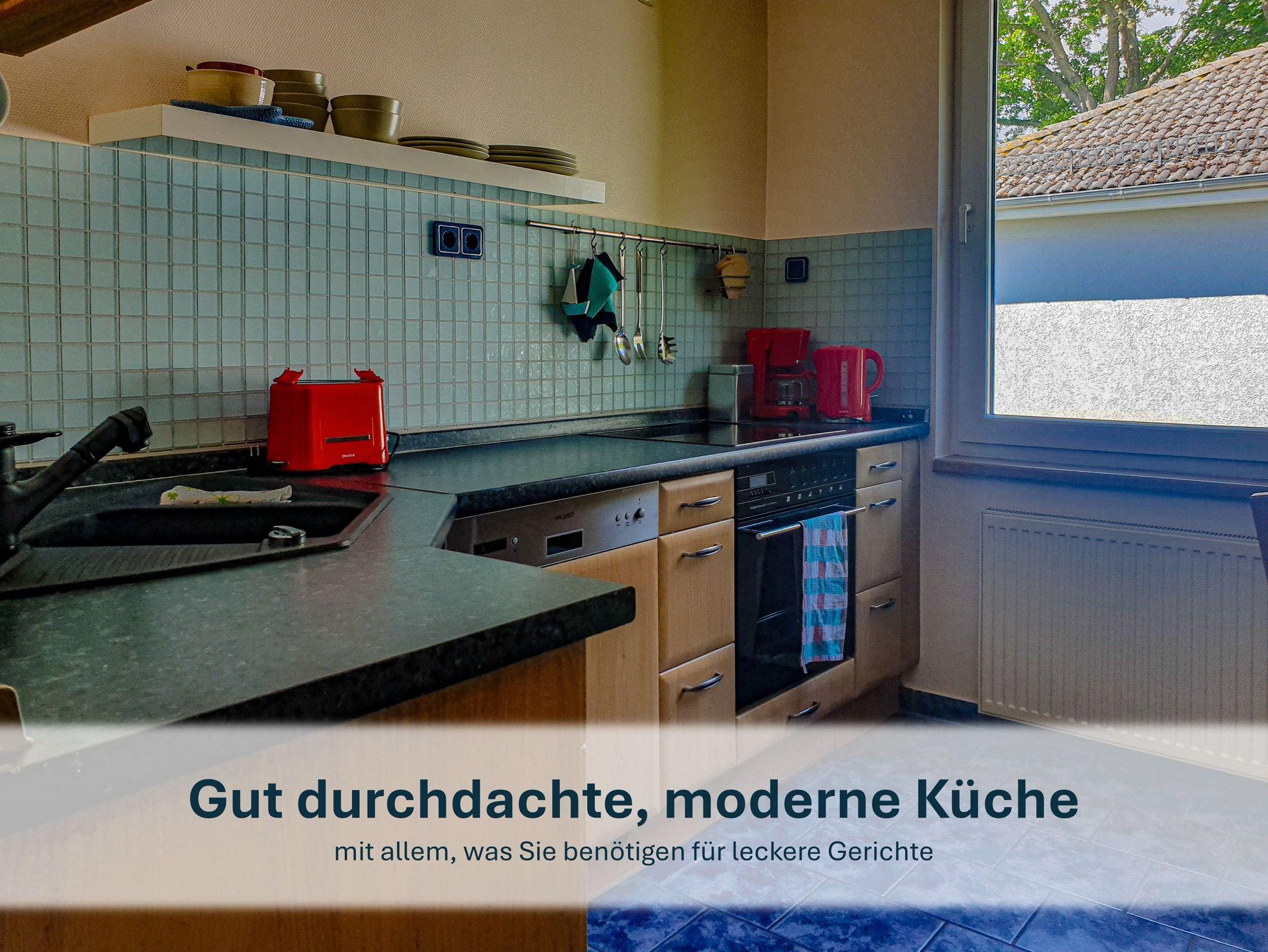 Die gut ausgestattete Küche lässt keine Wünsche offen - mit Herd, Kühl-/Gefrierkombination, Spülmaschine und reichlich Geschirr, um Ihre Lieblingsmahlzeiten zu zaubern. Für Unterhaltung ist ebenfalls bestens gesorgt: Ein Flachbild-TV, Radio und DVD-Player stehen bereit, damit Sie sich auch in Ihrer Freizeit bestens unterhalten können.