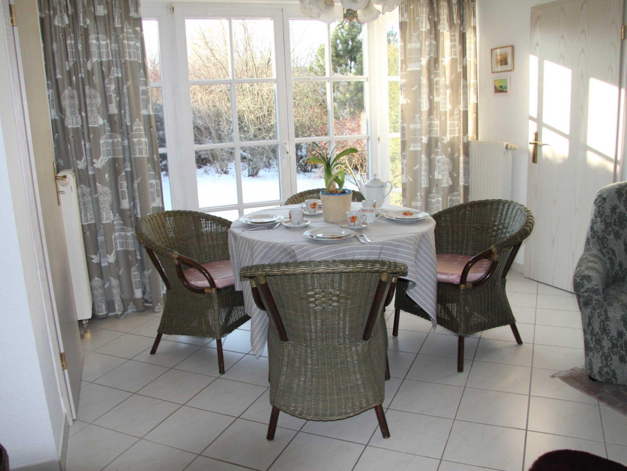 Gemütliche Ferienwohnung am Achterwasser in Zempin mit Terrasse, Kamin und barrierefreiem Zugang für entspannte Urlaubstage.