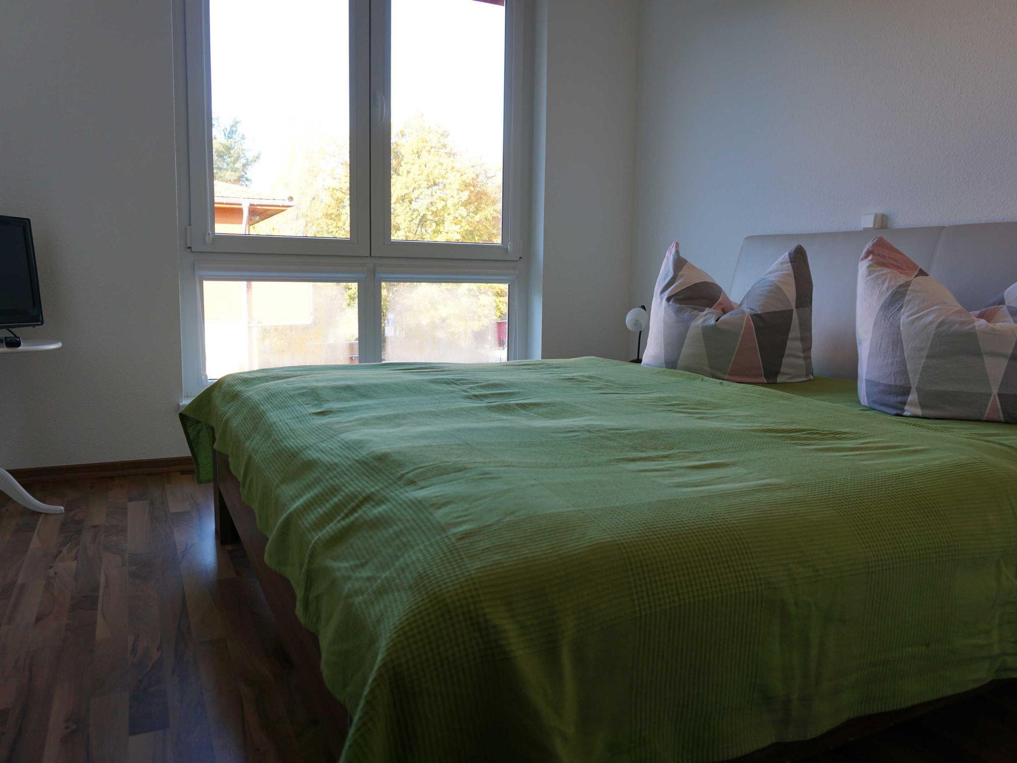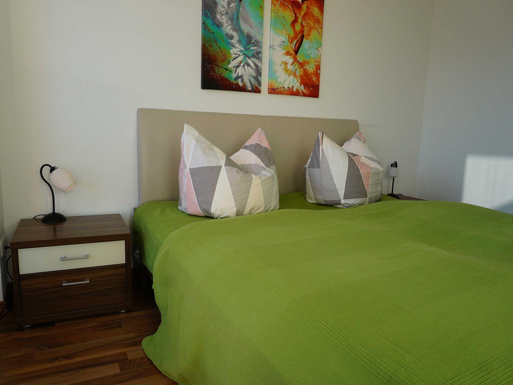 1 Schlafzimmer mit Schrank & Doppelbett 1,60m breit mit durchgehender Matratze