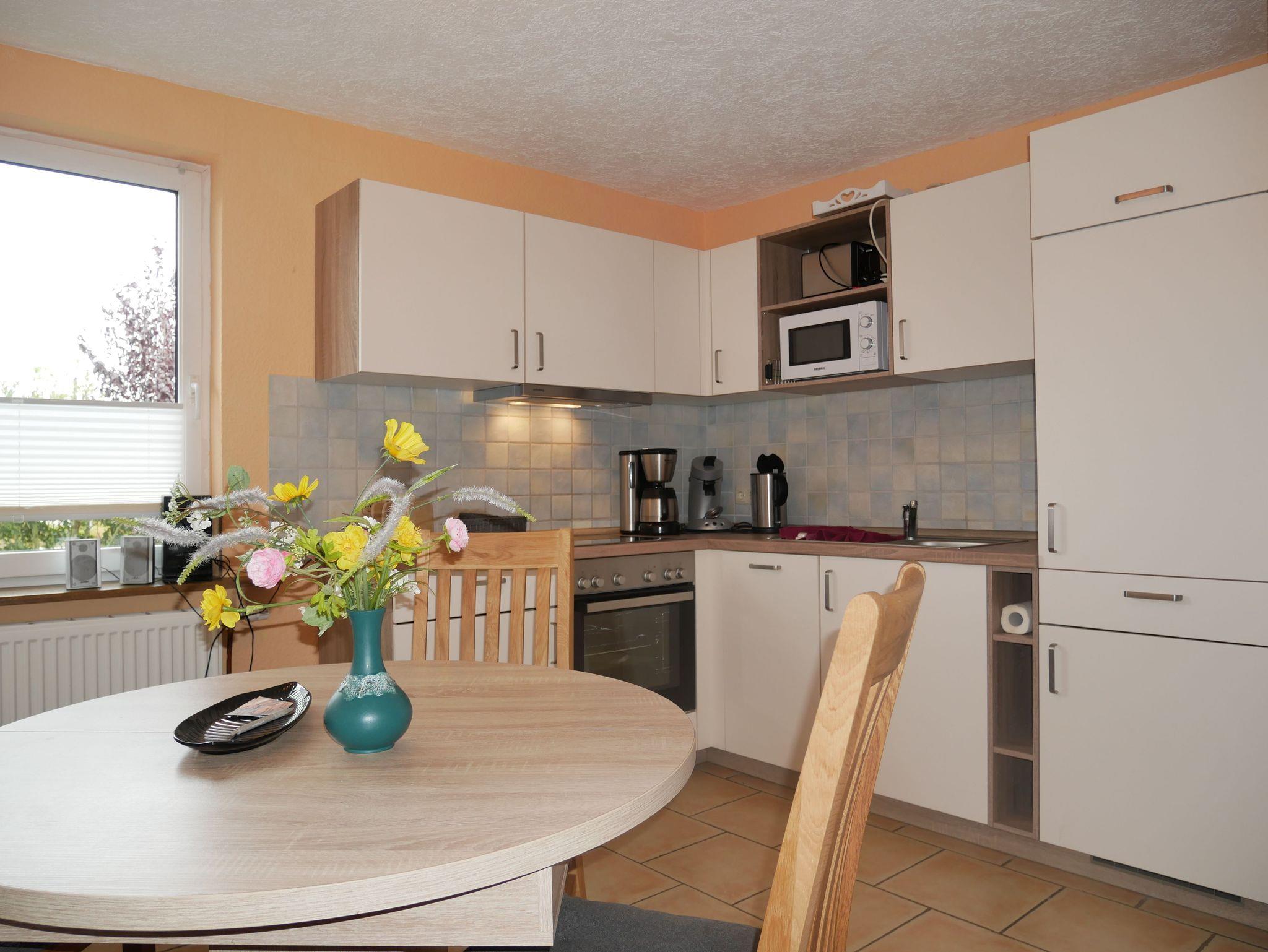 Die voll ausgestattete Küche verfügt über einen Esstisch für vier Personen und einen Hochstuhl für die kleinen Gäste. Zur Ausstattung gehören ein Backofen, ein Cerankochfeld, eine Spülmaschine, eine Kaffeemaschine sowie eine Kaffeepadmaschine, ein Toaster, ein Wasserkocher und ein Kühlschrank mit Gefrierfach ? alles, was Sie für eine entspannte Selbstversorgung benötigen.
