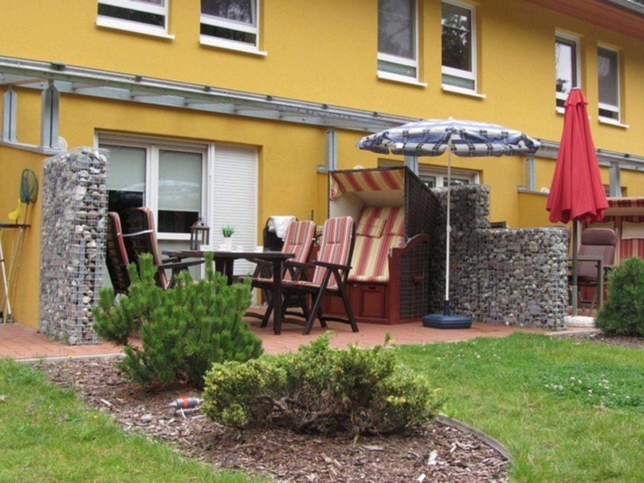 1 Terrasse mit 43m² Garten mit Gartenmöbeln & Strandkorb
