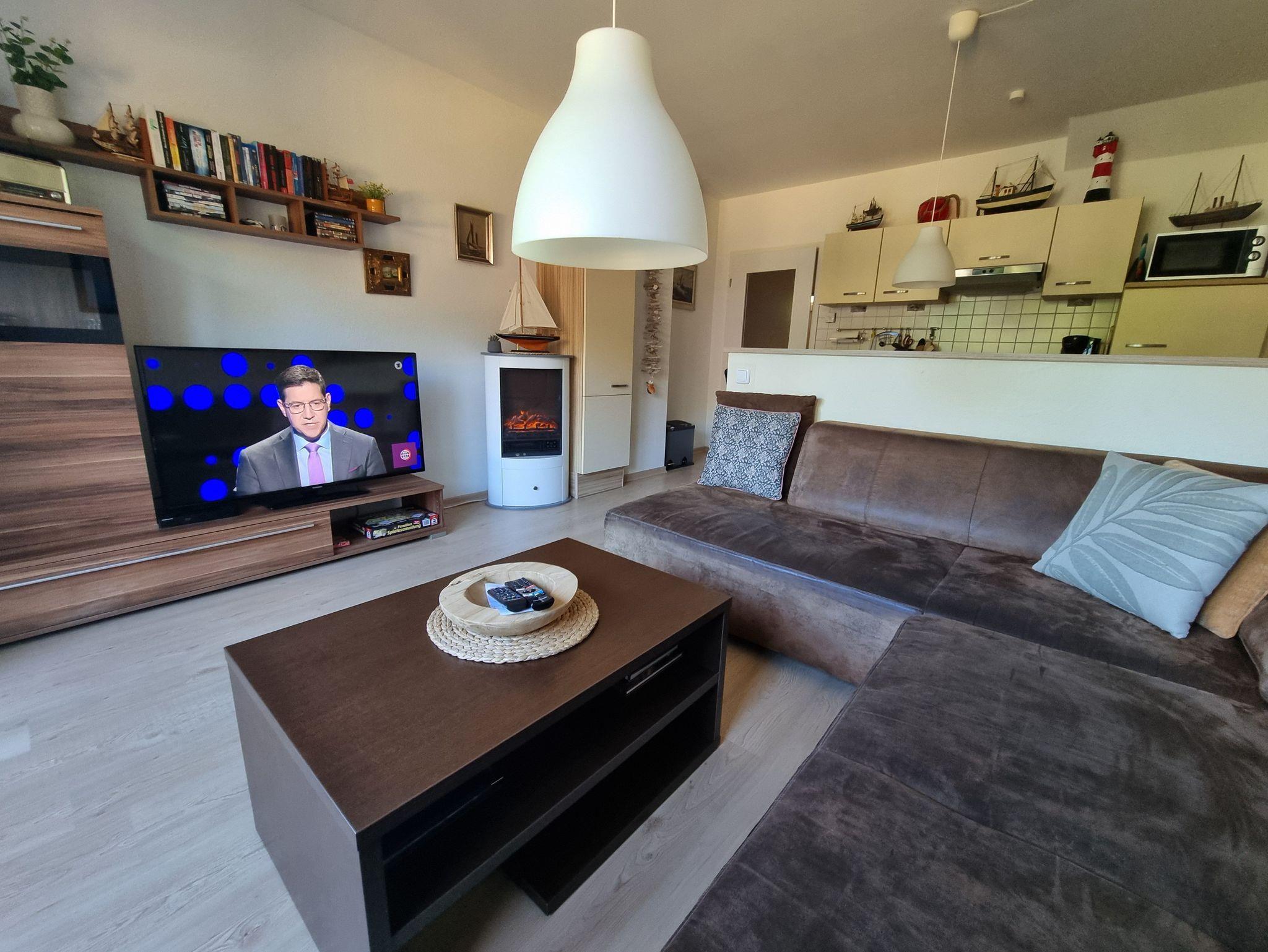 Die Ferienwohnung erstreckt sich über 2 Etagen, ist sehr geräumig und komfortabel eingerichtet. Im 1. OG befindet sich das Wohnzimmer mit Flachbild TV, Radio, einem schönen Balkon, ein Bad mit Dusche, WC und einem Fön. Die offene Einbauküche ist mit einem Ceranherd, Backofen, Kühlschrank, Tiefkühlfach, Gläser, Besteck und Geschirr ausgestattet. Die obere Etage mit zwei Schlafzimmern und einem zweiten Bad mit Dusche und WC, bietet einen weiteren Balkon, auf dem man gemütlich den Tag ausklingen lassen kann. In der kalten Jahreszeit sorgt eine Fußbodenheizung für behagliche Wärme.