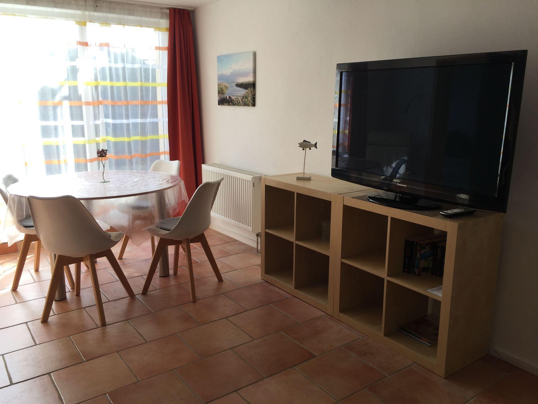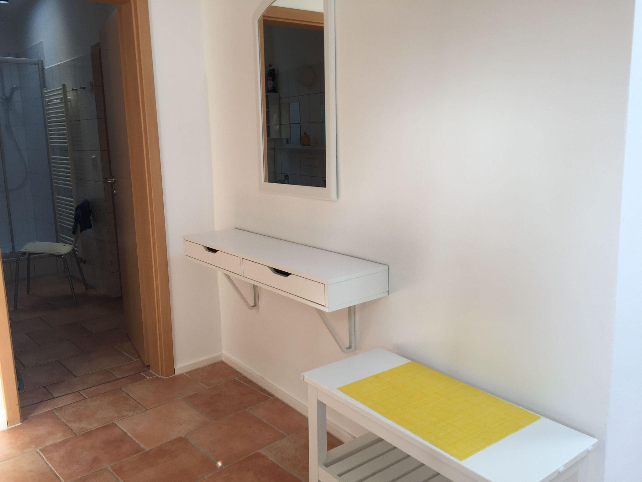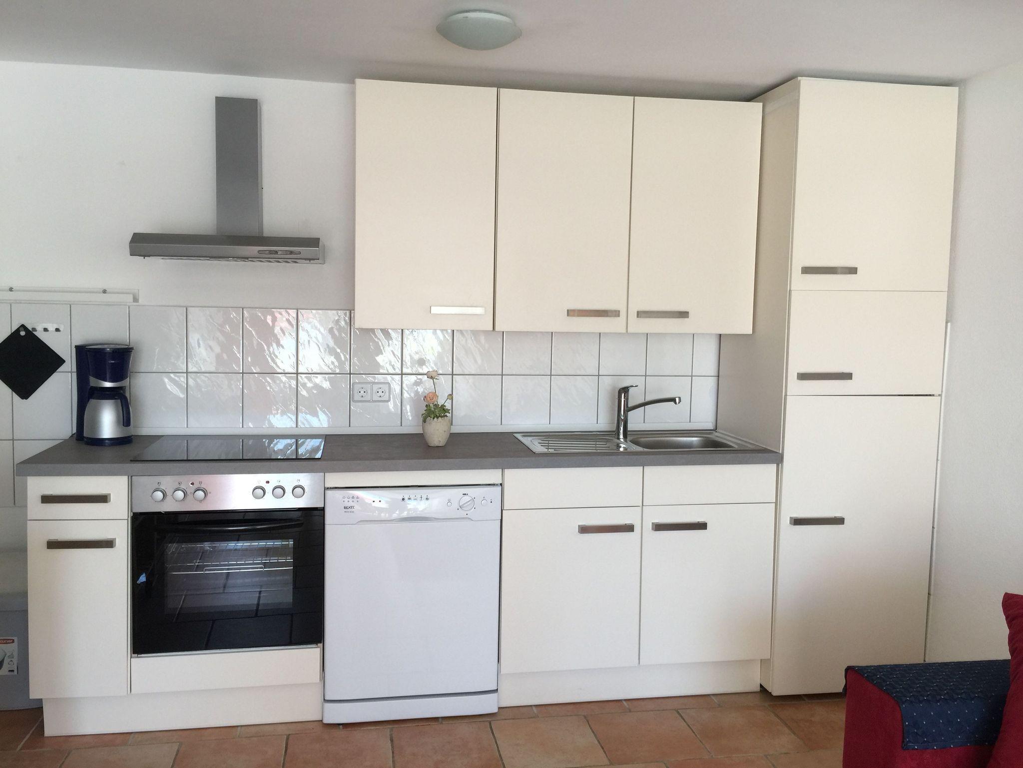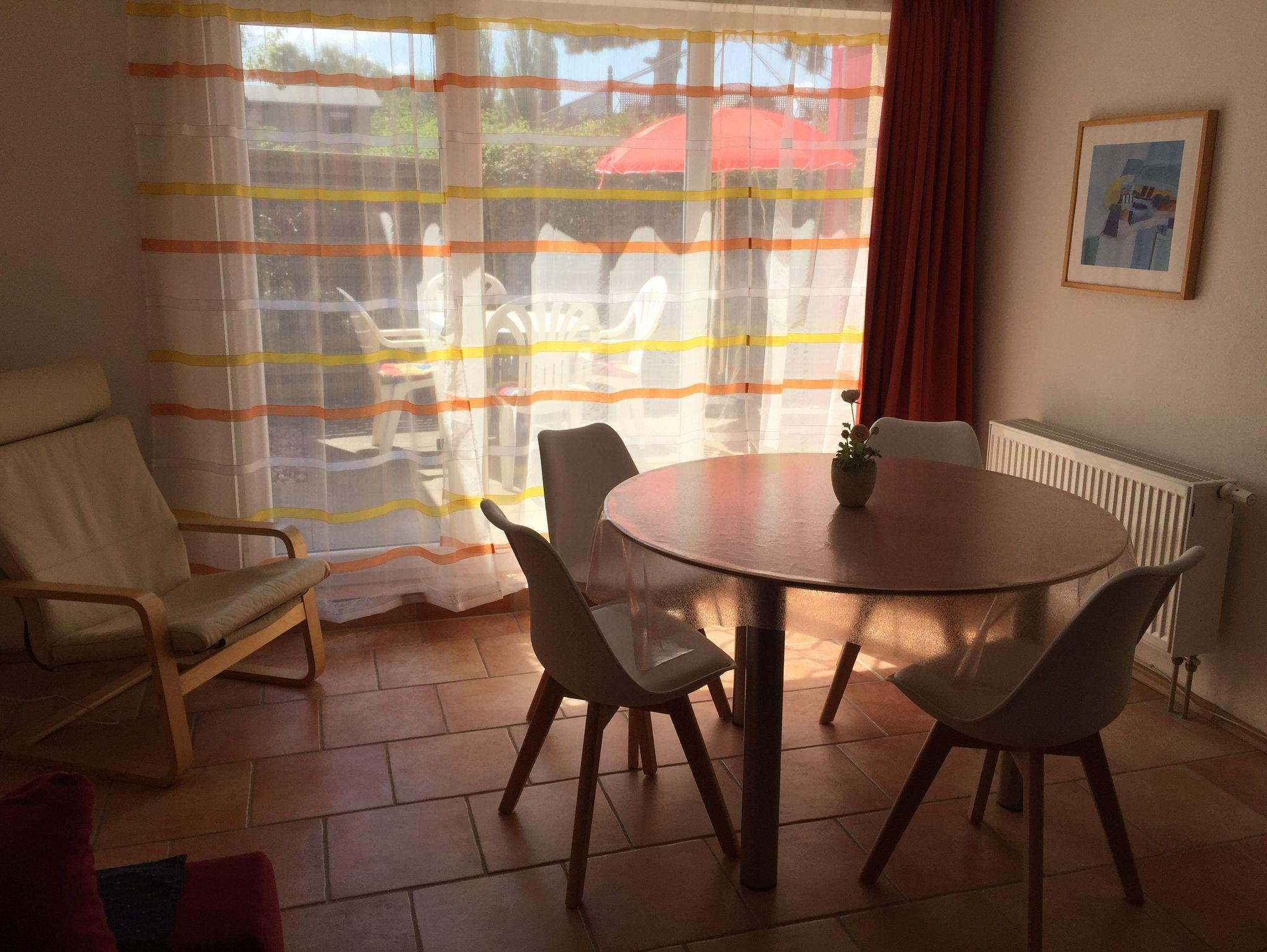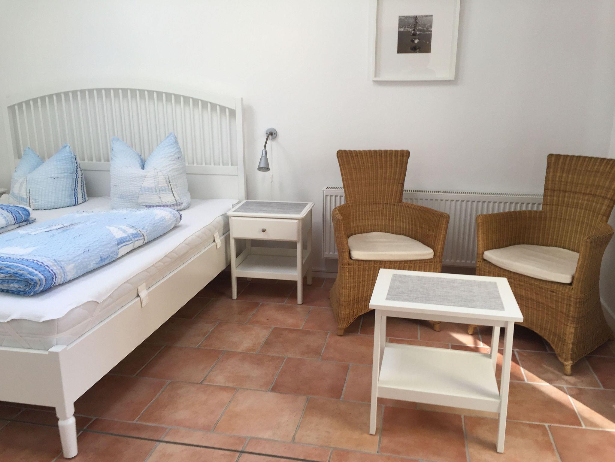 Das Appartement „Strandkorb“ befindet sich im Erdgeschoss und besteht aus einem Wohn-Essraum mit einer Küchenzeile, einem großzügigen Schlafzimmer mit vier Betten, einem Badezimmer mit Dusche sowie einer Terrasse die mit Gartenmöbeln ausgestattet ist. Es ist geschmackvoll eingerichtet. Die Küchenzeile verfügt über einen Herd, einen Backofen, einen Kühlschrank mit Gefrierfach, einen Geschirrspüler, eine Kaffeemaschine und einen Wasserkocher. Im Wohnbereich laden eine ausziehbare Couch und eine Leselampe zu gemütlichen Schmöckerstunden und Erholen ein.