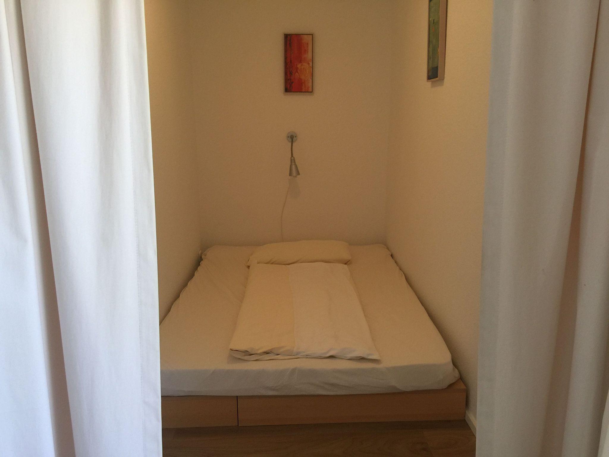 Im Wohnzimmer steht Ihnen eine ausziehbare Sitzgruppe, ein Hochlehnsessel und eine Leselampe für gemütliche Schmöckerstunden zur Verfügung. Natürlich darf ein Fernseher nicht fehlen. Im Schlafzimmer befindet sich ein Doppelbett. Es steht Ihnen eine weitere Schlafniesche(1,40 m breit ) zur Verfügung. Zur Wohnung gehört ein wunderschöner Südbalkon, welcher mit Balkonmöbeln ausgestattet ist. Hier können Sie die Sonne genießen.