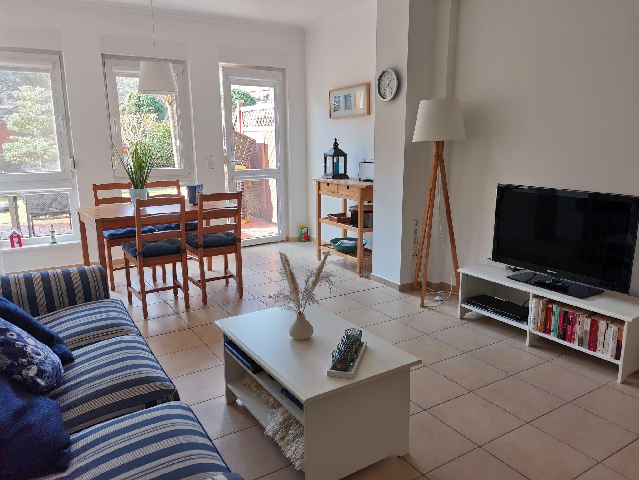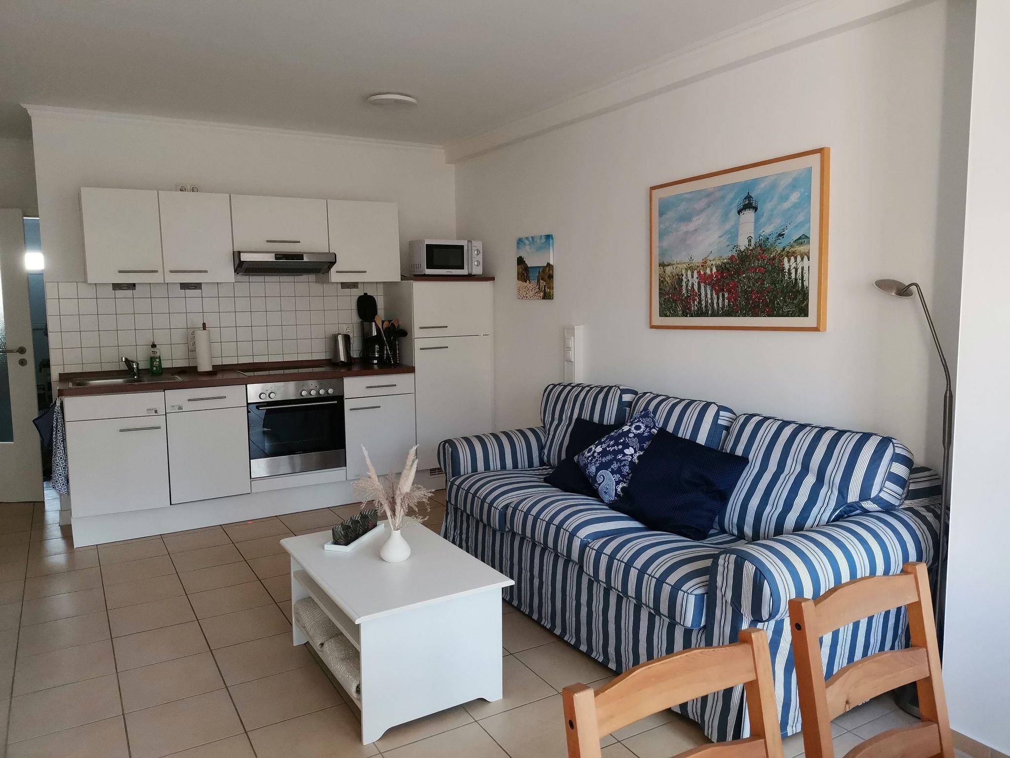 Exklusive Erdgeschoßwohnung mit großer Terrasse, 55 m² eigener Garten und PKW Stellplatz. Die Wohnung ist hochwertig eingerichtet mit Fußbodenheizung, TV, DVD Player, Terrassenmöbel, Strandkorb, Einbauküche mit Ceranherd, Backofen,Mikrowelle, Kühlschrank, Tiefkühlfach, Gläser, Besteck und Geschirr.