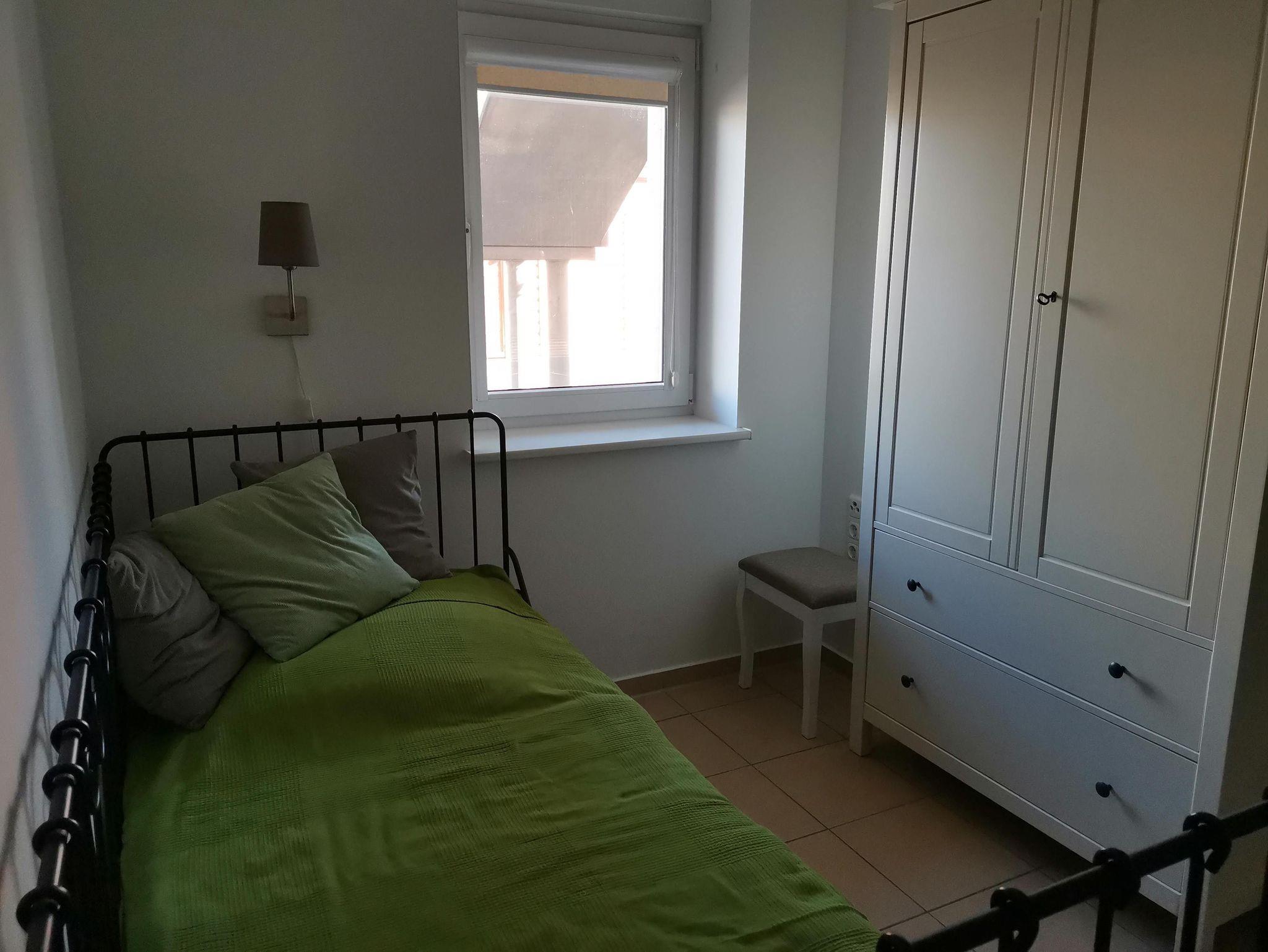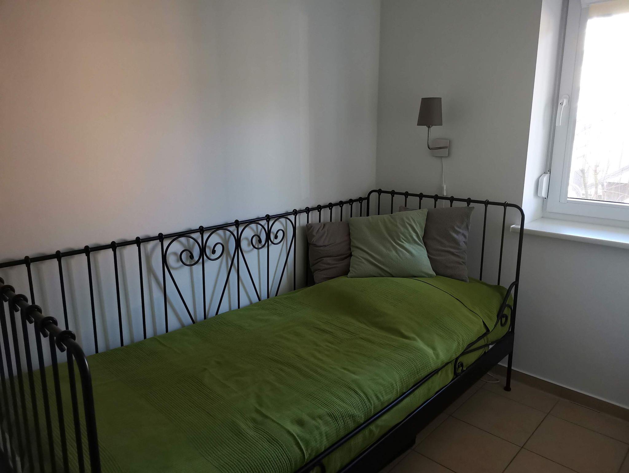 1 Schlafzimmer mit Boxspringbett 160*200cm (durchgehende Matratze) und ein Einzelbett 90*200cm