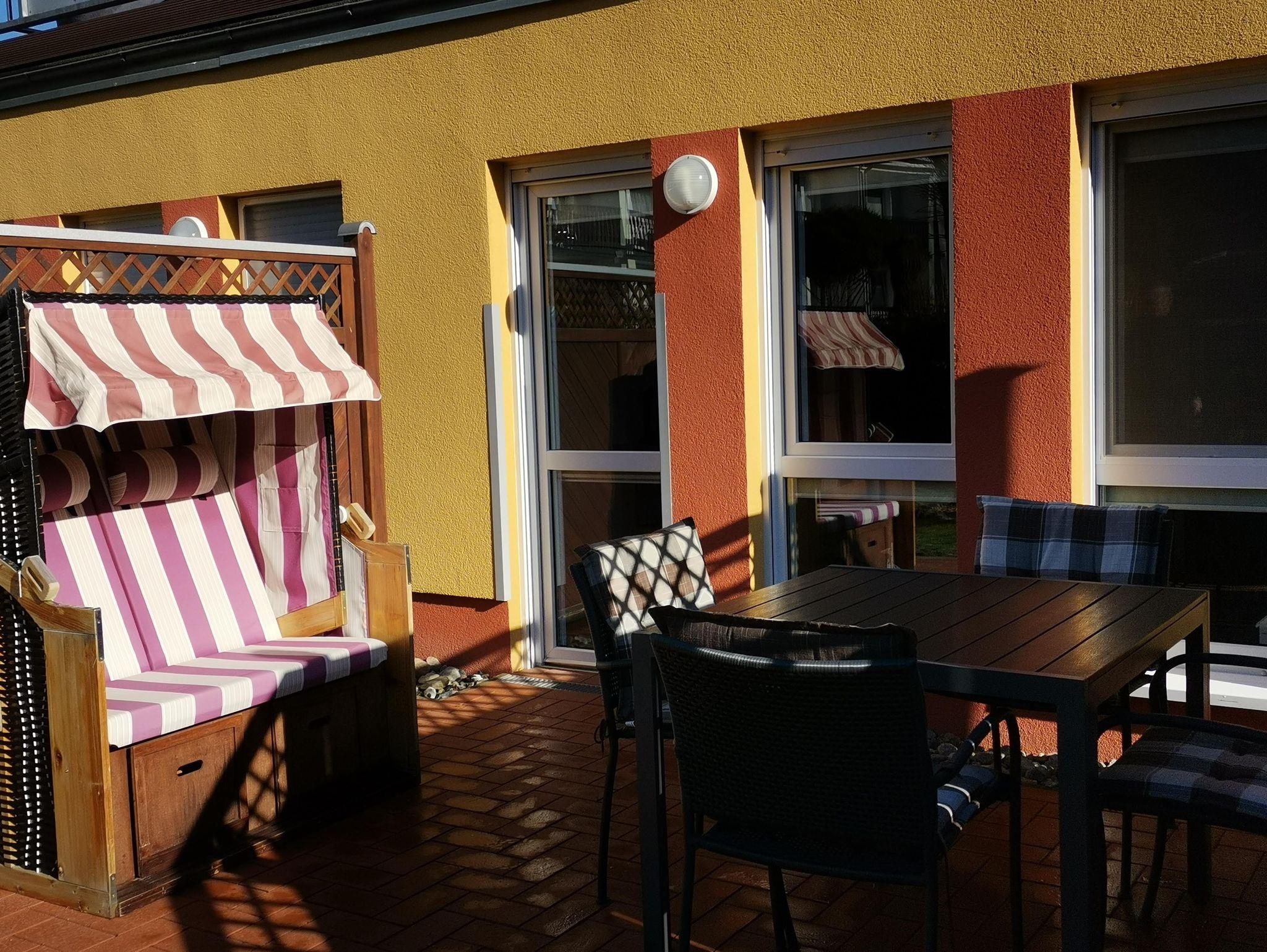 1 Terrasse mit Garten, Strandkorb & Gartenmöbel