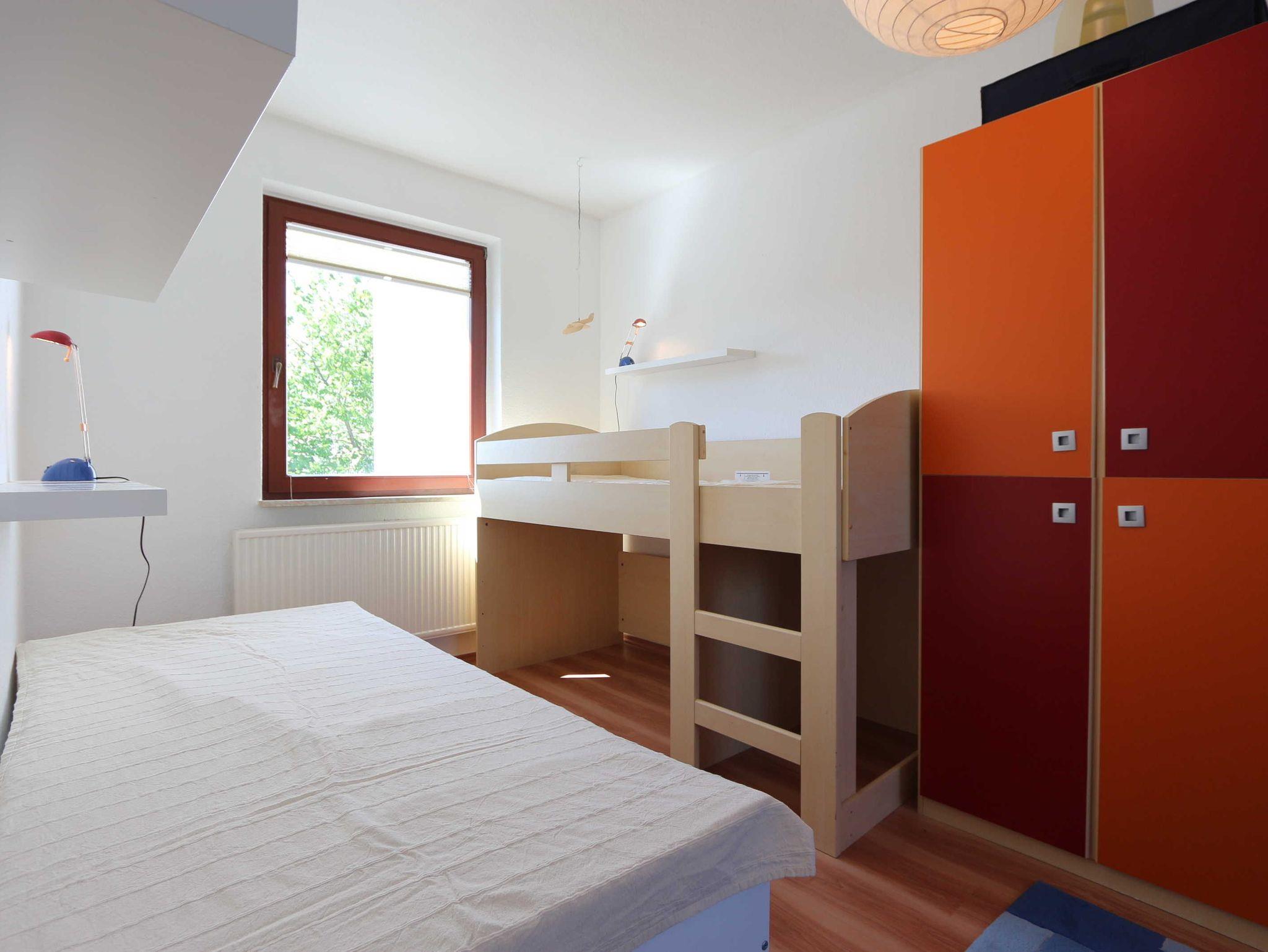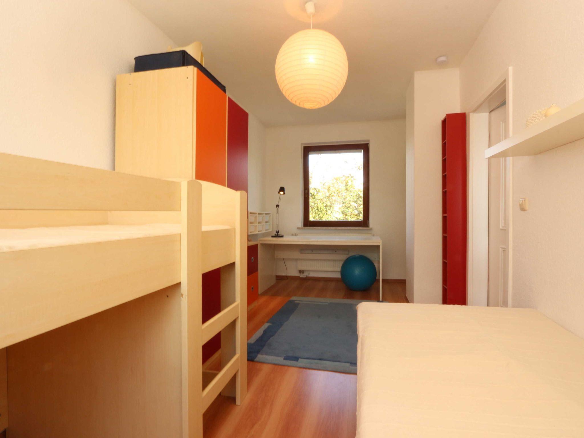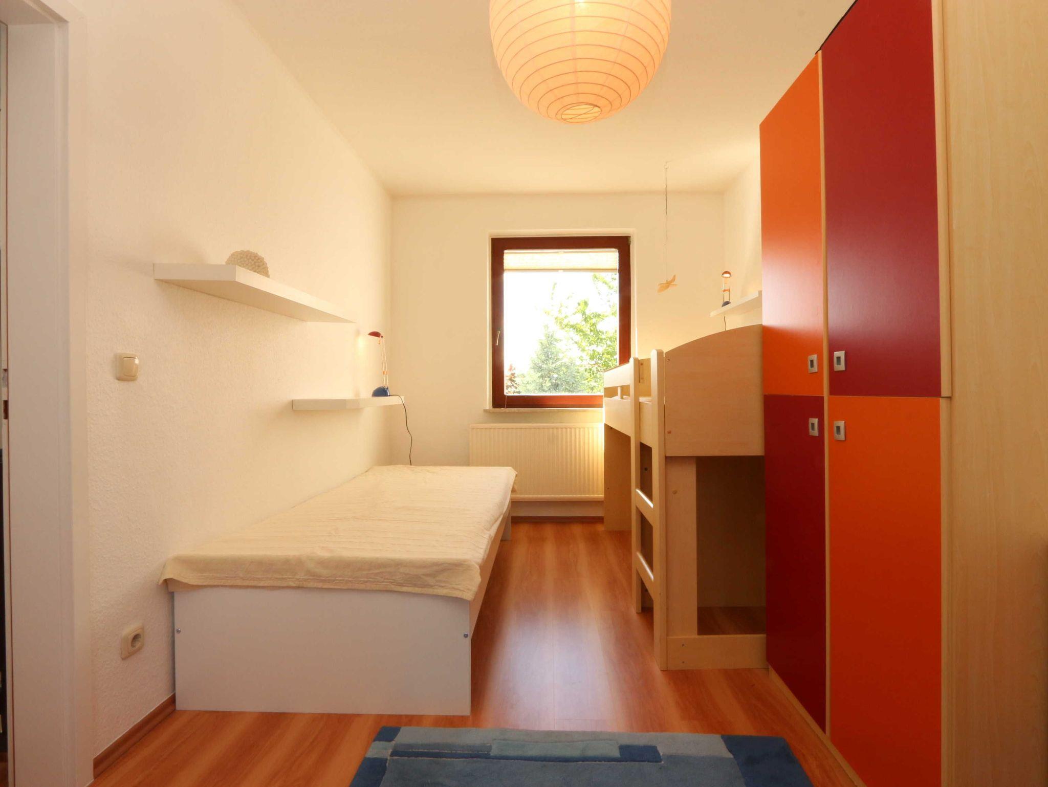• ein Kinderzimmer mit einem Bett (ca. 80 x 200), einem Hochbett (ca. 80 x 200), einem Schrank und einem Schreibtisch;