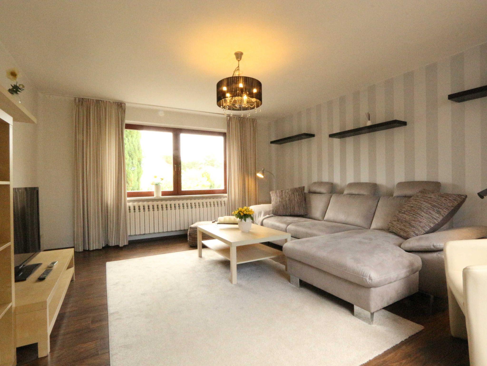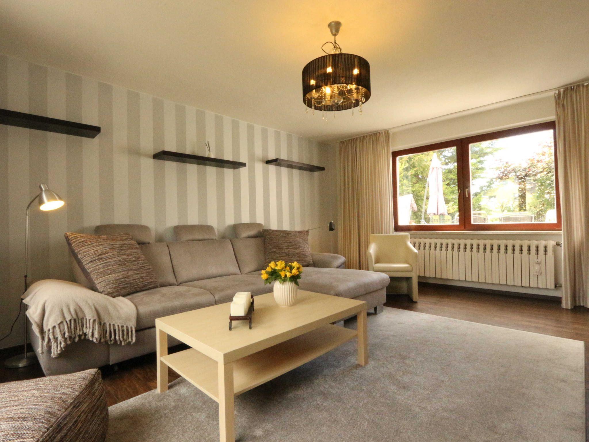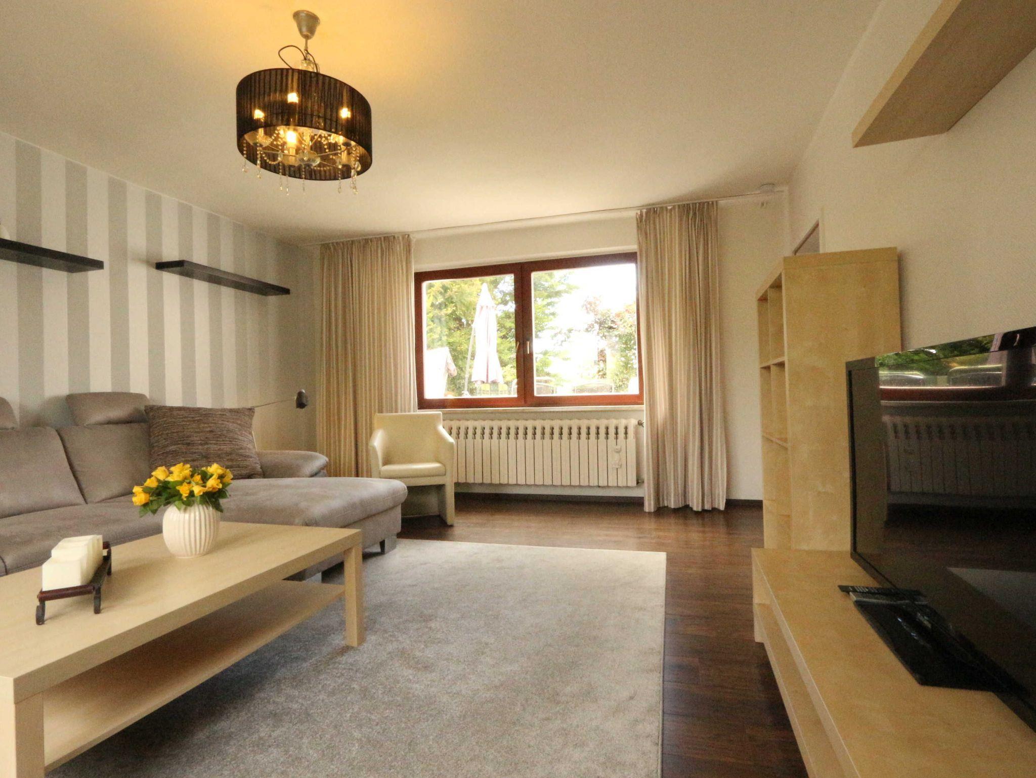 • Wohnzimmer mit Sofa, Couchtisch und Fernseher