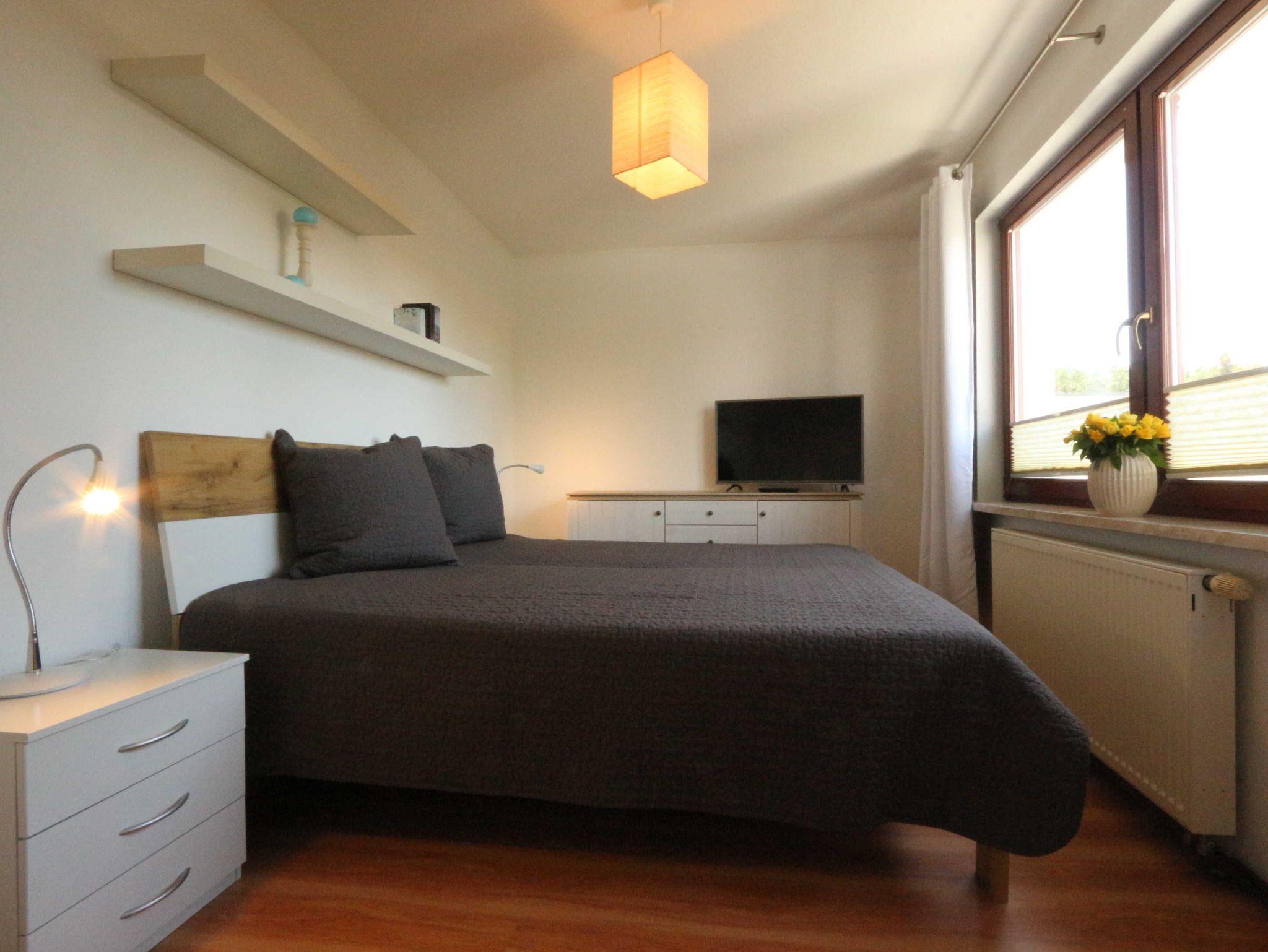 • ein Schlafzimmer mit Doppelbett (ca.180 x 200) (2.Schlafzimmer) , Anrichte und Fernseher;