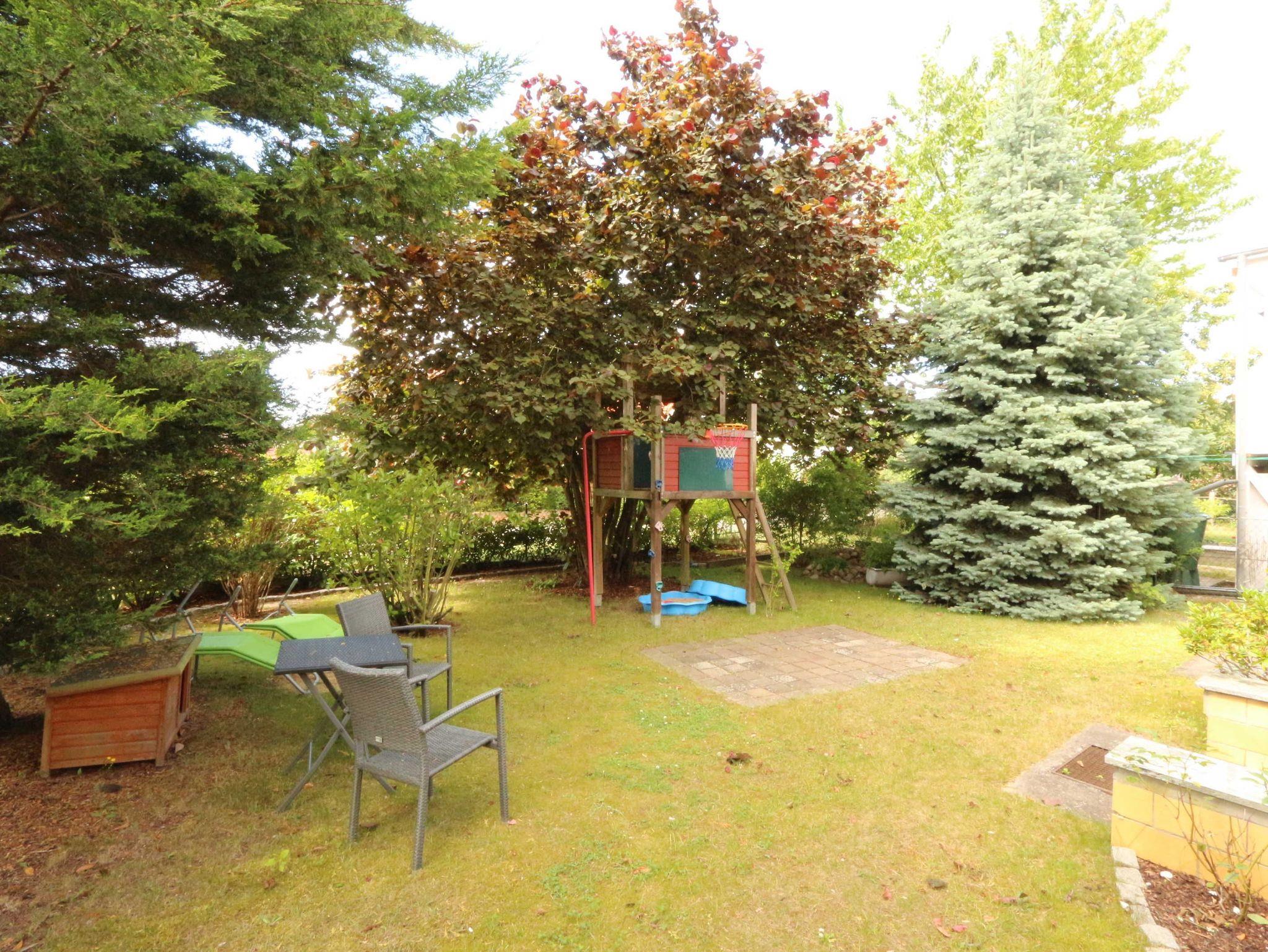 Der Garten auf dem ca. 500 m² großen Grundstück kann von Ferienhausgästen genutzt werden. Des weiteren ist auch ein kleiner Spielplatz (Sandkiste, Spielzeug, Schaukel) für Kinder vorhanden.